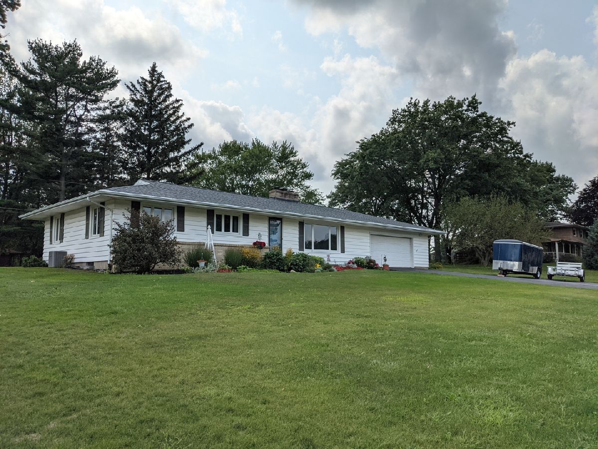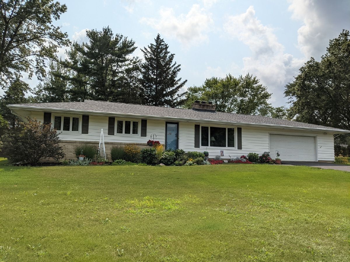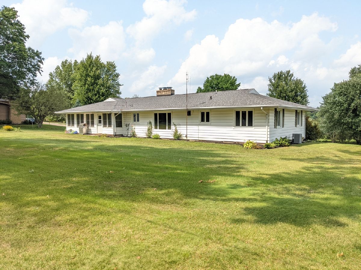Half acre lot and main floor living! What more could you ask for? Hardwood floors, check. Enclosed porch, check. Finished lower level, check. Master bath, check. Oversized garage, check. Roof new 2019. Window World windows with lifetime warranty. Large living room with picture window, hardwood floors and fireplace. Dining area with hardwood floors, picture window and open to the kitchen. Enclosed 27' x 9' porch off the kitchen to sit and relax. Garage is oversized 27' wide and 23' deep with new opener. Main floor laundry with lots of storage and area to hang clothes. Bedroom 2 & 3 with hardwood under the carpet. Hall full bath has jetted tub. Master suite with hardwood floors, full bath and double closet. LL has family room with fireplace, game room with built in shelves, mechanical workshop room and walk in closet storage room. LL dewatering system drain tiled and sump pump installed.