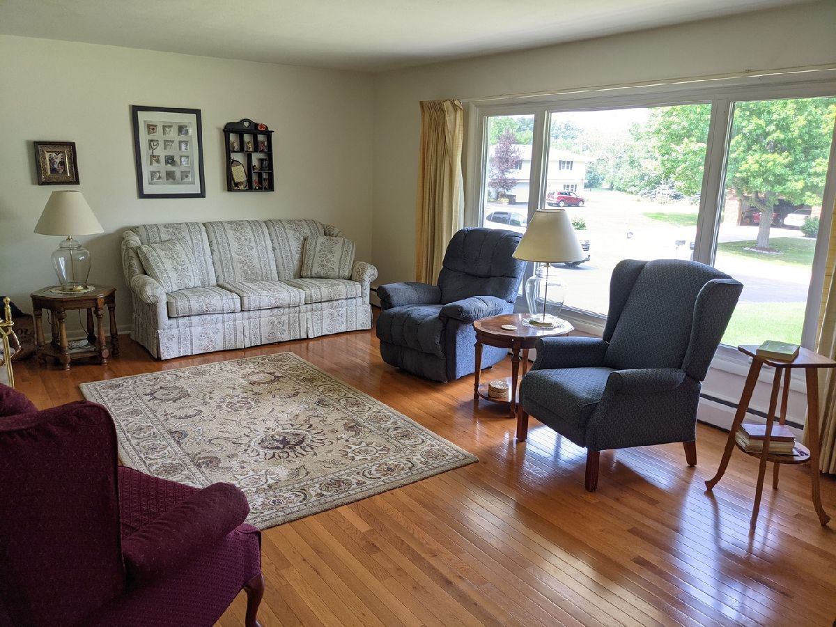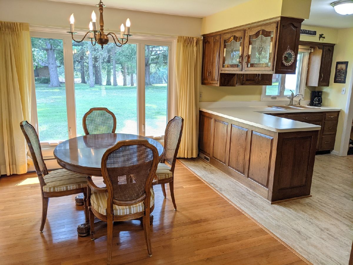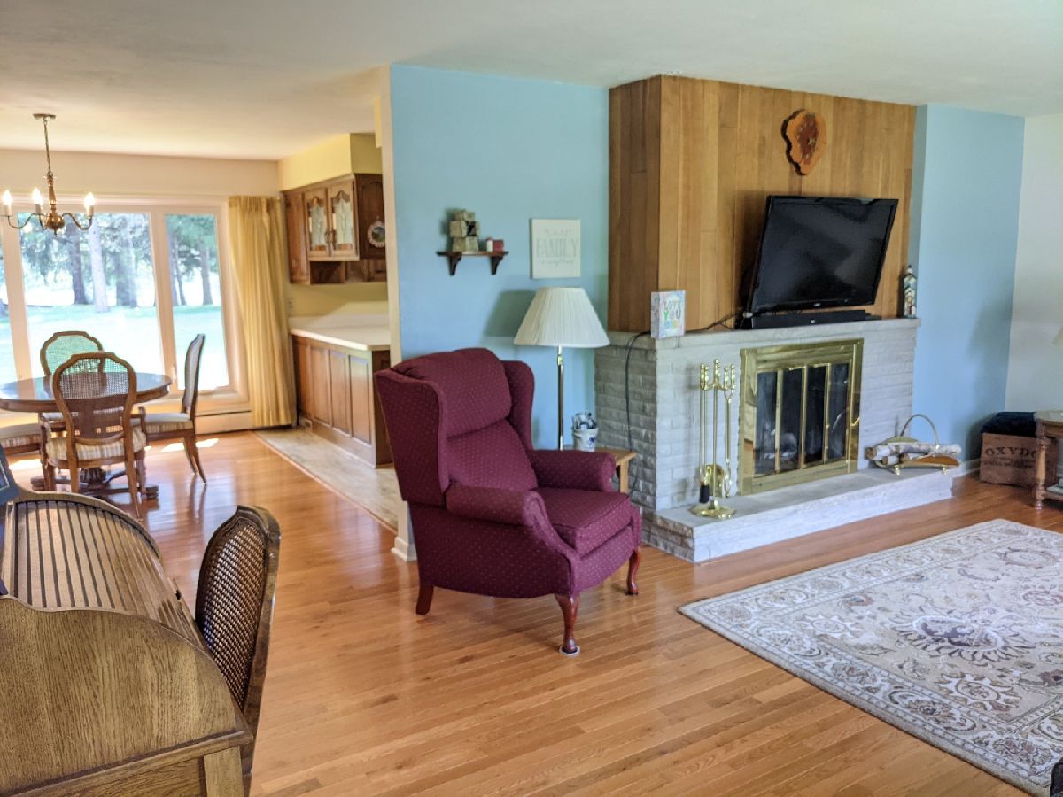 Half acre lot and main floor living! What more could you ask for? Hardwood floors, check. Enclosed porch, check. Finished lower level, check. Master bath, check. Oversized garage, check. Roof new 2019. Window World windows with lifetime warranty. Large living room with picture window, hardwood floors and fireplace. Dining area with hardwood floors, picture window and open to the kitchen. Enclosed 27' x 9' porch off the kitchen to sit and relax. Garage is oversized 27' wide and 23' deep with new opener. Main floor laundry with lots of storage and area to hang clothes. Bedroom 2 & 3 with hardwood under the carpet. Hall full bath has jetted tub. Master suite with hardwood floors, full bath and double closet. LL has family room with fireplace, game room with built in shelves, mechanical workshop room and walk in closet storage room. LL dewatering system drain tiled and sump pump installed.