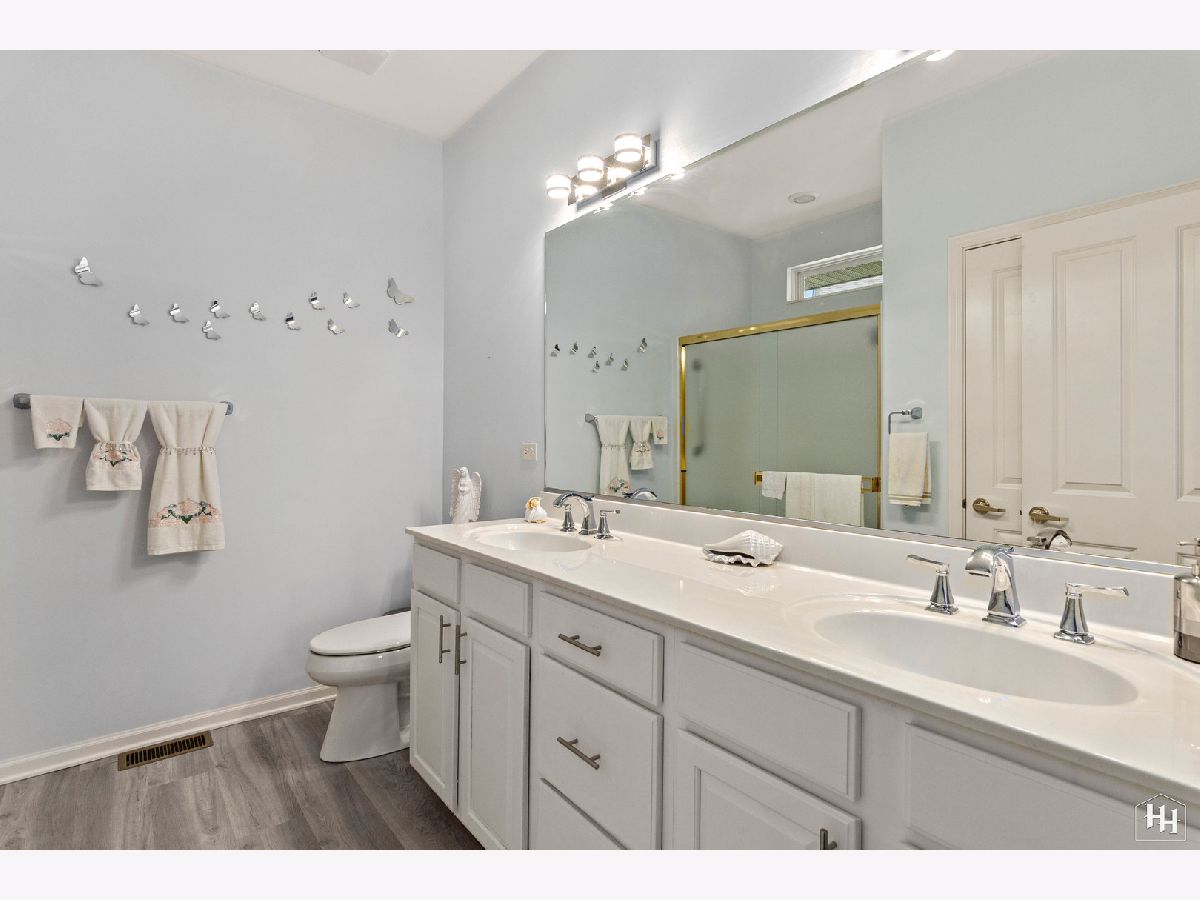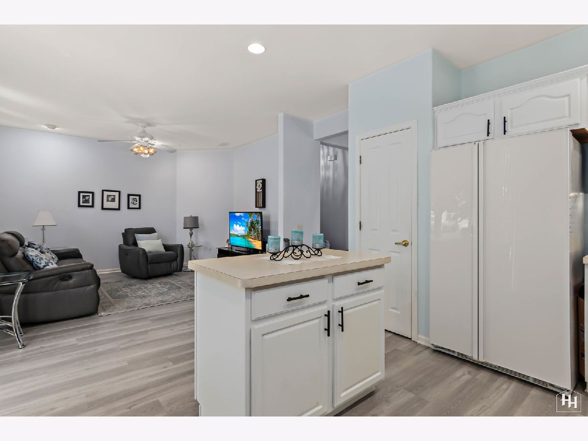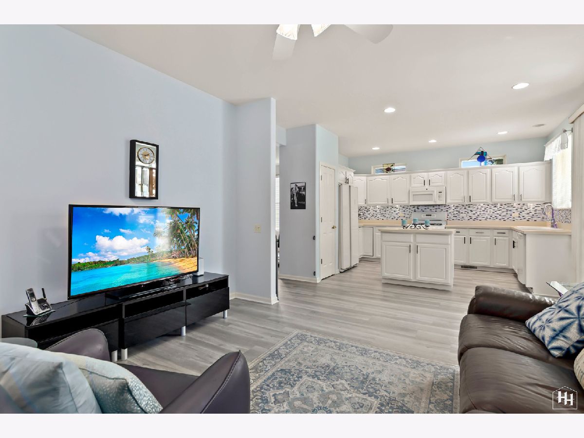 Welcome home! This charming Del Webb Manistee model is nestled in a quiet cul-de-sac. Many updates have already been done for you, including luxury vinyl plank flooring throughout the main living areas, carpet in the bedrooms, comfort height toilets, new Trane 2-stage high efficiency furnace, SimpliSafe security system, new faucets in kitchen and baths, custom Hunter Douglas blinds throughout, Anderson self-storing storm door, new light fixtures throughout, and newer LG front load washing machine & dryer. Featuring 2 bedrooms and 2 full baths, along with a versatile bonus office/hobby room, this ranch home is designed for comfort and functionality. The spacious kitchen features white cabinets with under cabinet lighting, an island, and a large pantry. The open floor plan leads to a cozy living area, illuminated by natural light. The master bedroom is your private oasis, showcasing a bay window, a large walk-in closet with organizer, and a double vanity in the en-suite bathroom. The bonus office/hobby room adds versatility to this home's layout, perfect for pursuing your interests. Outside, enjoy the fenced paver patio, offering a relaxing space for outdoor activities and entertaining. This residence also features a stone elevation that adds to its curb appeal. A deep 2-car garage completes the package. But that's not all! Del Webb offers a truly resort-like experience with its active adult community amenities. Enjoy the club house, indoor and outdoor pools, tennis, bocce ball, and pickleball courts. Stroll along the many walking paths, relax by the large ponds with fountains, and gather in the spacious open areas. This is more than a home; it's a vibrant, active lifestyle waiting for you to embrace.