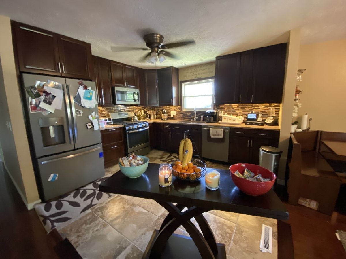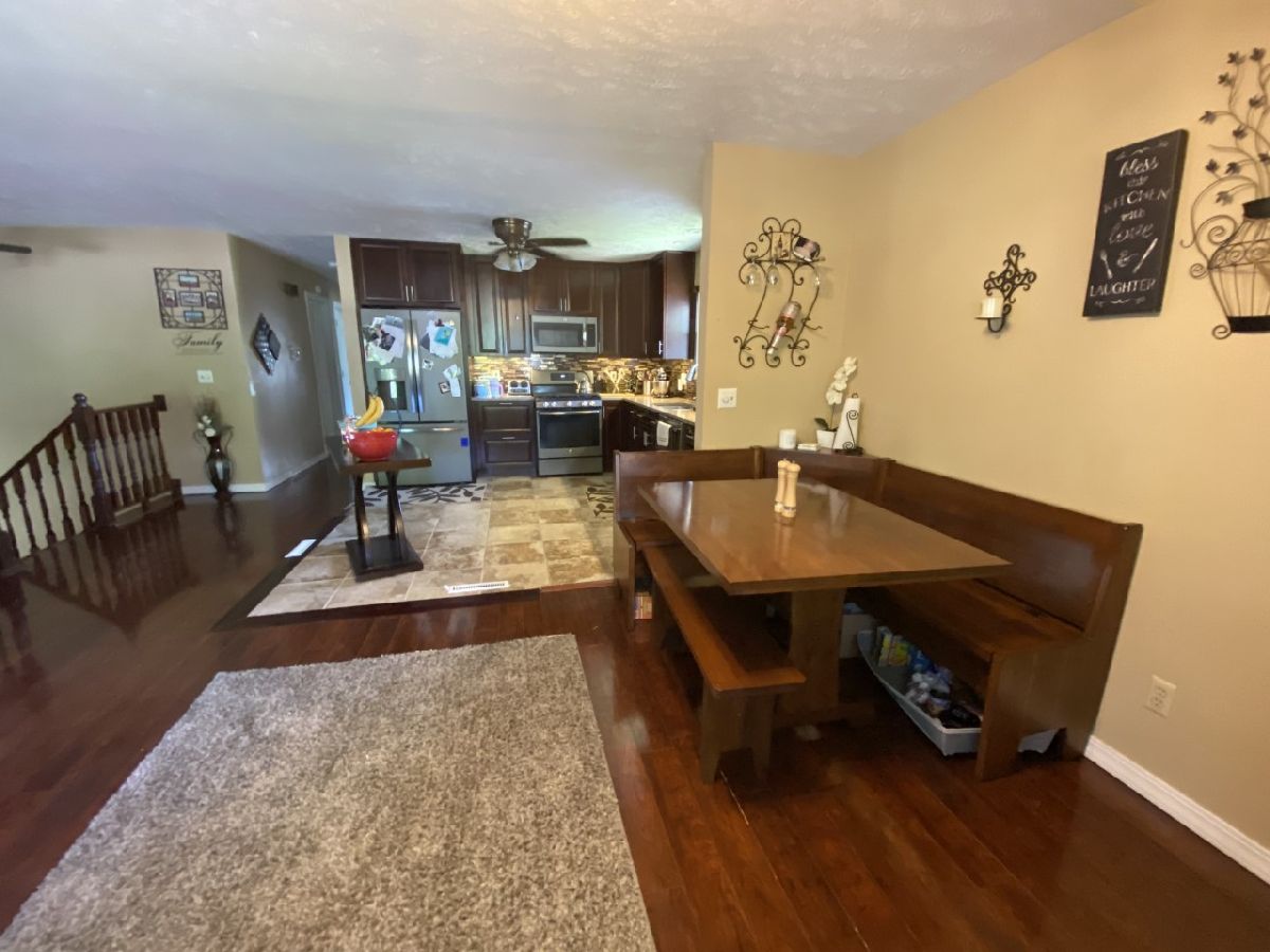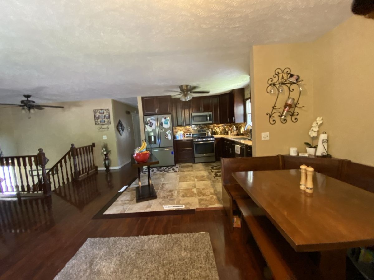 Large L shaped Bi-Level. Many updates, including but not limited to: 6 ft privacy fence 2017. Kitchen 2015 added granite counter tops and soft close drawers & doors., Appliances '20, A/C & furnace '19,Upstairs bath '19, Remodel partial basement '19. Top floor flooring '15,Basement flooring '19, Completely remodeled garage with heated Hunter Fans, Garage currently used as family room, just remove furniture, leave tile flooring and you have your garage back. Jacuzzi room added '20. Above ground heated (heater new in '19) pool 2015 (18x12 looks like in ground pool) with deck and slide.Three new sliding glass door and steps to back deck 2020. Water heater '19. 4 to possibly 6 bedrooms. Large foyer. All updates are high quality. Don't miss viewing this home!!