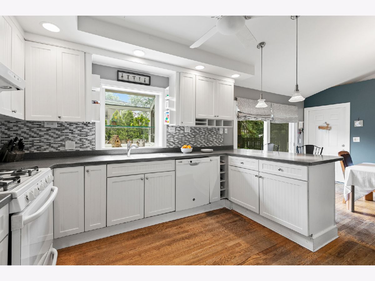 Lovely 3 bedroom split level home just minutes to downtown Arlington Heights. Great location. Easy access to parks, shopping, expressways, and top-rated schools. Updated kitchen with newer white cabinets & breakfast bar, opens to the dining room both with vaulted ceilings making for a bright and airy main living level. Lower level family room with wood-burning fireplace, and radiant heat hardwood flooring. The lower level also offers a full bathroom, and laundry room with storage and a door to the backyard making it a perfect spot for future mudroom. Professionally installed paver patio great for grilling and outdoor entertaining. Pavers continue over to the private fenced yard on the east side of the home for extra outdoor space. This home is on a corner lot with the driveway on South Highland Ave.
