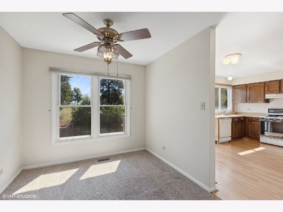 Located in the desirable Highland Green subdivision, this split-level home offers an open floor plan with plenty of natural light. The kitchen features large windows and a cozy eating area, perfect for hosting. The lower level has a walk-out living space with a fireplace, private patio, and a flex room that can serve as a 4th bedroom or home office. Upstairs, the primary suite has dual closets and shares a Jack-and-Jill bathroom with two additional spacious bedrooms. Other highlights include a laundry room, attached two-car garage, and a prime location near I-88, 294, and Yorktown Shopping Center-plus, no HOA!