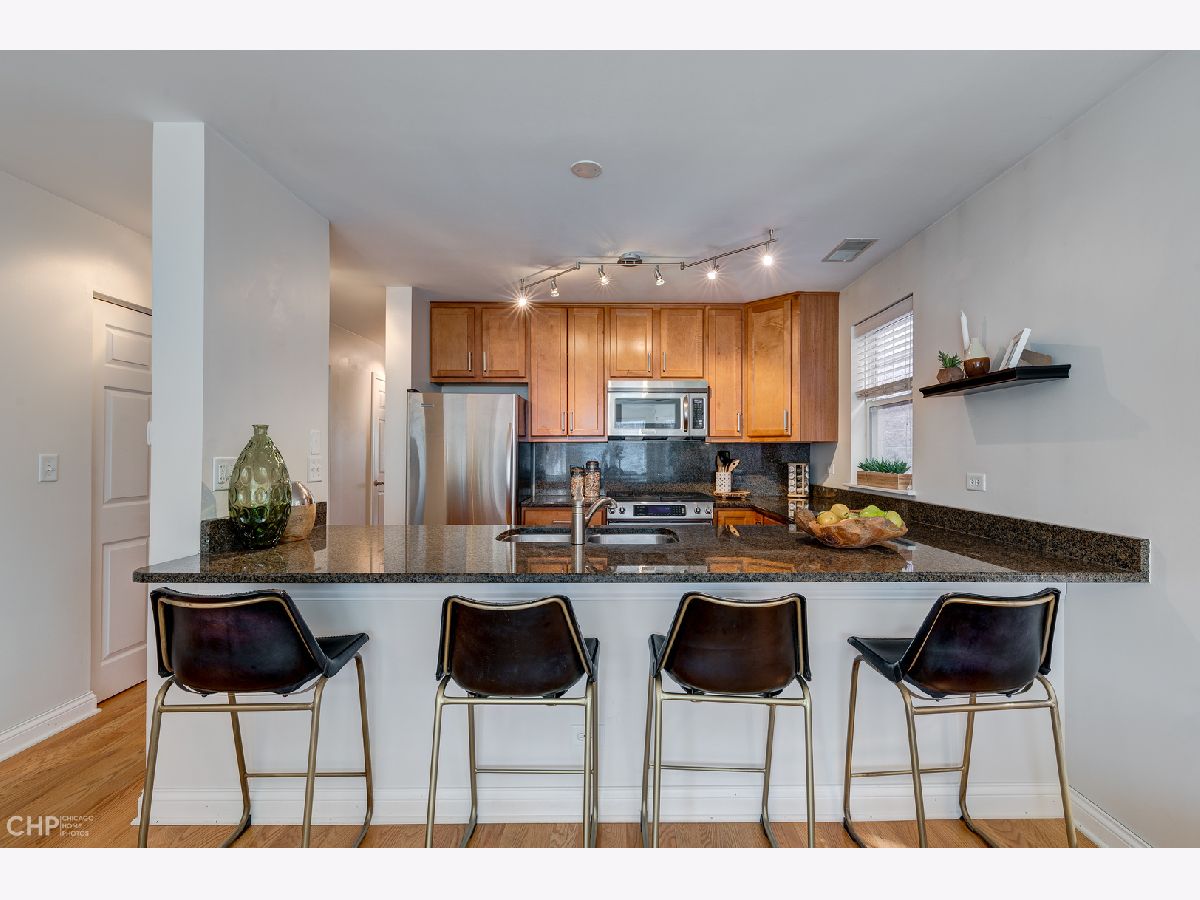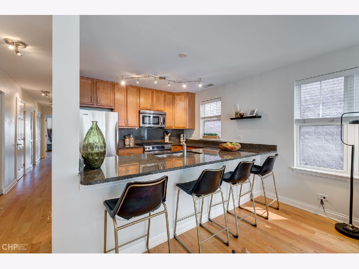 Bright and sunny 2bed/1.5bath condo located on a fantastic tree-lined street in popular Old Town! The home features hardwood floors throughout, an updated kitchen with a large peninsula that is perfect for entertaining, stainless steel appliances including a newer slide-in gas range, granite countertops and slab backsplash, updated lighting, spacious bedrooms with organized closets and a large private deck (2019). Central heat and air, in-unit washer/dryer and exterior parking space make this home complete. Close to expressway, red and brown lines, commuter bus, Target, Marianos and much more! Association is professionally managed and offer low monthly assessments. Investor friendly.
