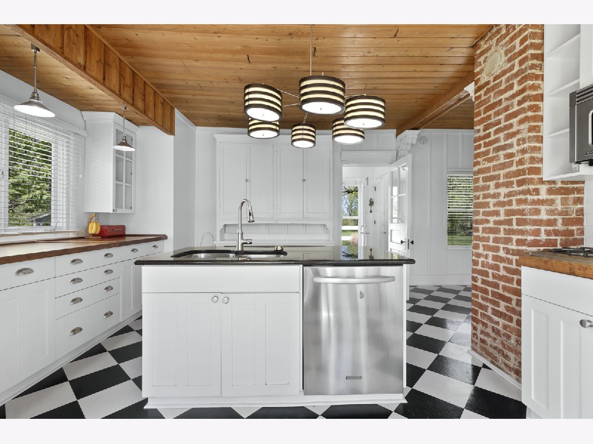 Experience the beauty and tranquility of rural living with this charming one-of-a-kind property that exudes character and sophistication. Escape at home on this 3 acre property, A-1 zoning, where you can enjoy al fresco dining on the decks or embrace the simple pleasures of nature in the vast backyard. This welcoming 1846 home seamlessly blends historic charm and contemporary comforts. Exposed brick, some original leaded glass windows, hand-hewn wood posts and the inclusion of vintage architectural millwork add additional character throughout. Whether preparing a casual meal or hosting a lavish dinner party, the bright kitchen space is as functional as it is stylish. High-end appliances include Stainless Subzero glass door double wide side-by-side refrigerator, Viking Oven, Cook-top and Microwave surround the central island hub with its granite counters and breakfast bar seating. A checkerboard floor and rich wood ceiling flow seamlessly into the adjoining dining room and mud/laundry room. The large living room is home to the centrally located gas fireplace that is faced with a curated vintage mantel. The first floor has a great flex room that would make an inviting family room or even a delightful main floor bedroom. It adjoins the sunroom that overlooks the back of the three acre property. Striking large first floor full bath is finished in white marble subway tile and hexagon mosaic porcelain floor tile with a pedestal sink and full shower/bath. Vaulted ceiling and three walls of windows are highlights in the private office alcove. Head upstairs to find three bedrooms and a den that currently has floor-to-ceiling shelving, which could be used as another bedroom. The largest upstairs bedroom is currently used as a primary bedroom and has a full wall of built-in closets. Storage upstairs is abundant and includes a large walk-in closet and an attic accessed by pull down stairs. The updated second floor bathroom also features clean white subway tile finishes with glass shower enclosure and marble floor tile that create a fresh atmosphere. The basement has space used as a rustic rec room/hangout/game room with exterior access and a separate mechanical/storage room. The three car detached garage has an adjoining barn space with sliding rear door access and a separate garden shed provides more space for all your yard goodies. All of this plus A-1 zoning provides you the option to bring your horses, small animals and/or chickens! This property represents a rare opportunity to own a piece of history in a coveted location offering both privacy and convenience. The property is conveniently located within easy reach of local shopping, dining, entertainment and Metra. Chicago and Milwaukee are approx. 60 miles and Lake Geneva fun is only twenty minutes away. Cinch Home Warranty included for buyer's peace of mind. Don't miss your chance to make this timeless treasure your own - schedule a showing today!