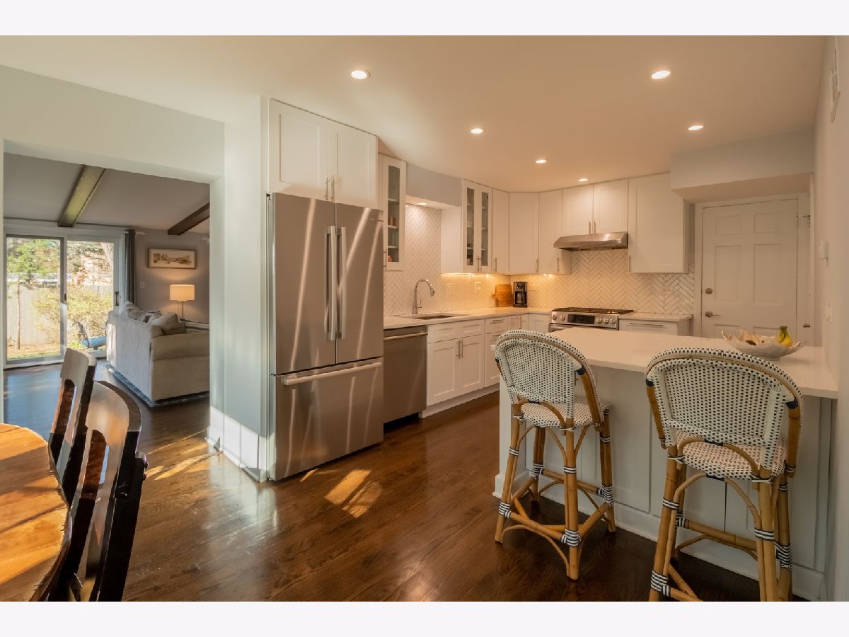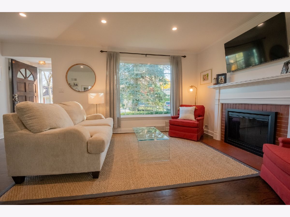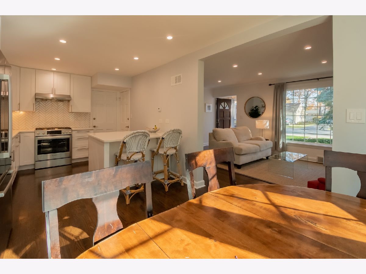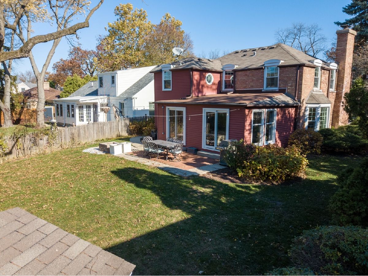 Charming and updated brick colonial home in an unbeatable East Glenview location just a short walk to town and the train. The brick paver walkway and front stoop welcomes you up to the home. The front living room features dark hardwood floors, recessed lighting, crown molding, wood burning fireplace with colonial mantle, and a large picture window for natural light. The hardwood floors flow from the living room into the open concept kitchen and dining room with a bay window. The new kitchen features white shaker cabinets, quartz countertops, herringbone backsplash, peninsula island, and Bosch stainless steel appliances. Large family with room with beam ceiling, tons of natural light including two sliders out to the patio, and a built-in entertainment center with cabinets and shelving. Completing the main level is a powder room and amazing main level laundry/mud room. The second level of the home has three bedrooms and two full bathrooms including a private master suite. Further expanding the living space is a finished lower level with new tile flooring and recessed lighting. Nice sized yard with a large patio. Don't miss this opportunity to purchase a move-in ready home in an amazing East Glenview location.