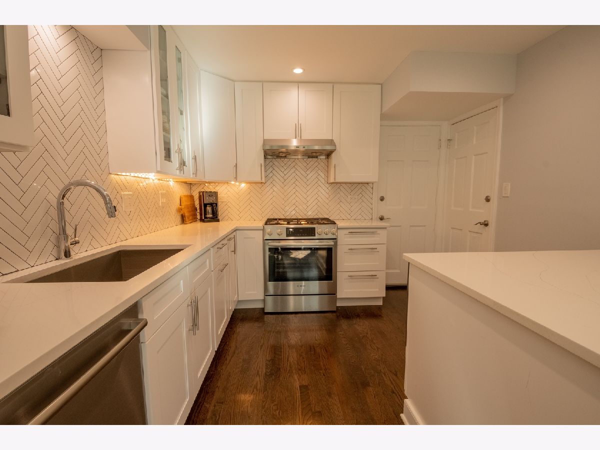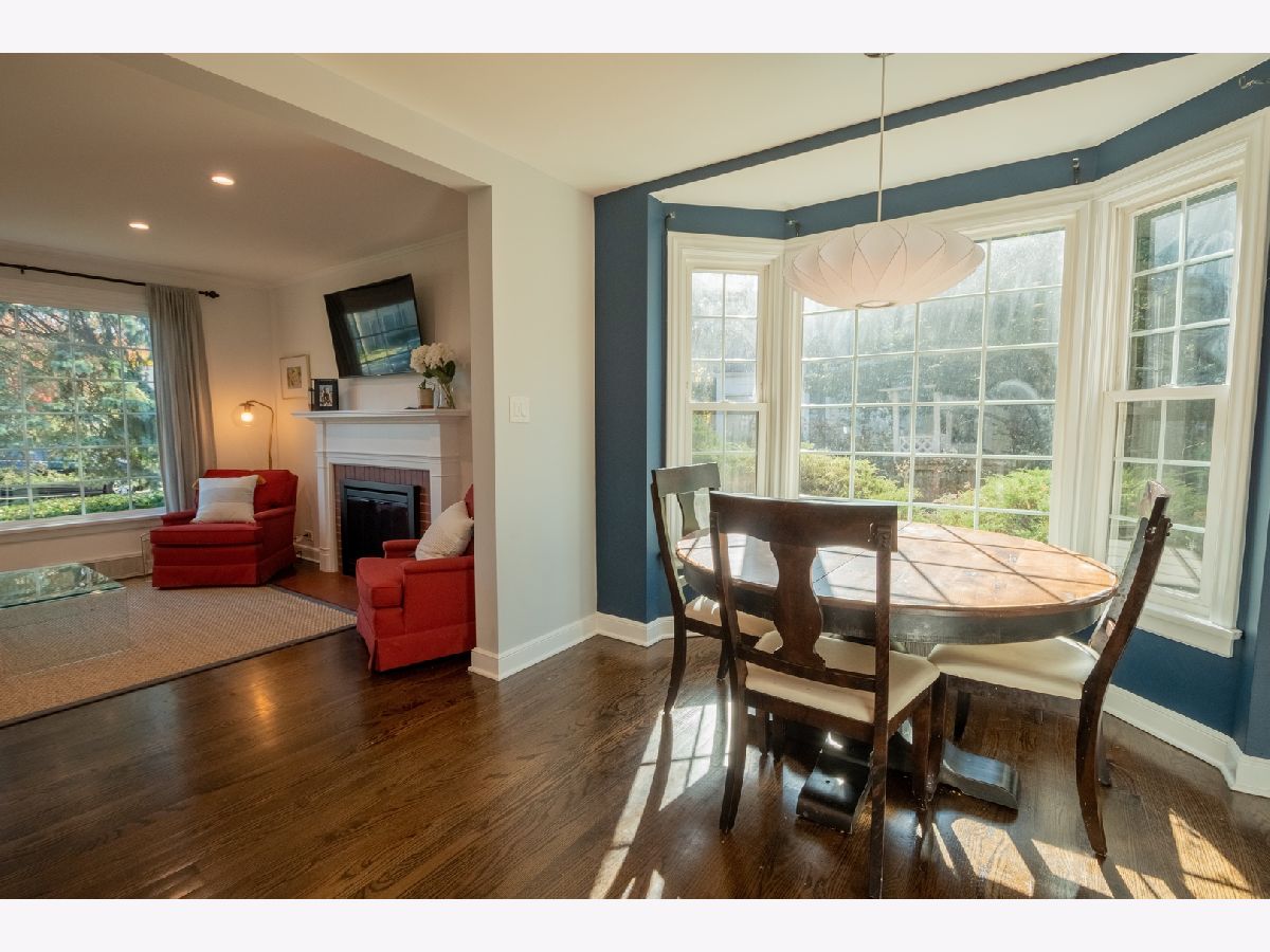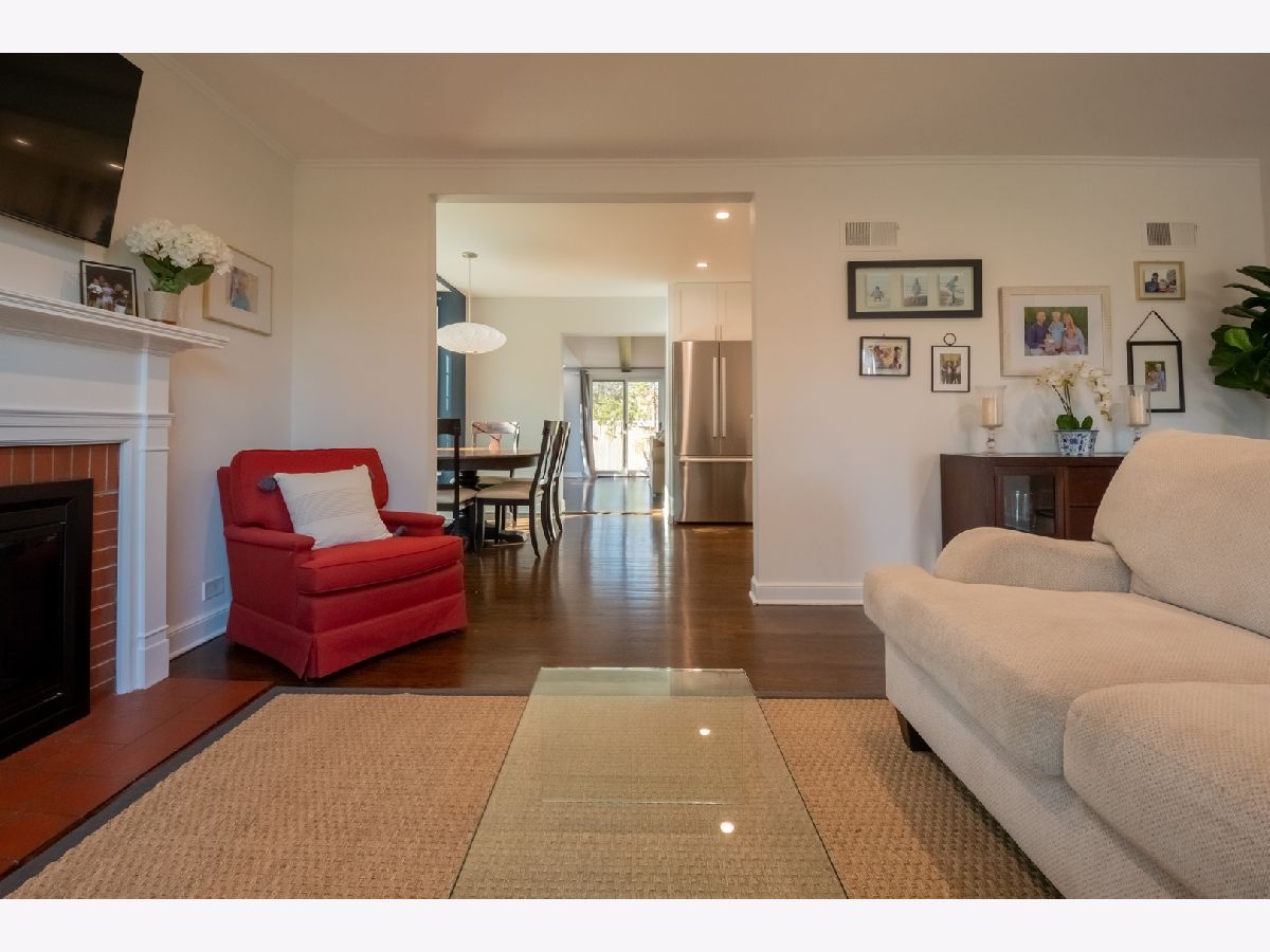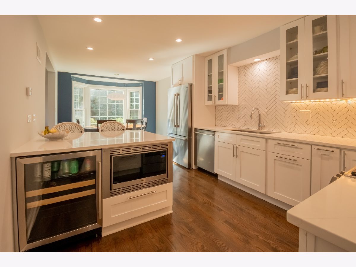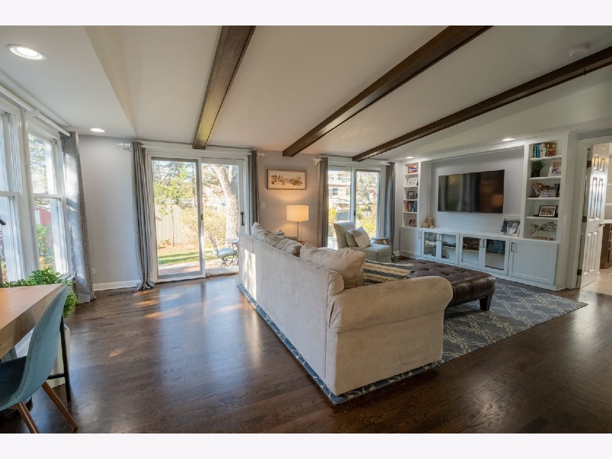 Charming and updated brick colonial home in an unbeatable East Glenview location just a short walk to town and the train. The brick paver walkway and front stoop welcomes you up to the home. The front living room features dark hardwood floors, recessed lighting, crown molding, wood burning fireplace with colonial mantle, and a large picture window for natural light. The hardwood floors flow from the living room into the open concept kitchen and dining room with a bay window. The new kitchen features white shaker cabinets, quartz countertops, herringbone backsplash, peninsula island, and Bosch stainless steel appliances. Large family with room with beam ceiling, tons of natural light including two sliders out to the patio, and a built-in entertainment center with cabinets and shelving. Completing the main level is a powder room and amazing main level laundry/mud room. The second level of the home has three bedrooms and two full bathrooms including a private master suite. Further expanding the living space is a finished lower level with new tile flooring and recessed lighting. Nice sized yard with a large patio. Don't miss this opportunity to purchase a move-in ready home in an amazing East Glenview location.