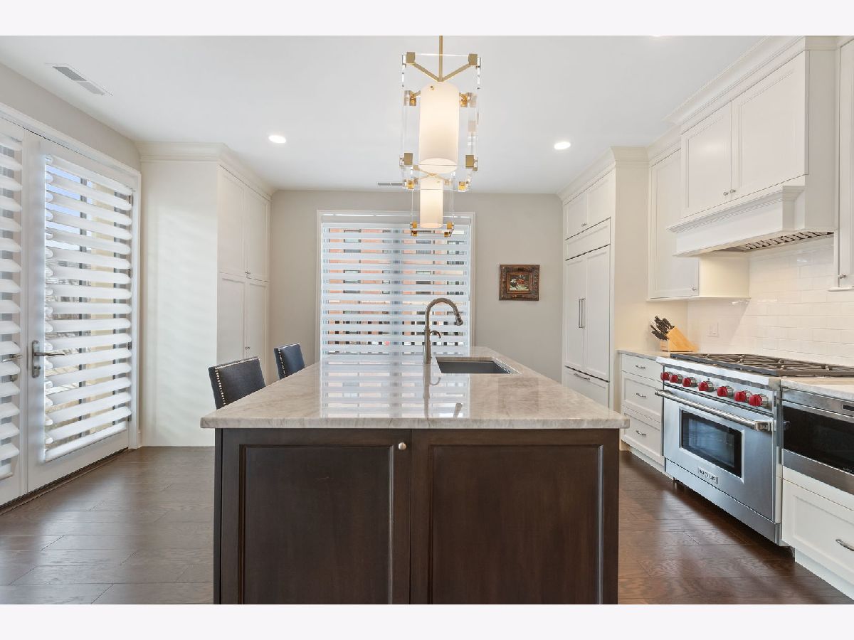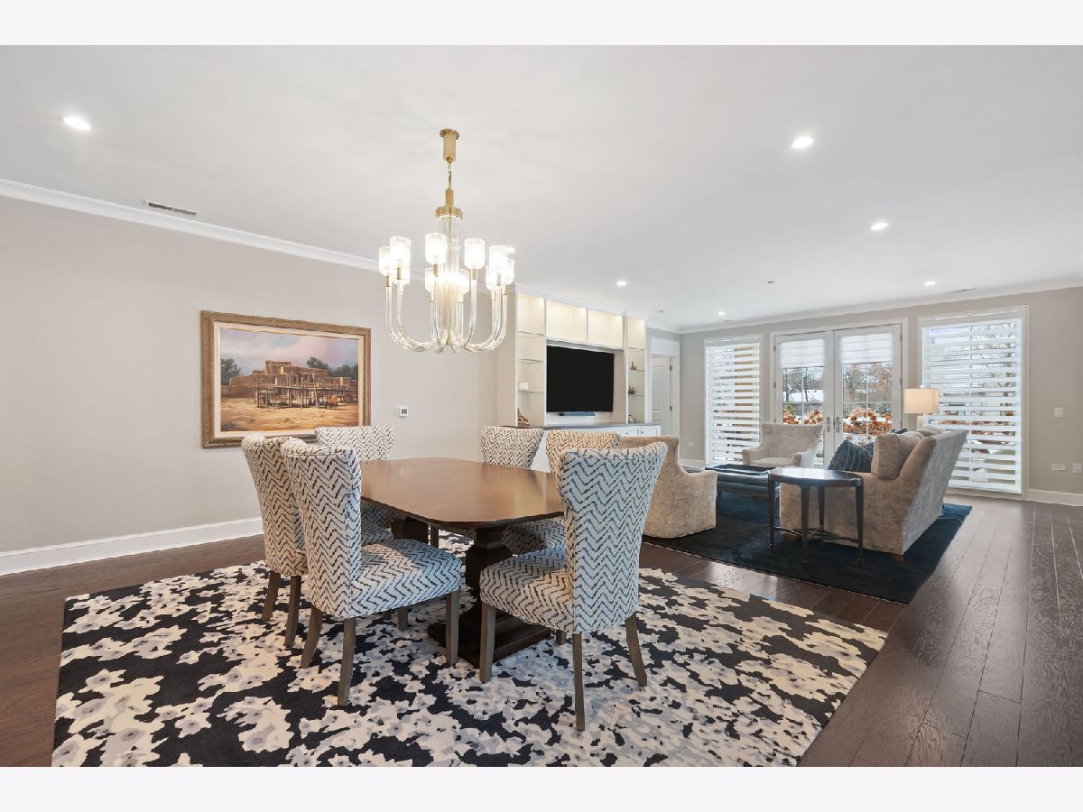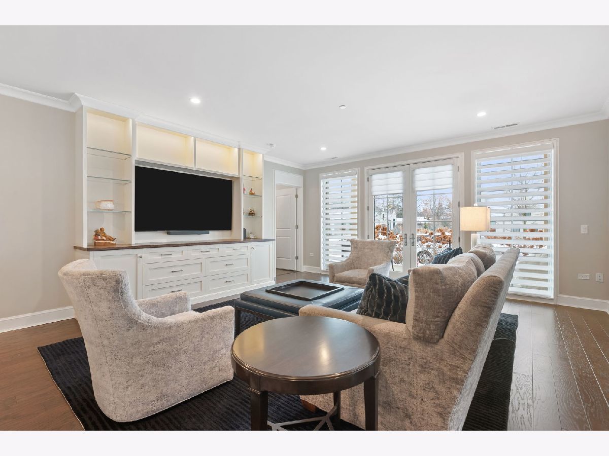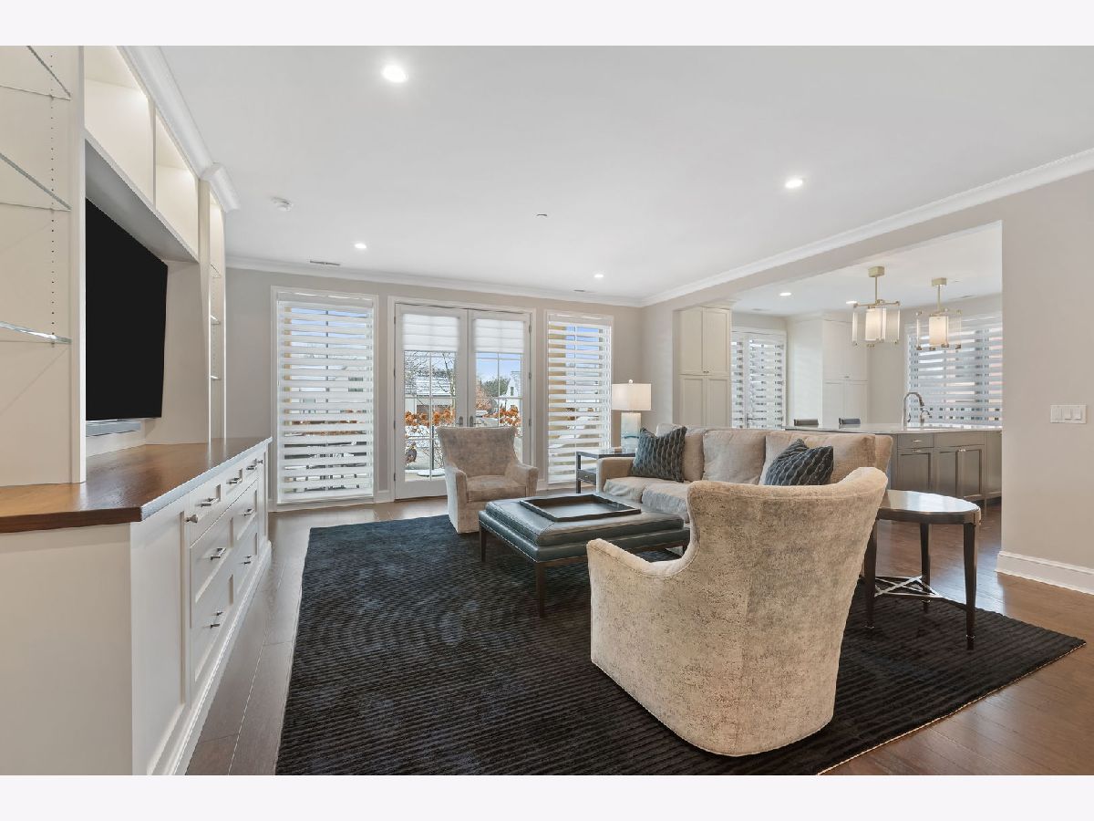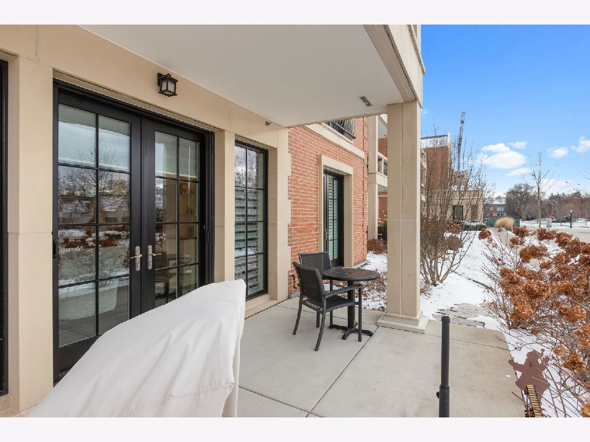 An extraordinary example of luxury maintenance-free living in a quiet enclave in downtown Lake Forest, this rare corner unit lives like a sprawling ranch with 3 bedrooms, 2.5 baths and an open entertainer's floorplan with immaculate sunlit interiors flowing out to a ground-level stone patio providing direct street access. Constructed in 2018 and selected as the original model home for the building, the residence is an elegant showcase of timeless design and craftsmanship as the owners tastefully updated and upgraded the space with custom window treatments, plantation shutters, wallpaper, custom TV wall and cabinets, designer lighting, crown molding, a new 75 gallon water heater, new laundry room with quartz countertops and tile, and more. Gracious 9-foot ceilings and tall windows create a sense of volume while bathing the entire great room, dining room and kitchen with natural light. Adjacent, the den could easily flex to a third bedroom with closets. The kitchen is adorned with an island, polished marble counters, Sub Zero and Wolf appliances, and a new Cove dishwasher. French doors open to a charming patio overlooking the front garden as stone steps lead from the patio to the street - perfect for unloading groceries. The primary bedroom is a sanctuary, boasting two walk-in closets and a spa-like bathroom appointed with marble floors, quartz counters, two vanities, private water closet, a soaking tub, and a luxuriously oversized marble shower with room for two. Complementing these features are a very unique private storage room steps from the unit, plus 4 appointed parking spots and an EV charger. The building also offers additional outdoor entertaining space with a built-in BBQ, firepit and dining tables. A close-to-town location means you can walk to Market Square and other Lake Forest attractions. This exceptional single-owner home is the pride of Kelmscott Park!