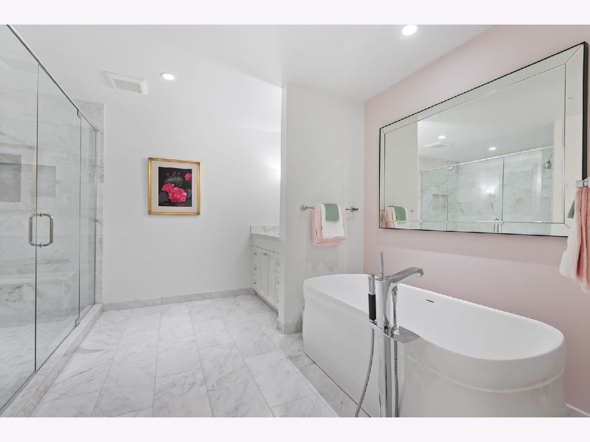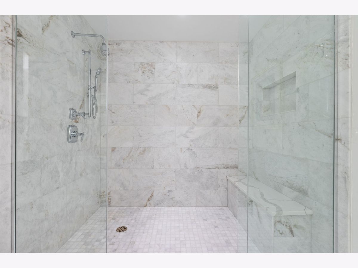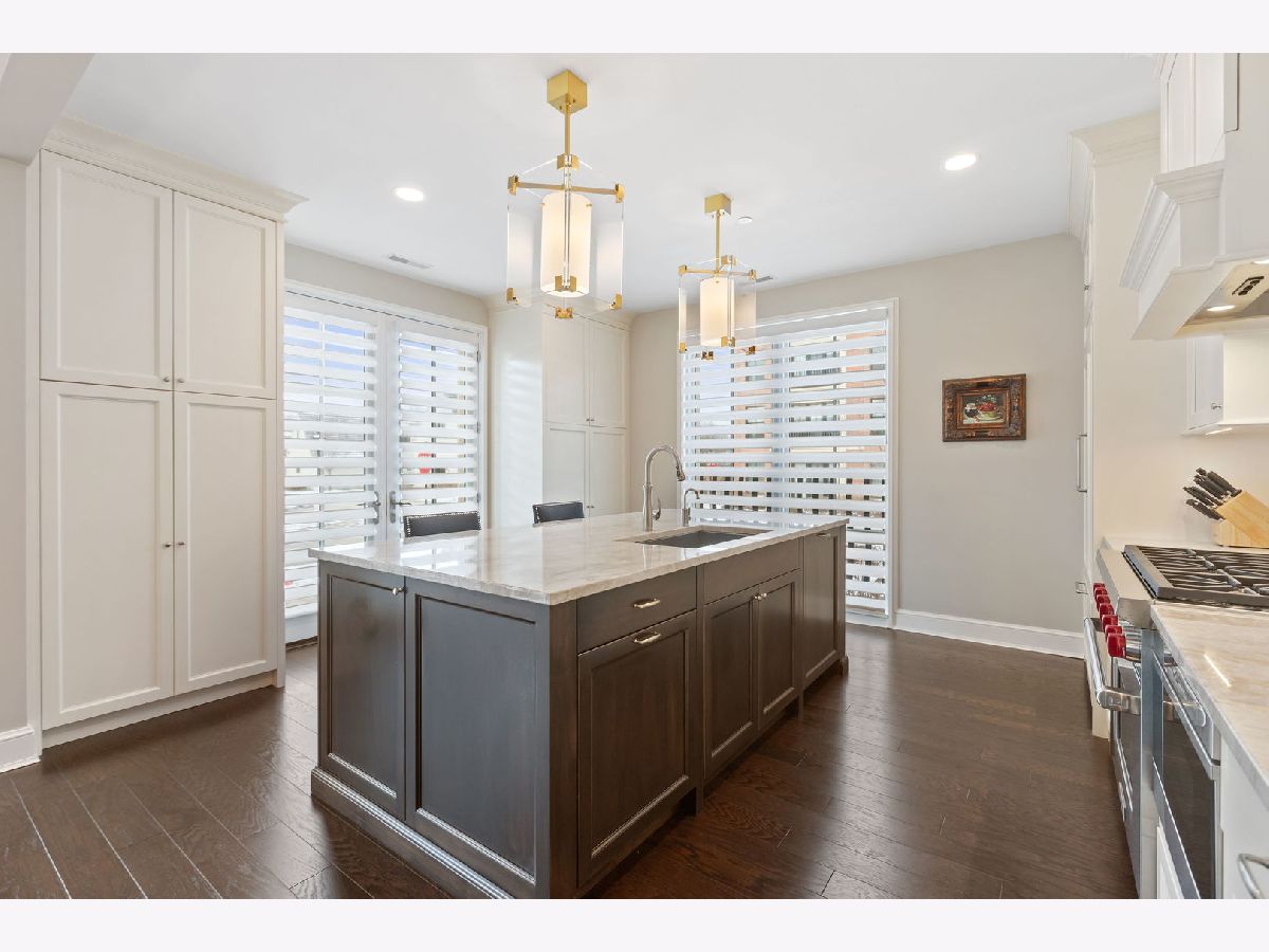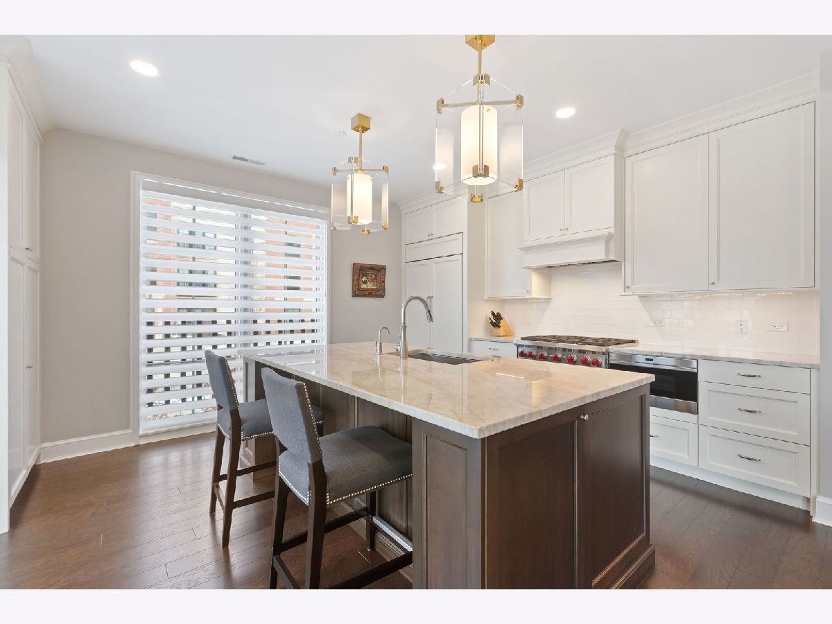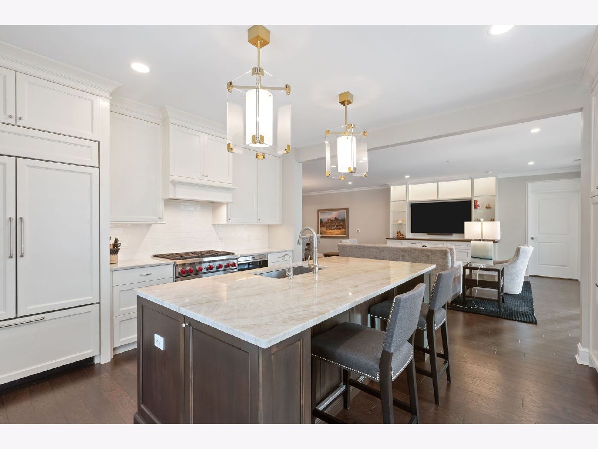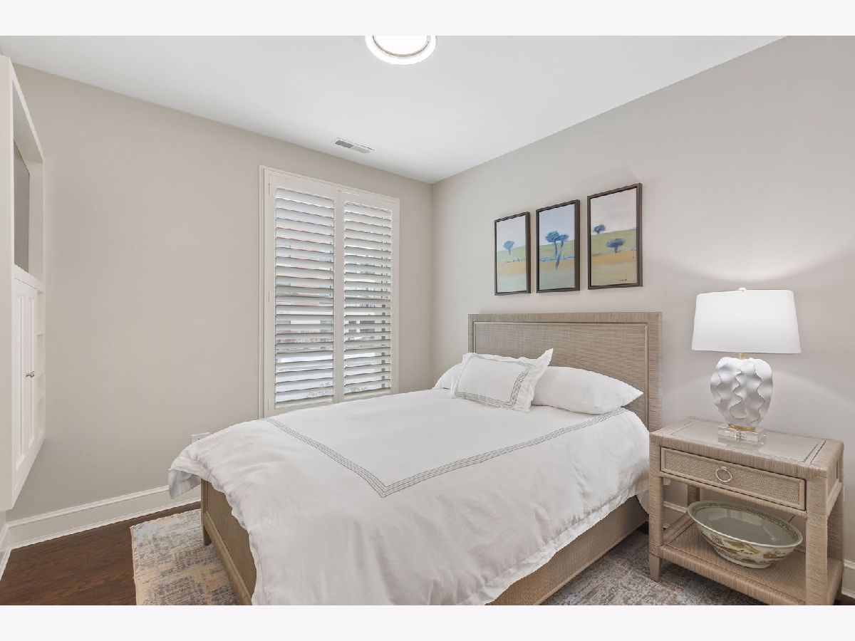 An extraordinary example of luxury maintenance-free living in a quiet enclave in downtown Lake Forest, this rare corner unit lives like a sprawling ranch with 3 bedrooms, 2.5 baths and an open entertainer's floorplan with immaculate sunlit interiors flowing out to a ground-level stone patio providing direct street access. Constructed in 2018 and selected as the original model home for the building, the residence is an elegant showcase of timeless design and craftsmanship as the owners tastefully updated and upgraded the space with custom window treatments, plantation shutters, wallpaper, custom TV wall and cabinets, designer lighting, crown molding, a new 75 gallon water heater, new laundry room with quartz countertops and tile, and more. Gracious 9-foot ceilings and tall windows create a sense of volume while bathing the entire great room, dining room and kitchen with natural light. Adjacent, the den could easily flex to a third bedroom with closets. The kitchen is adorned with an island, polished marble counters, Sub Zero and Wolf appliances, and a new Cove dishwasher. French doors open to a charming patio overlooking the front garden as stone steps lead from the patio to the street - perfect for unloading groceries. The primary bedroom is a sanctuary, boasting two walk-in closets and a spa-like bathroom appointed with marble floors, quartz counters, two vanities, private water closet, a soaking tub, and a luxuriously oversized marble shower with room for two. Complementing these features are a very unique private storage room steps from the unit, plus 4 appointed parking spots and an EV charger. The building also offers additional outdoor entertaining space with a built-in BBQ, firepit and dining tables. A close-to-town location means you can walk to Market Square and other Lake Forest attractions. This exceptional single-owner home is the pride of Kelmscott Park!