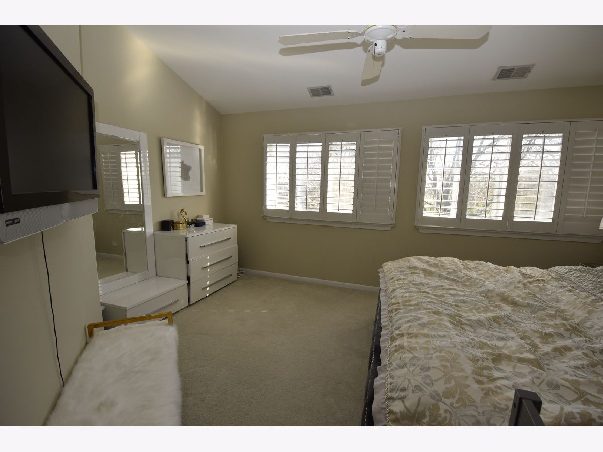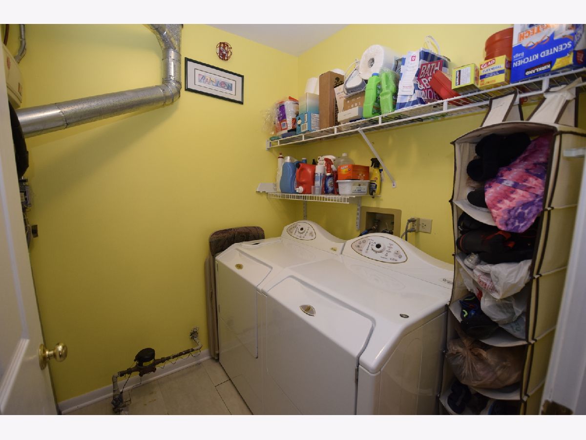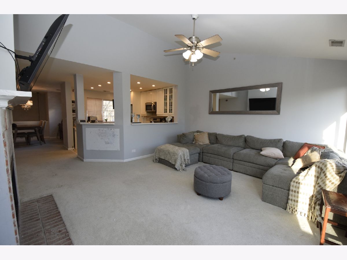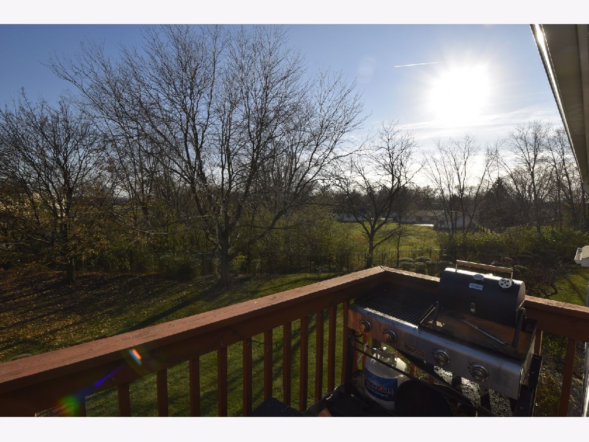 Premium location with wooded rear view. Eat-in kitchen, new refrigerator, features solid surface counter tops, under cabinet lighting, soft close cabinet drawers, recessed lighting and all stainless steel appliances, new fridge. Separate dining room off kitchen. Living room features vaulted ceiling, wood burning fireplace and access to the balcony. Two hall closets. Updated hall bath. Master bedroom features vaulted ceiling, plant ledge, walk-in closet, and updated full bath. 2nd bedroom features built-in bookshelves and closet organizer. Convenient in-unit laundry. Attached garage with built-in shelving. New roof in 2018. Great location - close to schools, shopping, expressways and more!