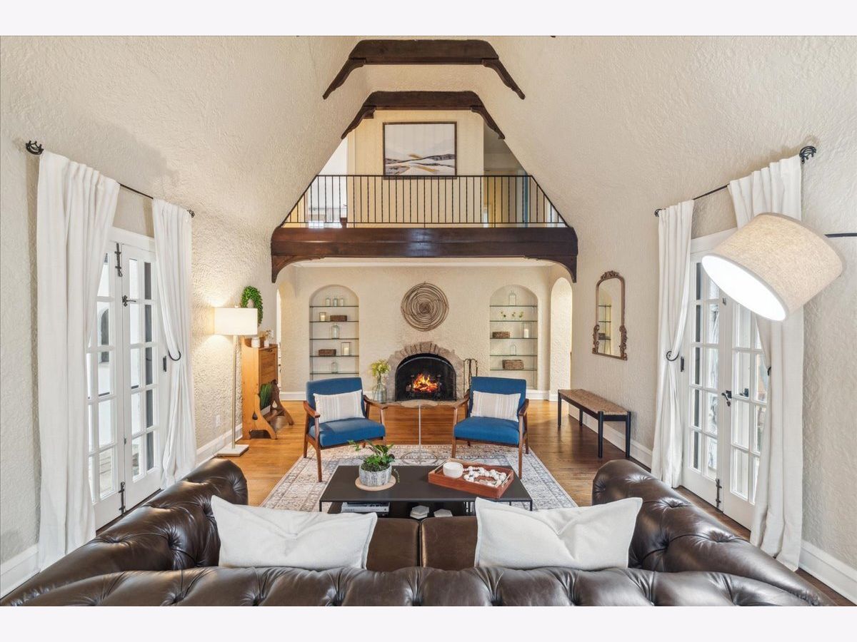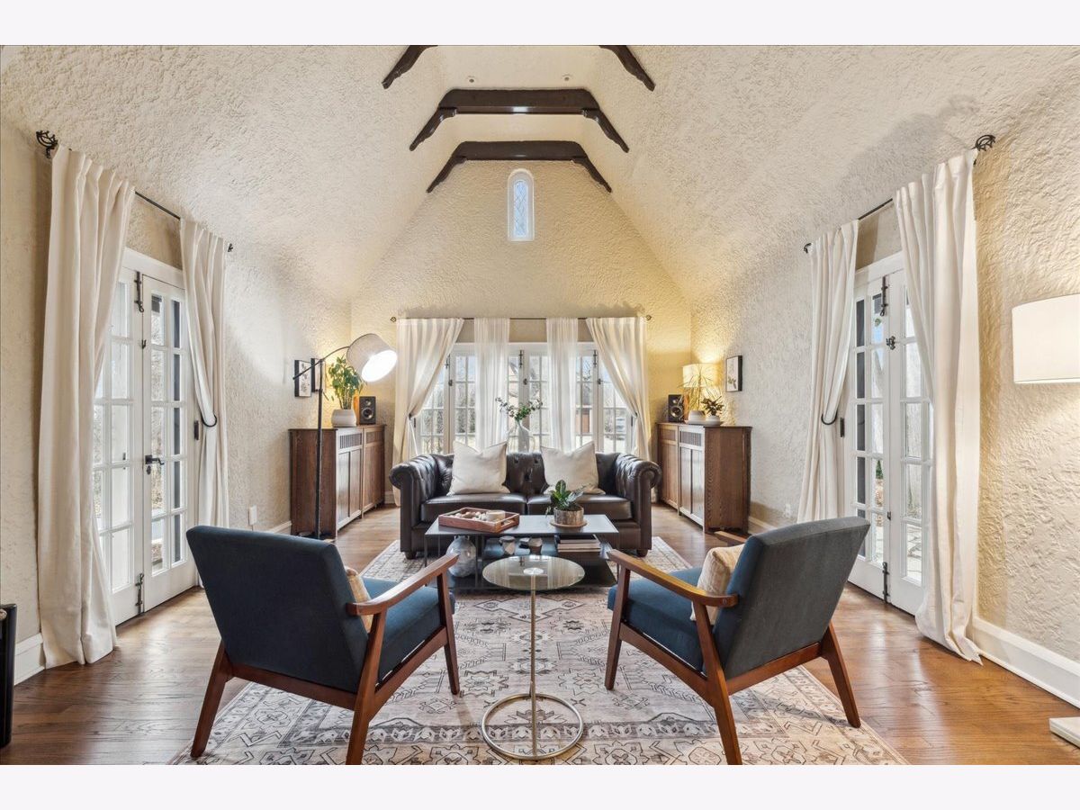 This Exceptional Tudor Home, in a Great East Highland Park Location, Exudes Warmth & Character! With Historical Architectural Details, including Arched Doorways, Windows and Built-Ins. Features a Dramatic 2 Story Vaulted Living Room with Wood Beams, a Stone Fireplace and French doors on 3 sides. The Eat-in Kitchen boasts New Stainless Appliances and Quartz Countertops, and opens to the Family Room with 2nd Fireplace and Sliders leading to the Large Deck. An Abundance of Natural Light throughout the Home, with Newer Andersen Windows. Large Bedrooms and Updated Baths, including the Private Primary Suite. Tons of Storage throughout All Levels, with Additional Living Space in the Finished Basement. Fully Fenced Backyard and a 2.5 Car Garage. Amazing Location, within Walking Distance to Downtown Highland Park, Ravinia District, Ravinia Music Fest, Rosewood Beach, 2 Metra stops, and the Green Bay Trail.