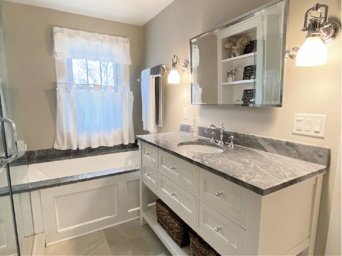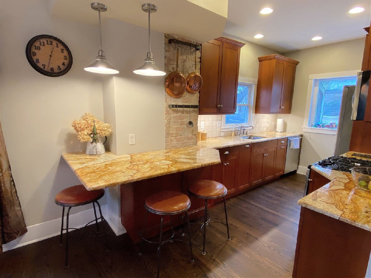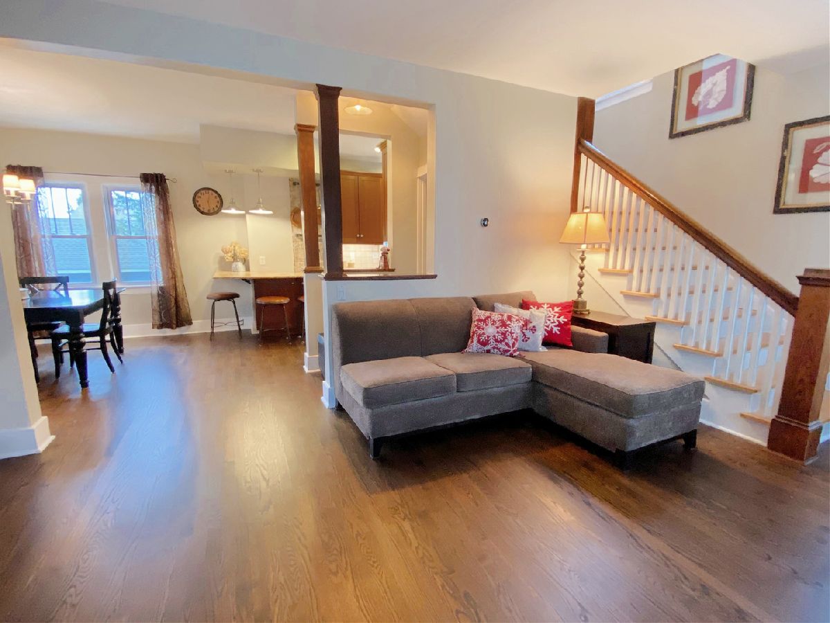 Chances like this do not come along very often in downtown GENEVA! Beautifully upgraded and updated home in the heart of downtown! Newly refinished hardwood floors on the main floor. Kitchen features granite countertops, stainless steel appliances, breakfast bar, eat in table space. Nice size living/family room. Upstairs features three bedrooms and gorgeous renovated bath with custom vanity, deep soaking tub and separate shower! Stone pavers in the front and stone patio with brick firepit. Enclosed front porch. Walk to everything! Train, town, shops, restaurants, river trail, etc!