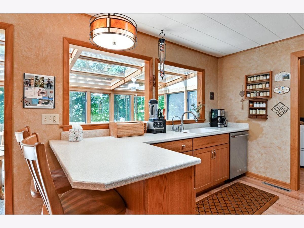 Straight from a storybook, this charming 3-bedroom, 2 full bath home on a one-acre plot is a true gem. A long driveway leads up to this nestled, well-kept house, which features a spacious living room with a grand window and wood-burning fireplace. The chic kitchen is fully remodeled with two built-in ovens, Corian countertops, gas stovetop, and all high-end appliances. It opens up to a stunning sunroom enclosed entirely in glass so that you can enjoy breathtaking views of a wooded backyard in every season. A two-car garage is conveniently attached to the home, and extra storage can be found in the two well-maintained outdoor sheds on the property. Make this unique home yours today!