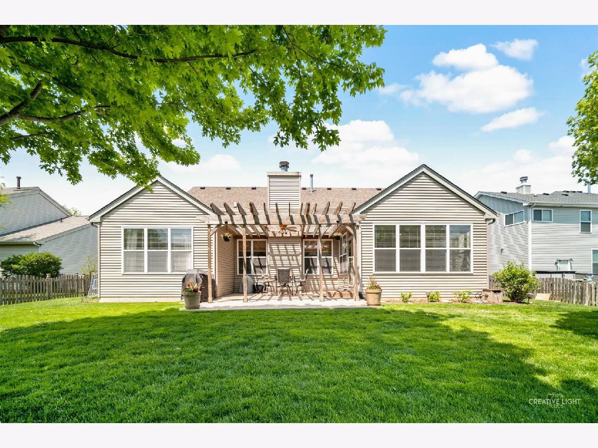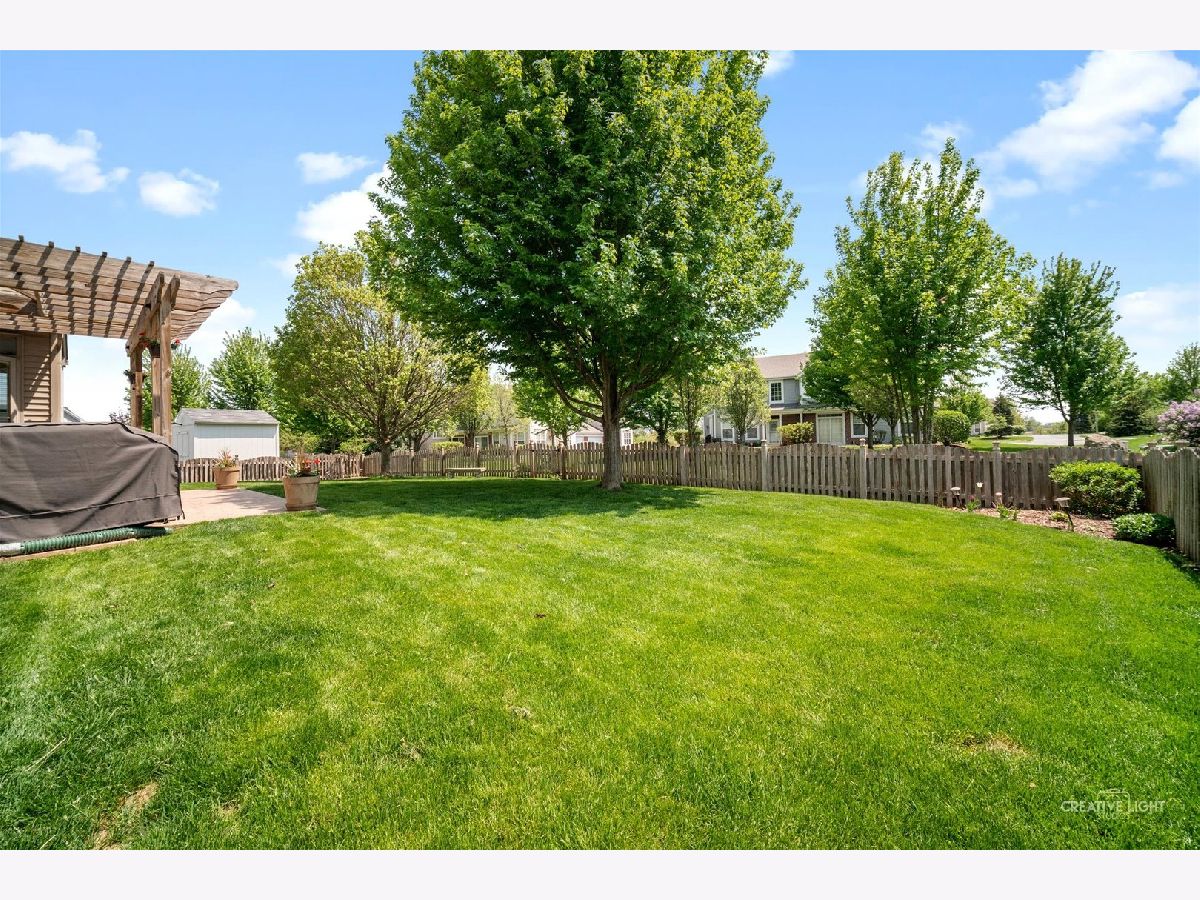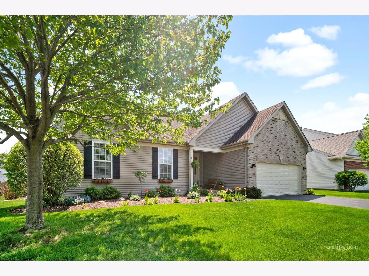 Hidden gem just 46 miles west of Chicago. Ease of access to I-88 means commute to Chicago may take less than that of homes twice as close. 3+2 BR, 3 bath ranch with a full, partially finished basement in Windsor West. Open floor plan opens with graceful arched doorways that create a sense of space while allowing for flexible use. Large great room with vaulted ceiling and cozy fireplace opens to kitchen and breakfast room, plus a separate dining area that currently serves as a wonderful office. Sunny, airy white kitchen (completely updated, including new appliances and flooring in summer 2020) has breakfast bar and cooking island with additional seating. Eating area feels like a sunroom with loads of windows overlooking beautiful backyard. Glass door leads out to stamped concrete patio tucked between kitchen and family room and covered with pergola creating a private outdoor hideaway. Pergola has outdoor fan and lighting to make this area feel like a delightful living space. Parklike backyard is completely fenced and perfect for pets or kids. Primary bedroom and bath are separated from other two bedrooms on main floor for privacy. HUGE basement is perfect for out of town guests or multi-generational living. There are two large bedrooms with walk in closets and a full bathroom downstairs. Walk past the first bedroom to enter flexible space currently set up as a rec room and another large exercise room and a large separate storage room. 2-car attached garage. Kaneland District 302 schools. School bus service. Neighborhood park.