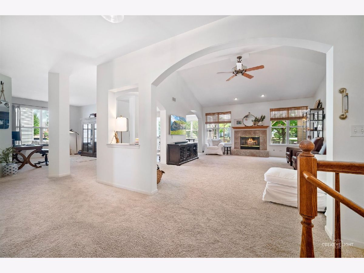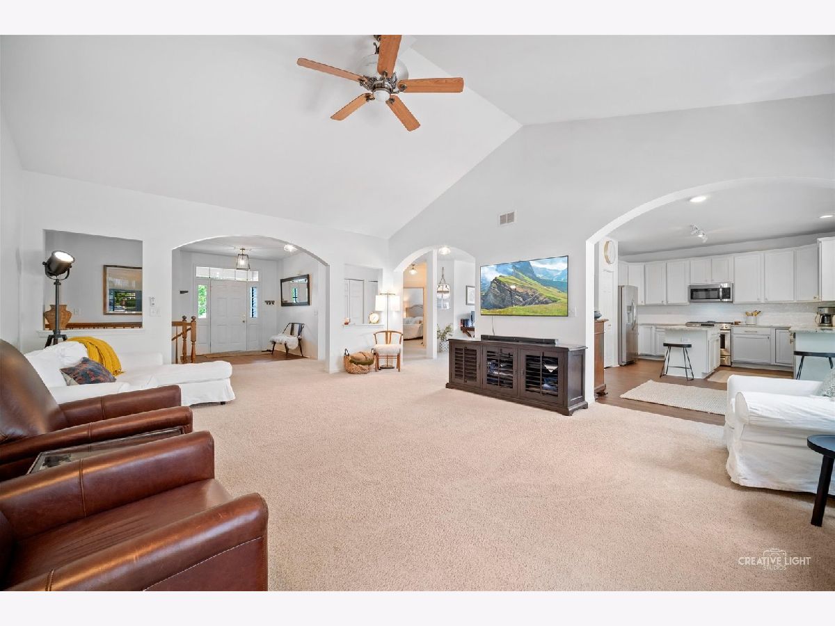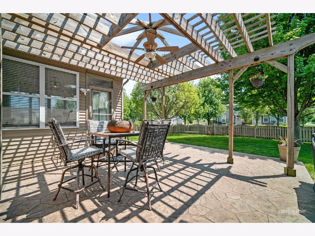 Hidden gem just 46 miles west of Chicago. Ease of access to I-88 means commute to Chicago may take less than that of homes twice as close. 3+2 BR, 3 bath ranch with a full, partially finished basement in Windsor West. Open floor plan opens with graceful arched doorways that create a sense of space while allowing for flexible use. Large great room with vaulted ceiling and cozy fireplace opens to kitchen and breakfast room, plus a separate dining area that currently serves as a wonderful office. Sunny, airy white kitchen (completely updated, including new appliances and flooring in summer 2020) has breakfast bar and cooking island with additional seating. Eating area feels like a sunroom with loads of windows overlooking beautiful backyard. Glass door leads out to stamped concrete patio tucked between kitchen and family room and covered with pergola creating a private outdoor hideaway. Pergola has outdoor fan and lighting to make this area feel like a delightful living space. Parklike backyard is completely fenced and perfect for pets or kids. Primary bedroom and bath are separated from other two bedrooms on main floor for privacy. HUGE basement is perfect for out of town guests or multi-generational living. There are two large bedrooms with walk in closets and a full bathroom downstairs. Walk past the first bedroom to enter flexible space currently set up as a rec room and another large exercise room and a large separate storage room. 2-car attached garage. Kaneland District 302 schools. School bus service. Neighborhood park.