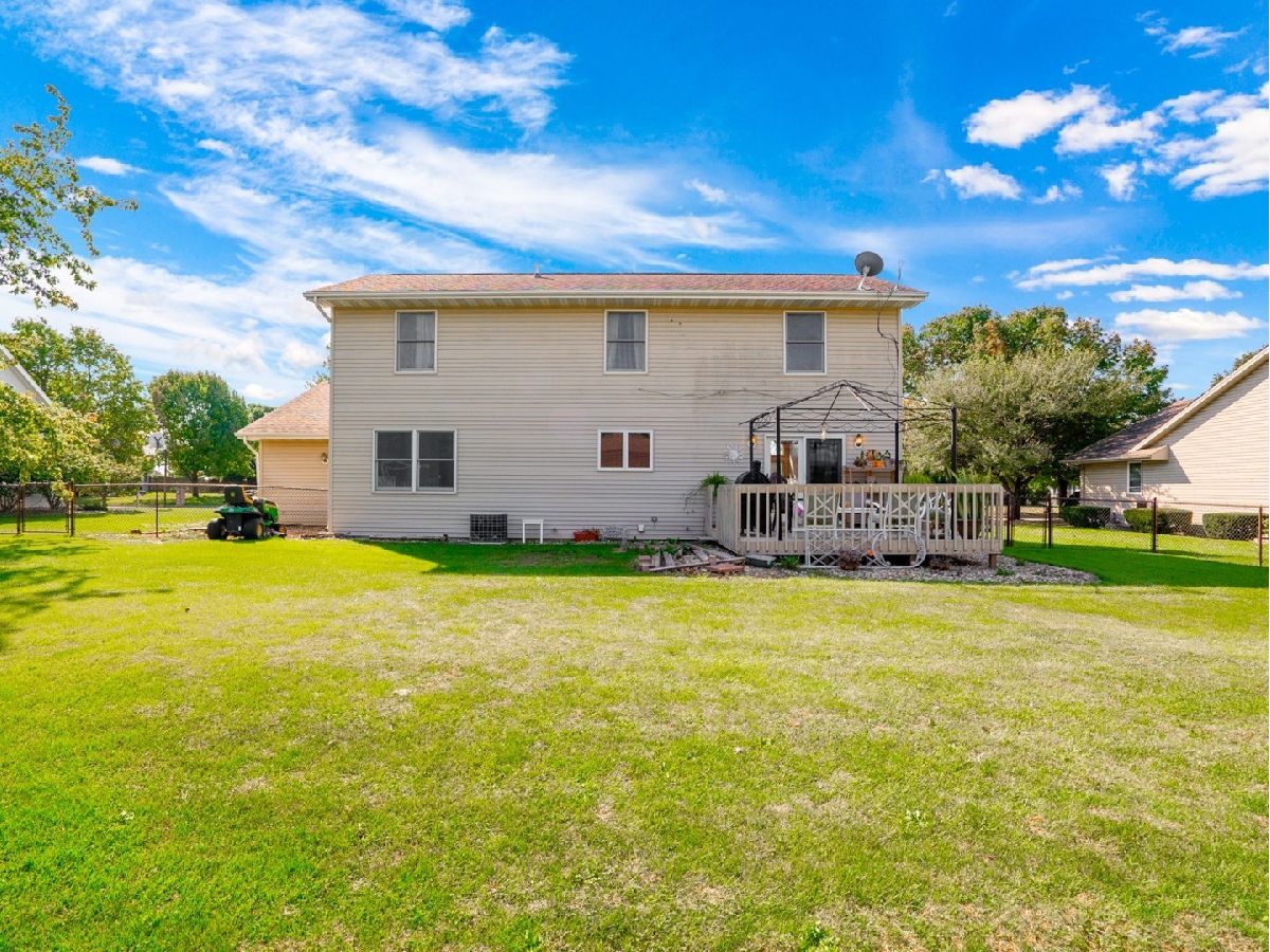 Spacious 4 bedroom home includes cathedral ceiling and cozy fireplace in the living room. Kitchen features oak cabinets, island and table space. First floor master bedroom, three additional bedrooms upstairs along with a bonus room. Unfinished basement and three car garage. Enjoy cool evenings on the deck in the fenced in backyard. Also included is a reverse osmosis water filtration system. Call your REALTOR today!
