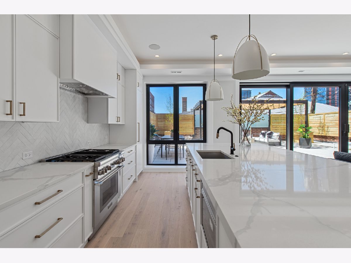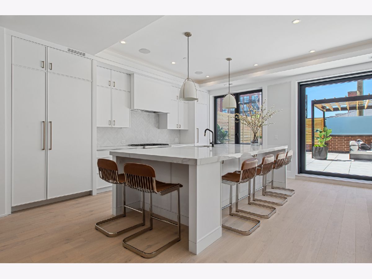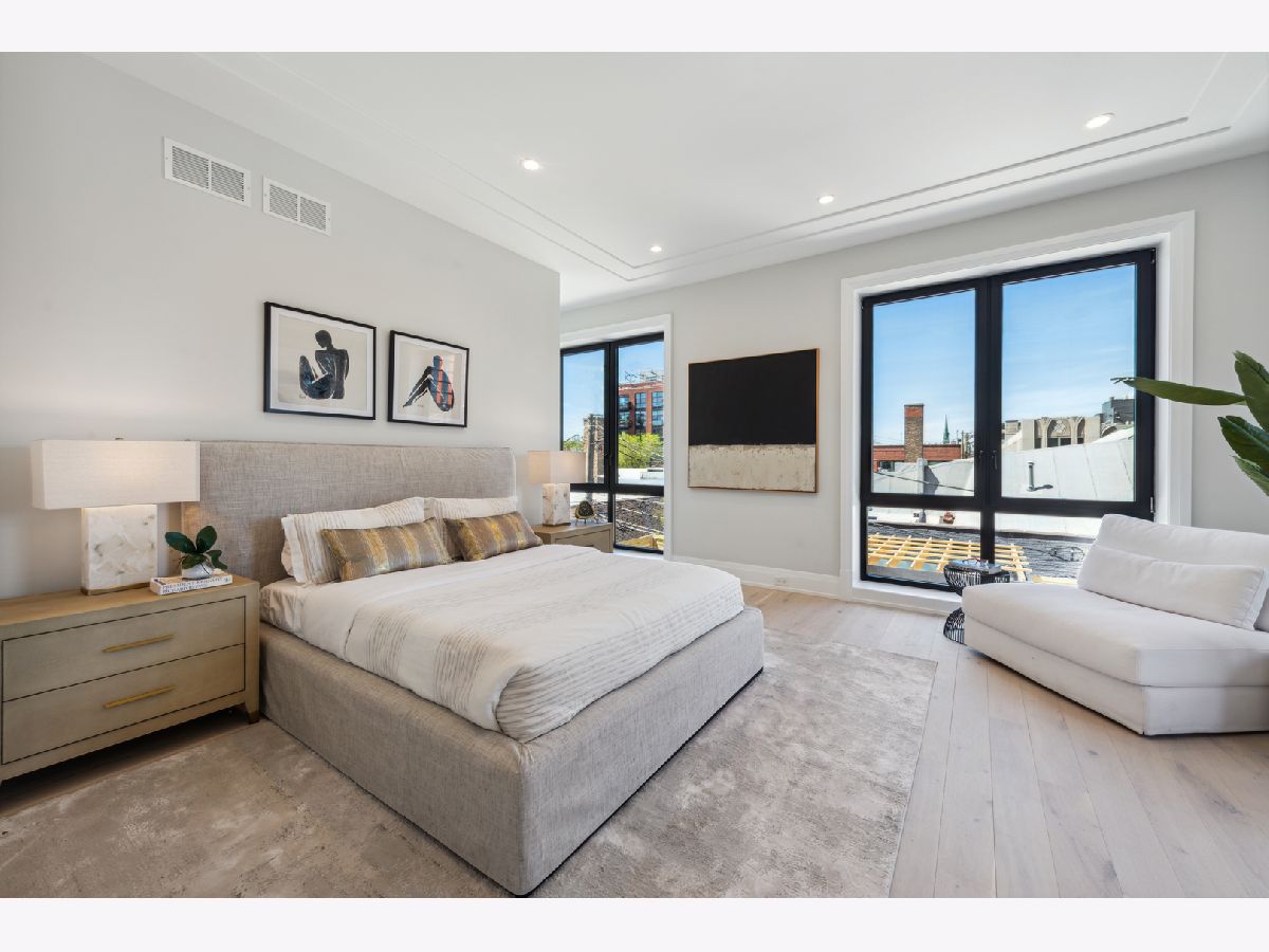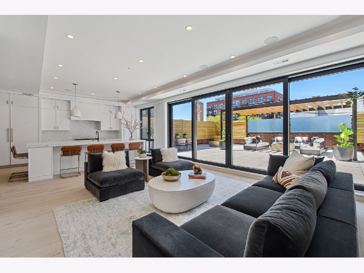 This stunning duplex-up features a massive 1200 sq. ft. walk-out terrace and an attached heated 2-car garage, all within an intimate 5-unit boutique elevator building in the heart of the West Loop. Built by the renowned PLD Homes, known for their exceptional design, timeless finishes and unmatched craftsmanship. This home offers high ceilings, floor-to-ceiling windows, wide-plank hardwood floors, and expensive millwork that create an open and airy atmosphere. The main floor spans a remarkable 35 feet wide-uncommon in any neighborhood or building! As you enter, you'll find a formal foyer leading to a spacious, well proportioned living area, with oversized sliding doors seamlessly connecting the indoor and outdoor. This is the best outdoor terrace in the city! Covered portion of the terrace, perfect for year-round grilling, a large pergola, and hookups for water, power, and speakers-ideal for entertaining or everyday living. This space flows effortlessly into the large kitchen and dining area. The chef's kitchen is a dream, featuring a massive island with plenty of seating, custom cabinetry, Thermador appliances, a herringbone backsplash, under-cabinet lighting, and custom - mitered countertops. Floor-to-ceiling windows fill the room with natural light. The dining area comfortably seats 10 and includes built-ins, a wet bar, tray ceiling with lighting, and a dedicated wine fridge column by Gaggenau. The primary bedroom is bathed in light from large windows looking over the terrace, allowing your own design of the view. Another private patio of the primary suite - perfect for a morning coffee or evening wine. The spa-quality bath boasts radiant heated floors, double vanities, an oversized mirror, sconce lighting, a rain shower with steam and bench, a separate water closet, and a soaking tub, set against a feature wall ready for your personal touch. This building is tucked away on the quiet, secluded Willard Court, just a one-block stretch. Yet, it's steps away from the vibrant shops, restaurants, dining at Randolph Street and all the convenience and entertainment that West Loop has to offer.