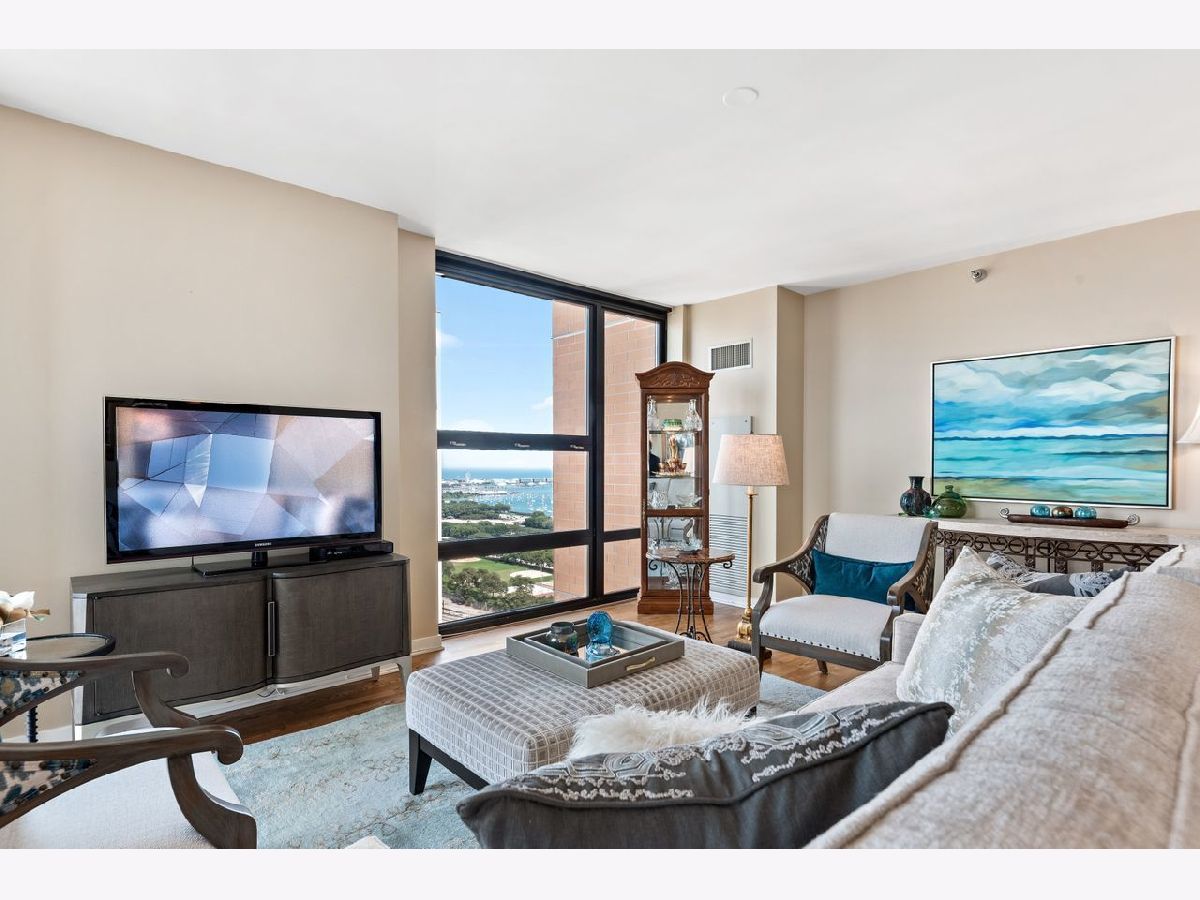 Beautiful 2 bed 2 bath "Tower Residence" at the Columbian in the heart of South Loop. This pristine & sunny high floor unit has an open floor plan, high ceilings, hardwood floors, floor to ceiling windows with stunning views of the Lake Michigan, Grant Park & Navy Pier. You can easily entertain while preparing your meals in this gourmet kitchen with upgraded high/end stainless steel appliances, granite counters or enjoy the sunset sitting on your balcony. Your enormous master suite with walk in closet & spa-like bath with luxurious walk-in shower & soaking tub is ideal for relaxation. Second bedroom is large enough for king size bed. If you like the city life, you can step outside and enjoy everything you dream of, or if you like more privacy the building offers brand new fitness center with stunning views, entertainment suite & sun deck. Other amenities of this full service building with Great Reserves, include 24 hour door staff, management on site, and for dog lovers there is a dog run. Fantastic location near: lake, park, museums, restaurants, shopping and transportation. Premium 4th floor garage parking additional $30,000.