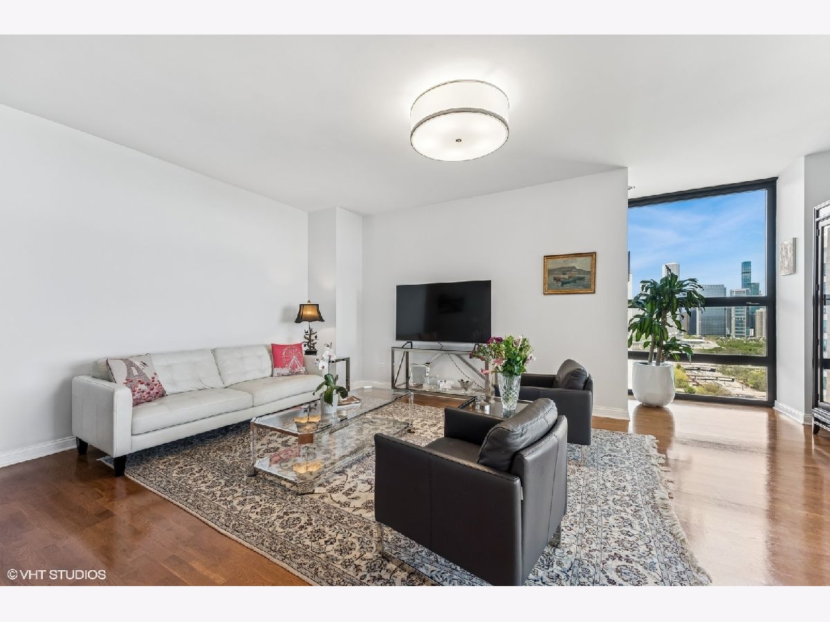 Soaring above the city on the 38th floor of The Columbian, this beautifully upgraded 3BR/2BA residence features over $100K in high-end upgrades and offers over 1,900sf of refined living space with panoramic views of Lake Michigan, Grant Park, Museum Campus, and Chicago's iconic skyline from a northeast-facing balcony. The home features 10' ceilings, hardwood flooring, and ample storage throughout, with a spacious, open-concept layout designed for both everyday living and entertaining. The gourmet kitchen includes granite countertops, Subzero, and Bosch appliances, and opens to a newly designed, custom-built pantry with added counters and cabinetry. The luxurious primary suite boasts a newly renovated walk-in closet and spa-caliber bath featuring a custom walk-in shower with extra-long shower doors, a bench, smart toilet, mirrored lit medicine cabinets, and a custom linen closet. The generously sized second and third bedrooms offer stunning lake and city views. A fully renovated hall bathroom features premium finishes, a tub/shower combo, smart toilet, and backlit mirrored medicine cabinet. Additional highlights include a renovated laundry room with side-by-side front-loading washer/dryer, Lightology lighting, new foyer tile, and upgraded closet doors with Elfa closet systems. The Columbian offers full-service living with a door person, package receiving, fitness center, resident lounge, dog run, and a patio with grill. Located at the southwest corner of Grant Park, you're steps from the lakefront trail, and walkable to top dining, Mag mile, shopping, Chicago River, entertainment, and more! Enjoy easy access to the Loop, CTA, and expressways. Close to top schools including Jones College Prep, St. Ignatius, British School, OSM, UIC, and Lab School, with quick commutes to top medical facilities (UChicago Medicine, Northwestern, and Rush). 2 deeded parking spaces available, $35K each.