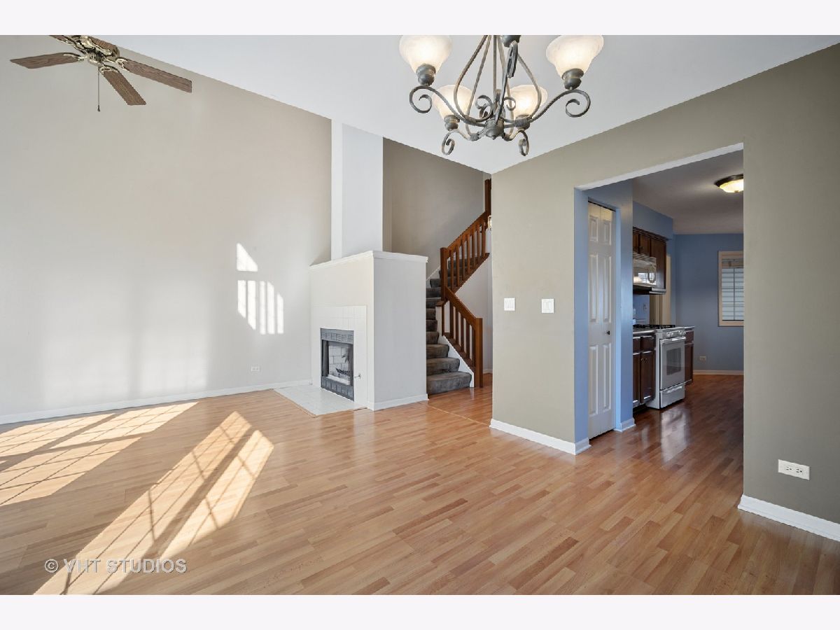 Open concept, sundrenched 2 bedroom townhome with a loft quietly nestled away in south Palatine. This gem's 1st floor layout includes an eat-in, fully-applianced kitchen, wood laminate flooring, powder room, separate laundry area and walkout patio from dining area. Private patio overlooks serene exterior space that is professionally maintained and useable to entertain in these gorgeous summer months. Move through the home toward the staircase and on your way to the second level you will fall in love with the uniquely designed fireplace as the centerpiece of the main level. Peek up the staircase and take a gaze into your loft space through your vaulted living area which is another unique design touch for this home. Slowly move past the second bedroom into the master oasis complete with his and hers closets, a master bath and expansive ceilings. The master bath boasts a soaker tub, separate shower and skylight allowing the natural light to peer through this one of a kind spectacle of a home. Home is located within minutes of I-90, I-355, Woodfield mall and all Schaumburg local faire. Enjoy close proximity to any and everything you could possibly desire. This showstopper will not last long so schedule your appointment today!