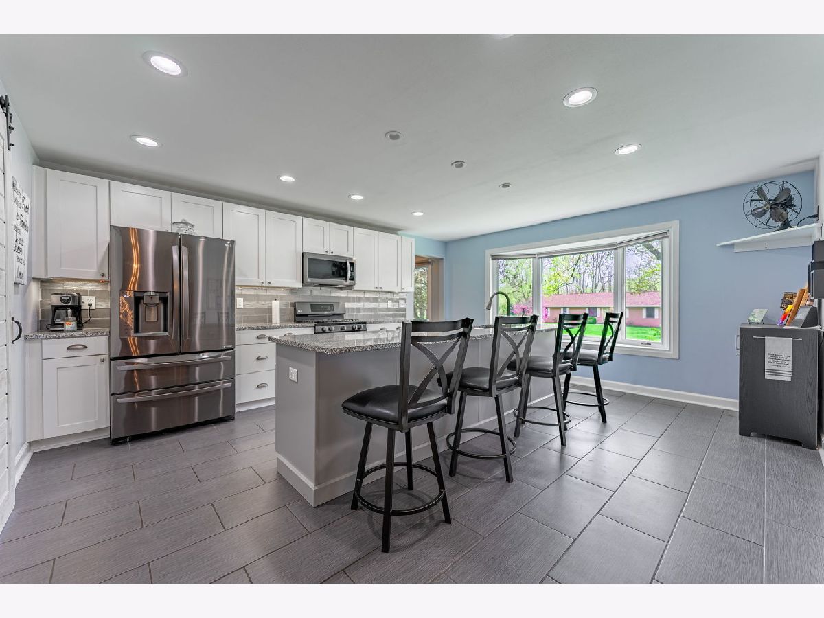 This beautiful Ranch home in the Ledges offers 2600 sf of living space & extra detached garage. Gourmet kitchen recently remodeled with granite, soft close doors/drawers, tile back splash, large eating/gathering area, stainless appliances, new flooring, and pantry/laundry room. Master bedroom with new carpet, new bath vanity and tile shower. LR with vaulted ceiling, hardwood floors, fresh paint, and brick FP open to beautiful 4 season room. The back yard oasis consists or new deck and patio, mature trees, and landscaping. Finished LL in 2023 with family room, rec area with counter-top, cabinets, egress window and plenty of storage. A few major highlights of this home: All new doors and trim 2020, New furnace 2015, roof and gutter guard 2021, deck and patio 2022, new carpet 2020, egress window 2023, new garage heater 2021, invisible dog fence. Great location, close to I-90, mature neighborhood!
