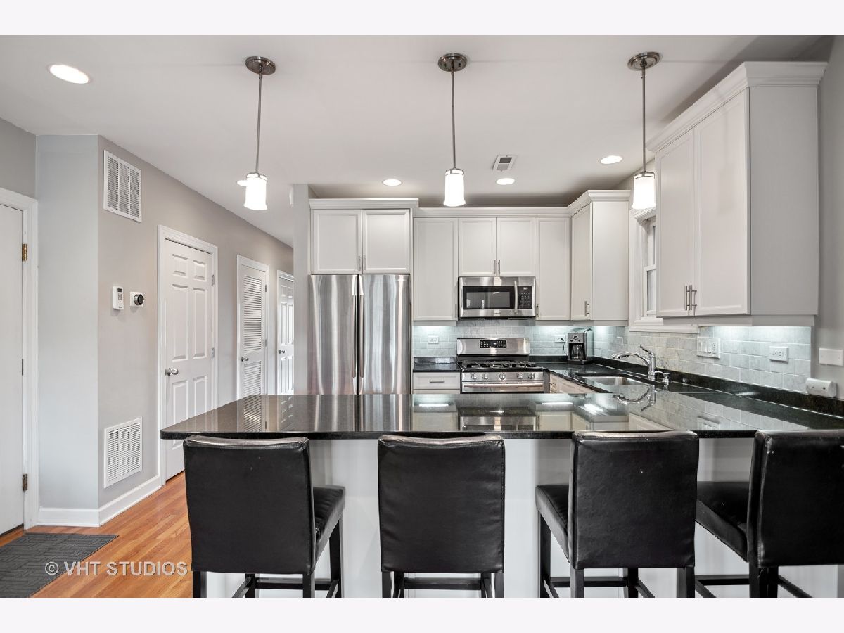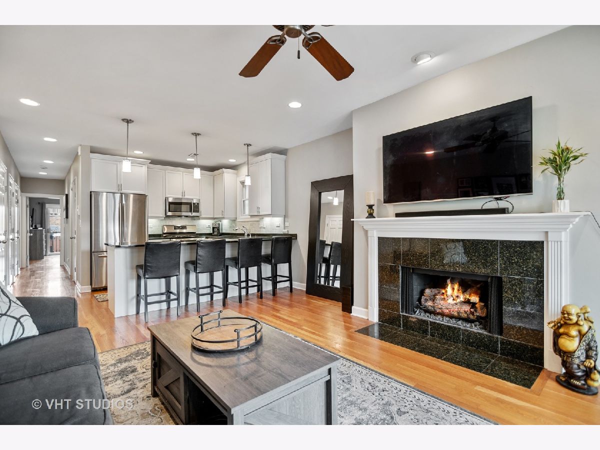 Live in the heart of it all! Stunning updated 2 bedroom, 2 bathroom condo in a prime Lakeview location! Open floorplan offers a spacious living/dining space with w/b gas fireplace. The large breakfast bar provides tons of seating, granite counters and the kitchen has been updated with stainless steel appliances, marble backsplash, and white cabinets. The home also includes hardwood floors throughout, organized closets, a primary bath with double vanity, second full bathroom, washer/dryer in unit and garage parking included! Large rear deck off of the unit and shared garage roof deck makes this the perfect condo for entertaining or enjoying the summer sun! Walk to everything including the El, Southport Corridor, East/West Lakeview, restaurants, shops, and don't forget Wrigley Field!
