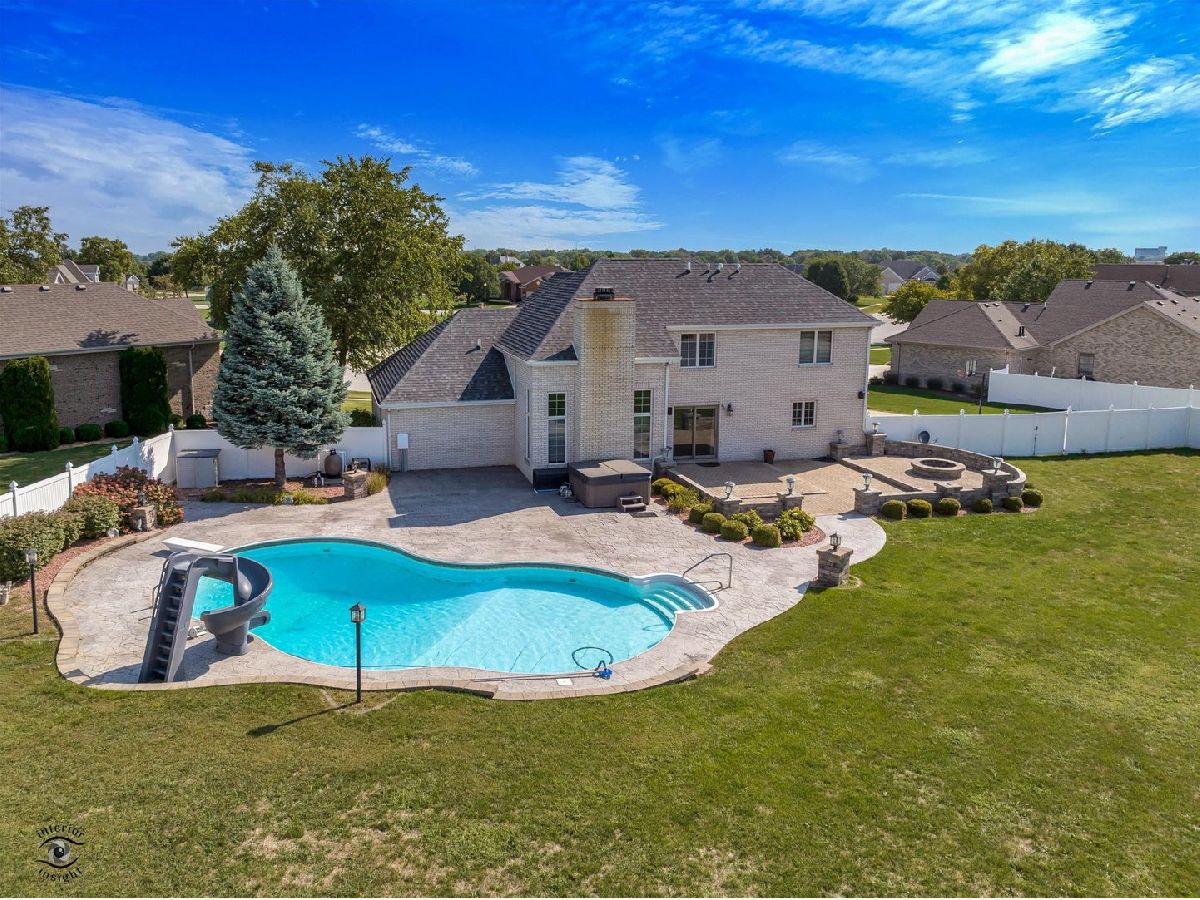 Custom built all brick home in Bordeaux Estates featuring 4 bedrooms, 2.5 bathrooms, huge fenced in yard with inground swimming pool! Welcome home to this freshly painted 2 story home featuring cathedral ceilings in the family room with a fireplace. First floor master bedroom has large bathroom with jacuzzi tub, separate shower, dual sinks and a custom walk-in closet. Formal dining room has hardwood floors. Kitchen has an open layout with many cabinets. Upstairs features 3 bedrooms and a bonus room with new flooring for storage, play room, or an office! Still time to get outside and enjoy your massive fenced in back yard with a custom brick patio, built-in fire pit, and inground pool with slide and diving board! Call today for your private showing!
