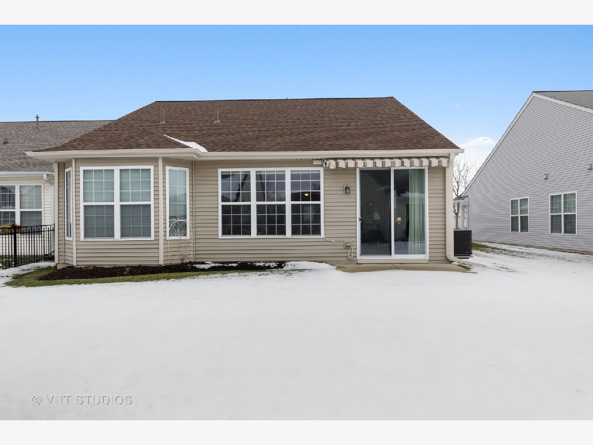 This sought after James model in Del Webb Sun City is very open, spacious, and full of light the moment you walk in. Neutral colors and brand new custom soft-close blinds in every room. Large kitchen w/1 year new SS appliances and a spacious windowed breakfast nook. Huge open family room/dining room leads out to a cement patio featuring an upgraded "SunSetter" retractable awning w/remote and wind safety sensor. The master bedroom includes a tray ceiling w/fan & light, Bay window, and a huge triple-sided walk-in closet! The large master bathroom features a double sink, Broan heating fan, and a two seat walk-in shower w/support rails. Enjoy the new sidewalk and NEW ROOF in 2019! Insulated garage! Mudroom w/utility sink and full size washer & dryer, located right off the garage. Conveniently located in the Midwest's premier 55+ resort type community w/indoor & outdoor pools, clubhouse w/activities, golf, tennis, fitness centers, walking trails, wood-working shop, restaurants, activities and more!