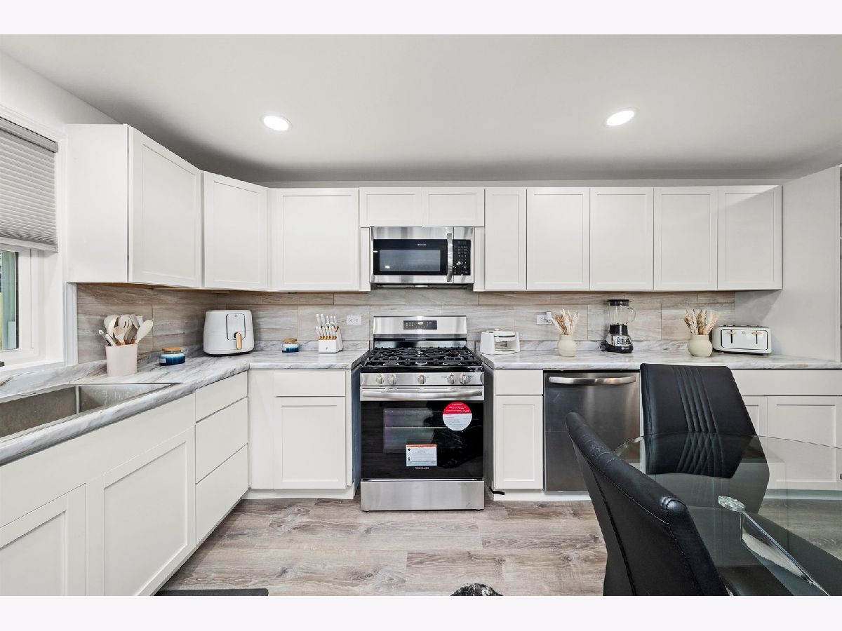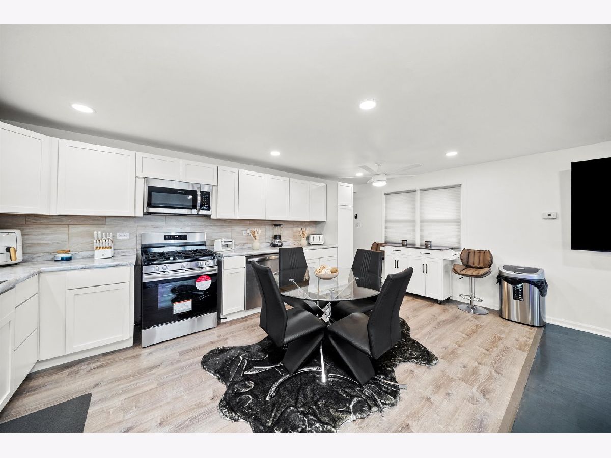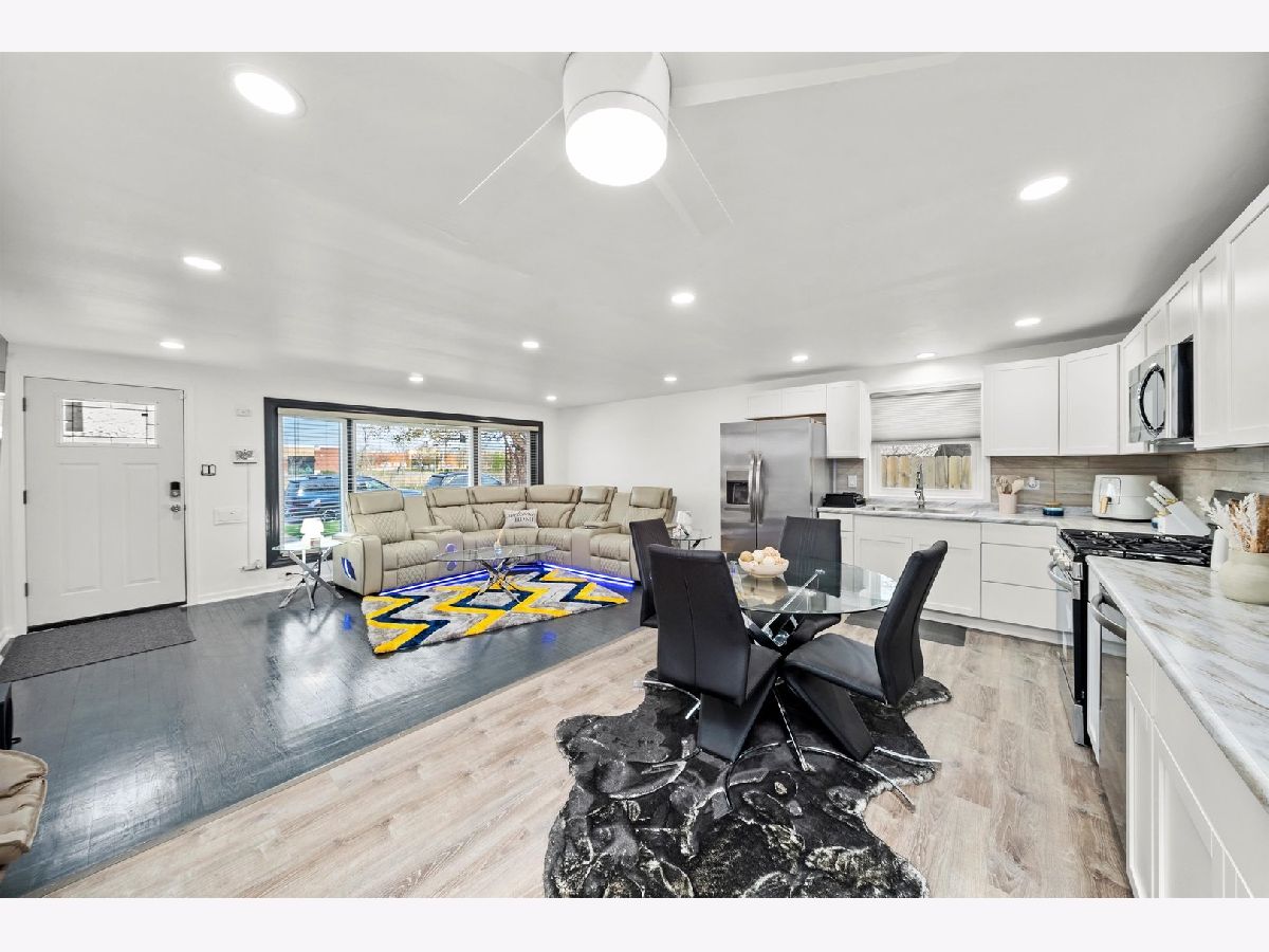 This beautifully updated all-brick split-level home is ideally located within walking distance to the Red Line, local shops, and expressway access. The home features a spacious, sun-filled living room with refinished hardwood floors and a custom bay window. The brand-new kitchen offers stainless steel appliances, and an eat-in area with new laminate wood floors. Upstairs are three generously sized bedrooms with ample closet space and a full bath with a jacuzzi tub. The fully finished lower level includes a family room and a fourth bedroom with an en-suite bathroom, perfect for a master suite . Additional updates include brand-new windows throughout, new furnace, hot water tank, central air unit, washer and dryer, new concrete surrounding the home, treated wood fence, new entry doors and screens, and updated lighting throughout. This move-in ready home offers space, comfort, and convenience in a prime location.