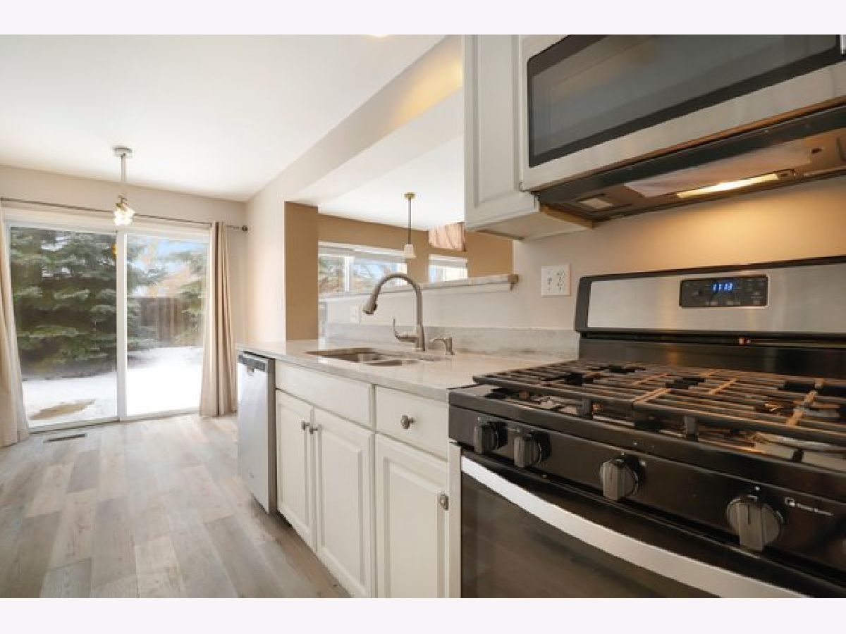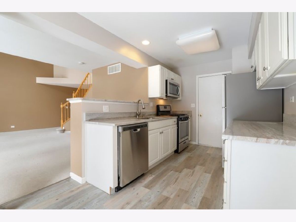 This stunning 3 bedroom/ 2.5 bathroom townhome in Elk Grove Village boasts vaulted ceilings, a spacious floor plan, and recent modern updates! The living room is open and has large windows providing plenty of natural light. Cozy fireplace great for Chicago winters! The recently updated kitchen has new stainless steel appliances, new granite countertops, a double-sided steel sink, modern white cabinetry, and new flooring. Half bath located on the main floor with the common areas excellent for guests! Upstairs has three large bedrooms. Convenient in-unit 2nd-floor laundry. The primary bedroom is spacious and features a walk-in closet nice for an extensive wardrobe, double vanity, and high ceilings. Wonderful outdoor space for entertaining! A well-maintained community that is close to local shops, restaurants, parks! Busse Woods Preserve is minutes away in addition to easy access to major interstate highways. Less than 3 miles to Metra Station, 1.5 miles to AMITA Health Alexian Brothers Medical Center, J B Conant High School!! This home has so much to offer, make your appointment today!