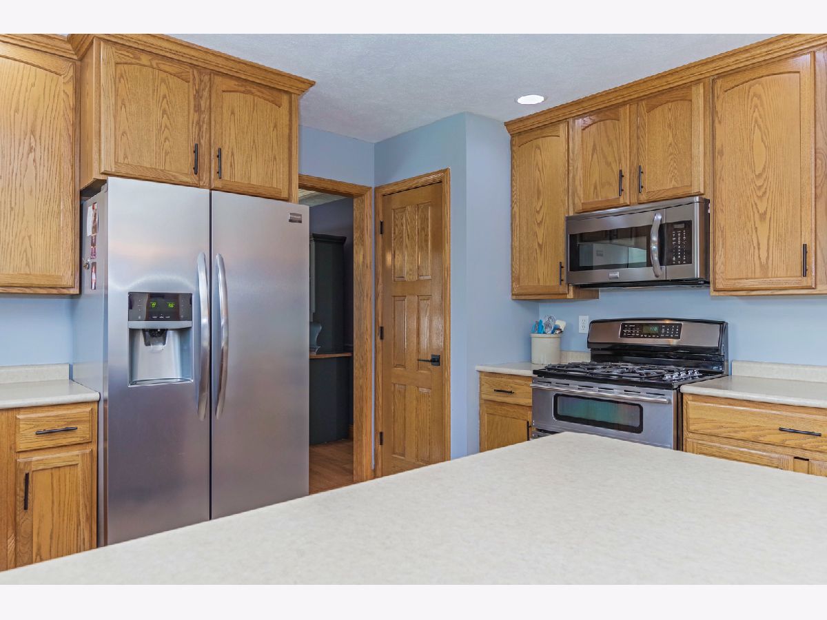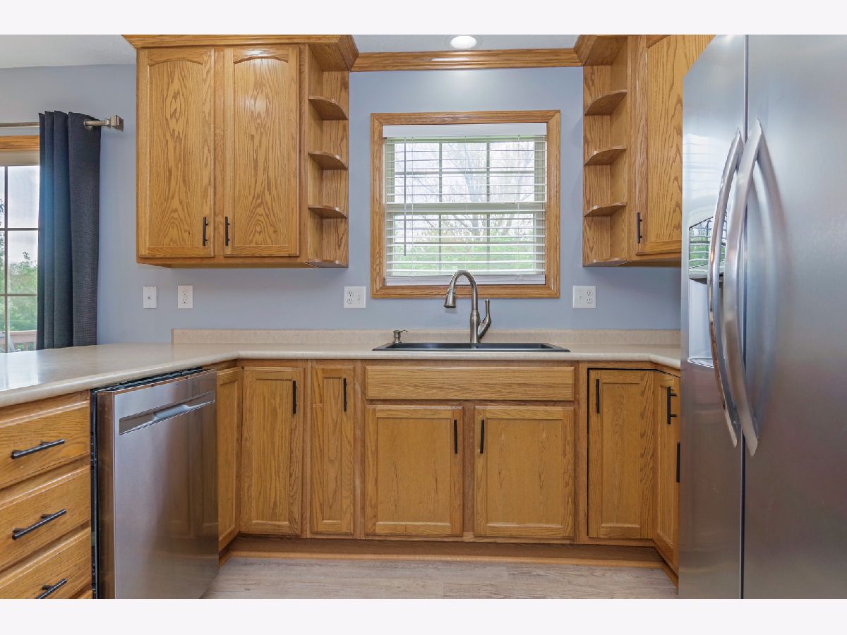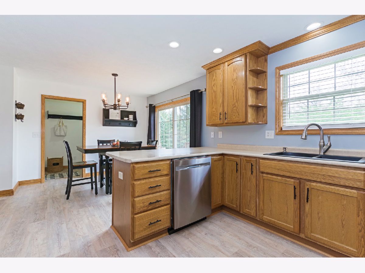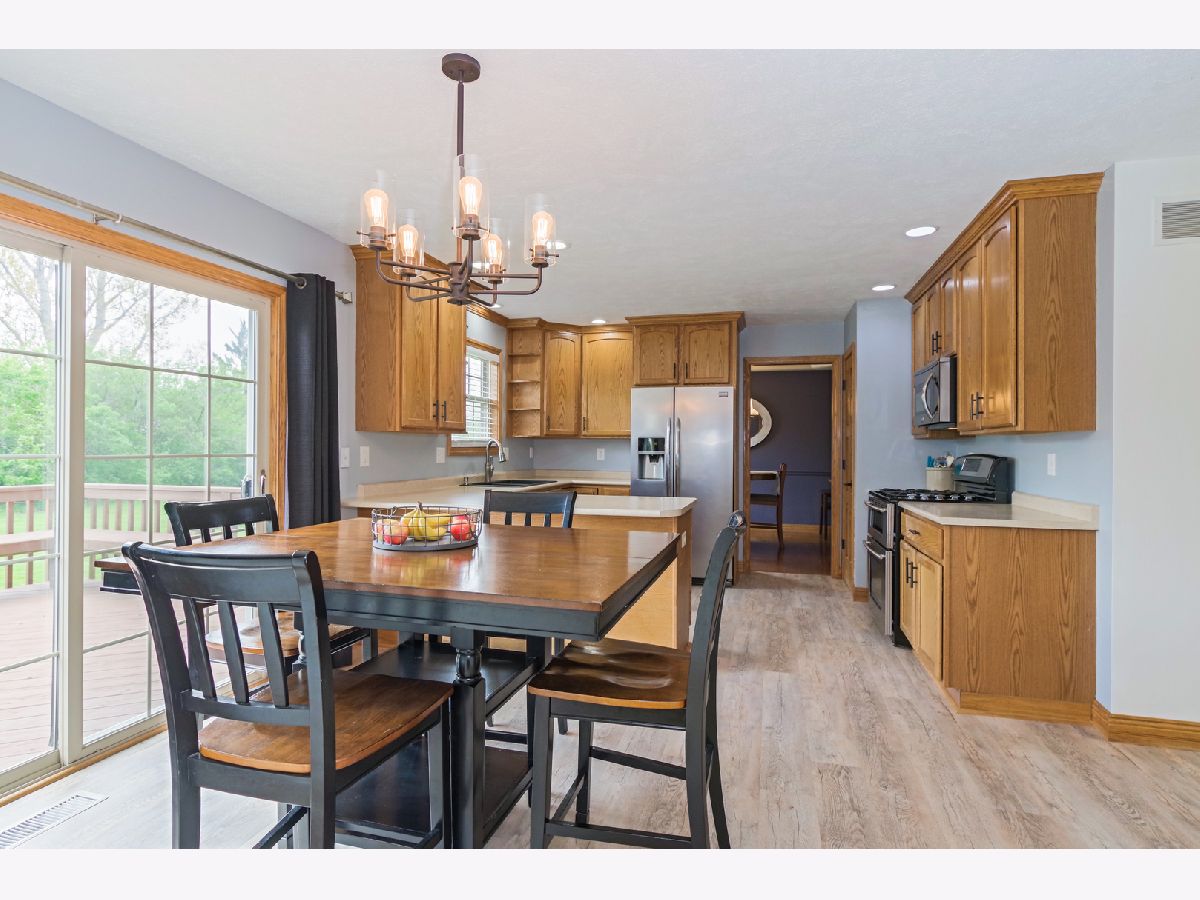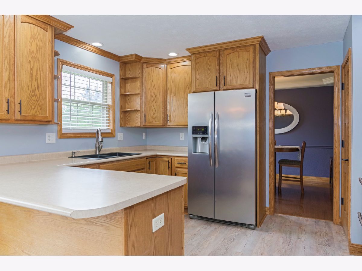 Beautiful, Immaculate 4 Bedroom home! Brand new LVP flooring in kitchen & laundry room. Home has large living room and dining room with hardwood floors. Very large eat-in kitchen. All stainless steel appliances and washer dryer stay. Extra fridge & deep freeze in basement stay & fridge in garage stays. Garage is heated and has extra space for storage w/ shelves & a walk-out door to the backyard. Huge master bedroom w/ vaulted ceiling, walk-in closet w/ hardwood floors, one new window, & new room darkening blinds. Master bath has a whirlpool tub & separate shower. Basement is finished w/ a bedroom that has an egress window and another huge room (currently being used as a bedroom) & a half bath. Large, private backyard w/ a patio area & a deck that was recently painted. Newer roof-only 3 years old! Furniture is negotiable. Move right in!