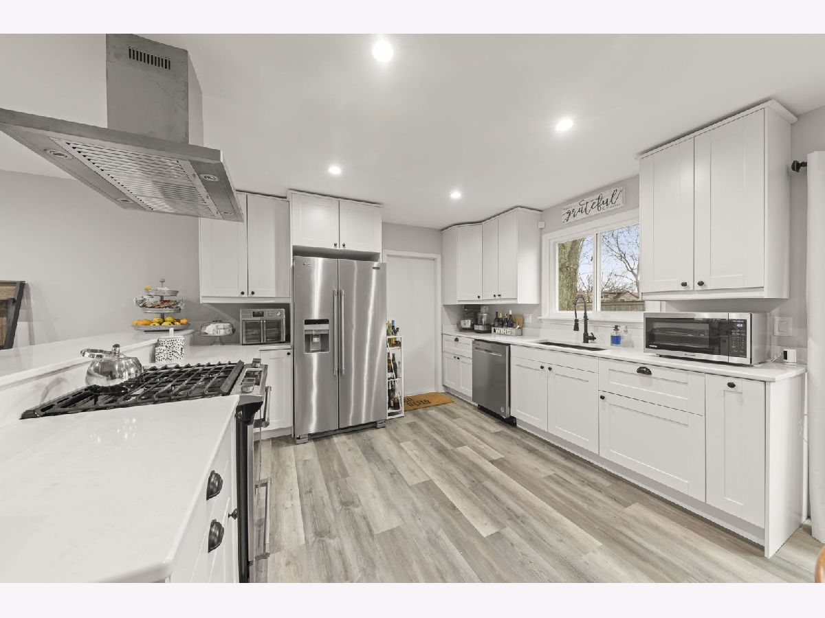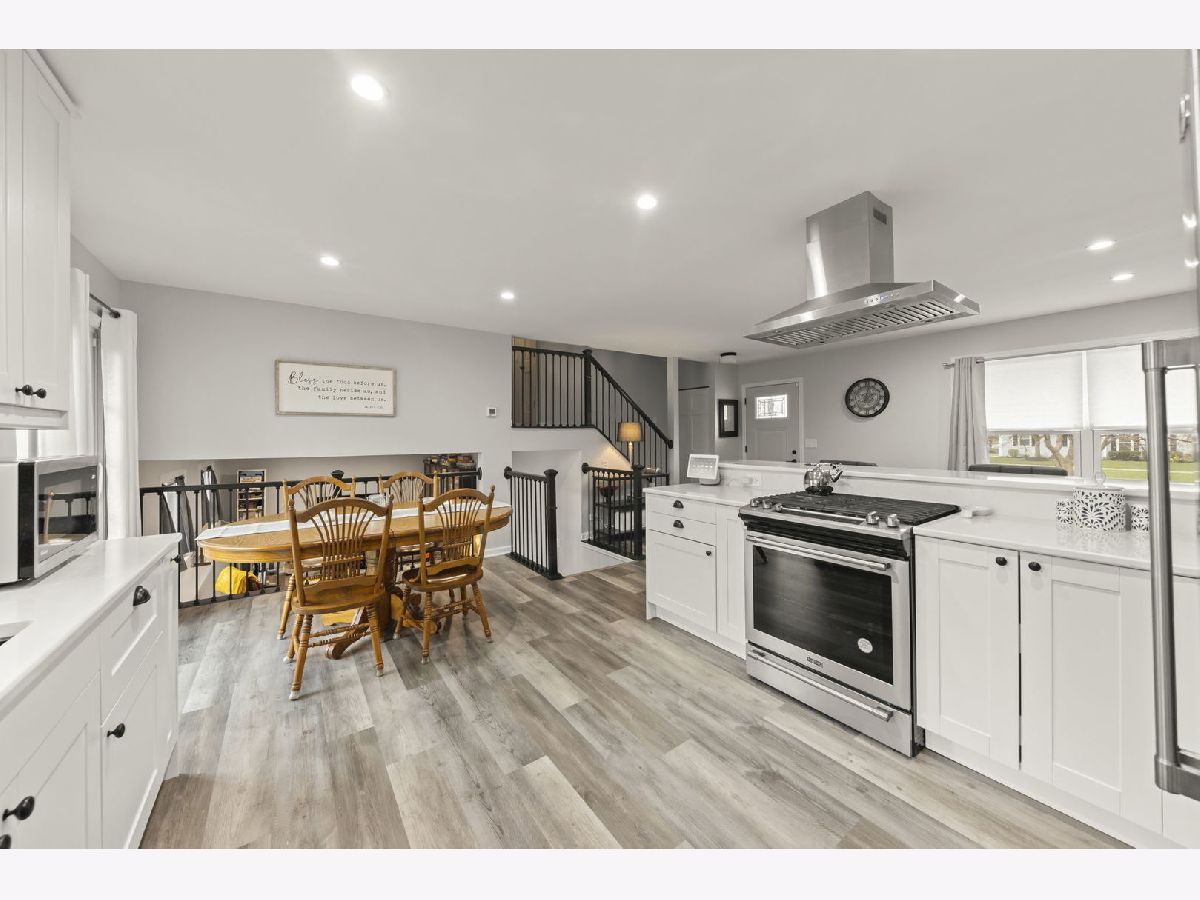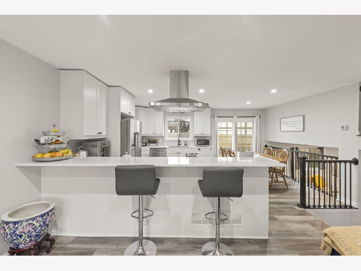 Move-in ready just minutes west of downtown Naperville! This Will-O-Way residence was beautifully updated and transformed in 2022. Upon entering you'll notice the modern staircase, foyer closet, luxury vinyl plank flooring, new white baseboards and interior doors, as well as the recessed and dimmable lighting in the common areas. The stunning open concept kitchen features white cabinetry with soft-close drawers, quartz countertops, stainless steel appliances & vent hood, and an eating area with a sliding door to the yard. Upstairs, the hallway features a convenient linen closet, primary bedroom with double entry doors, a hall bathroom with striking tile floor, shower/tub combo with white subway tile and updated lighting, and 2 additional bedrooms - all bedrooms have ceiling fans with lights. The lower level offers great entertaining and recreation space, an additional full renovated bathroom with tiled shower, and a laundry room. Additional notable updates from 2022 include: Windows, Front Door, Garage Door. Furnace & AC replaced by prior owner in 2018. Highly acclaimed DISTRICT 203 schools: Elmwood, Lincoln Jr High, and Naperville Central HS. Embrace this incredible location near parks, the DuPage River, downtown Naperville, shops, restaurants, & more!