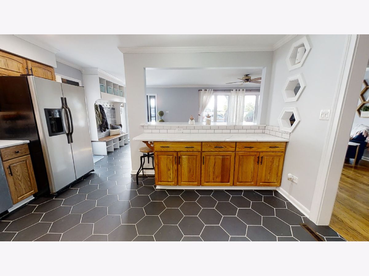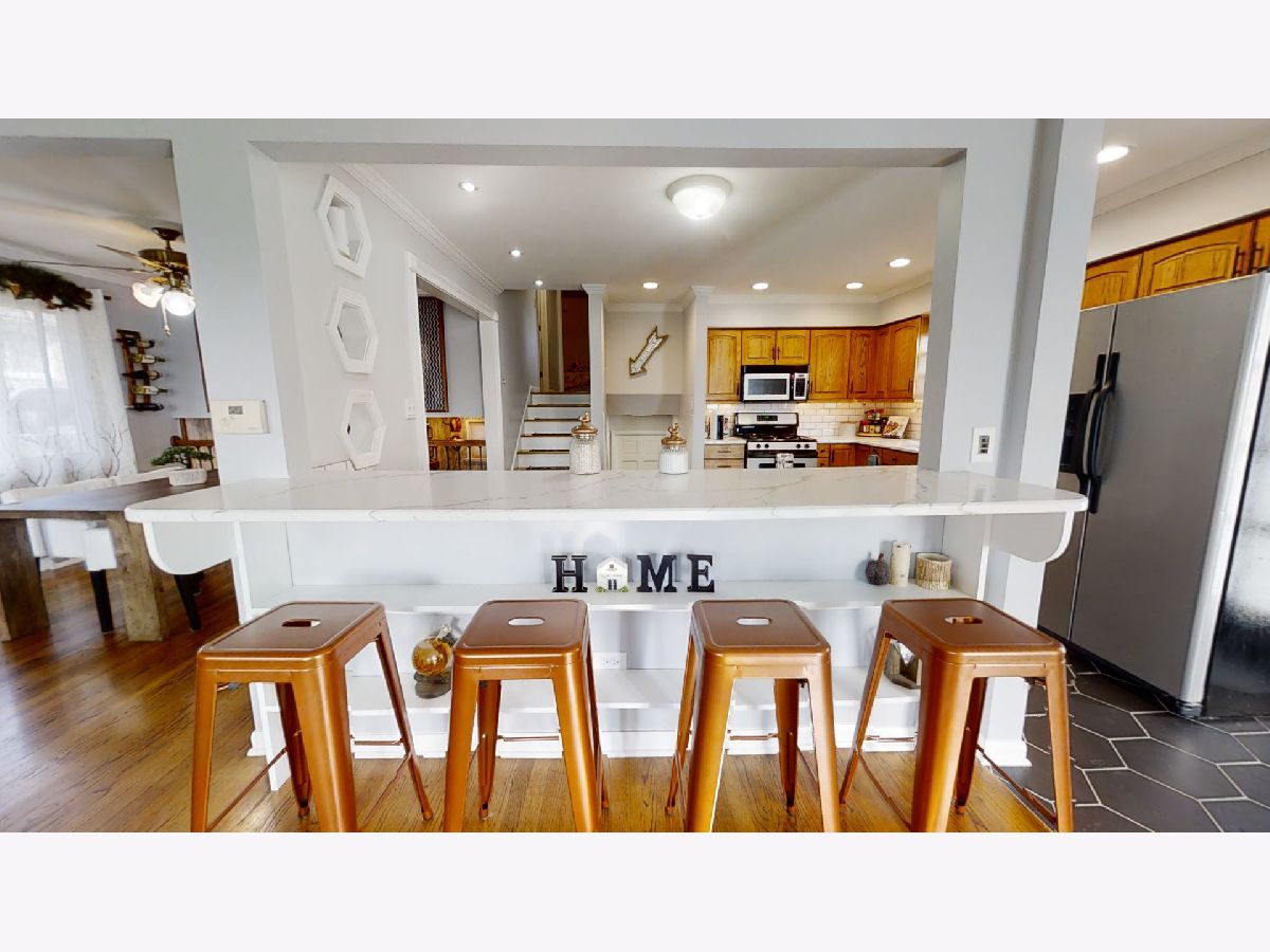 Beautifully maintained split-level - owners have invested in high-end and quality upgrades. Main level features open concept kitchen (updated in 2020) with new entry & kitchen flooring, with custom quartz counters featuring a designer breakfast bar and ceramic subway tile backsplash, top of line stainless appliances (dishwasher 2 yrs old), formal dining room and comfortable living area. Upper level has three spacious bedrooms with ample closet space - hardwood floors - and remod customized bath. Lower level features delightful family room with wood-burning fireplace and new tile surround, upgraded flooring and neutral decor. Adjacent to family room is a full bath and laundry/utility room. Charm and luxury throughout at an affordable price. Lovely landscaped exterior. Wide side drive for extra guest parking leads to oversized detached garage. Plenty of green space and a custom composite deck designed and built in 2017. Brand new entry doors with security locks (July, 2020). Extra updated features include...40 gallon water tank in 2019, new interior railings in 2017, family room remodel in 2017, new recessed lighting in kitchen, newer windows throughout, solid wood panel doors on upper level, crown molding in kitchen, professionally painted and decorated in June, 2020, front entry "cubbies" for easy storage, new kitchen cabinet hardware, some newer exterior concrete, gas line installed from house to garage to enable heated garage, and more!!! Ideal Alsip location near all amenities - easy access to I-294, shopping, medical facilities, excellent schools, etc. This truly is a lovely home - owners have enjoyed and given great thought to the quality of the upgrades. Are you the fortunate new owners??? Thanks for your interest...