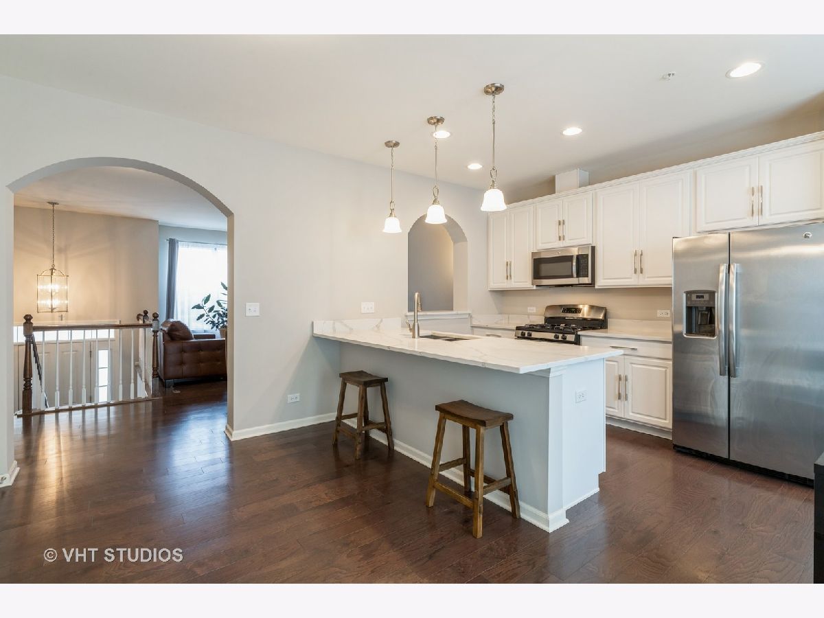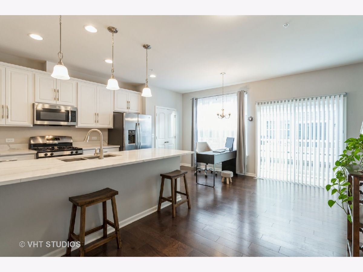 Wonderful newer town house Featuring dual master suites with ample closet space. Beautiful 5" chocolate oak flooring on entire main floor and oak rails with painted white spindles at front staircase. Living room with Granite fireplace . Kitchen includes stainless steel appliances, upgraded white cabinets and quarts counter tops. Custom painted through out! 2nd floor washer dryer. 2-c attached garage. Walking distance to Des Plaines Metra Train Station. Quick easy access to Downtown Chicago, O'Hare Airport & Major Expressways. Conveniently Located near Fitness Facilities, Dog Parks & Great Restaurants.