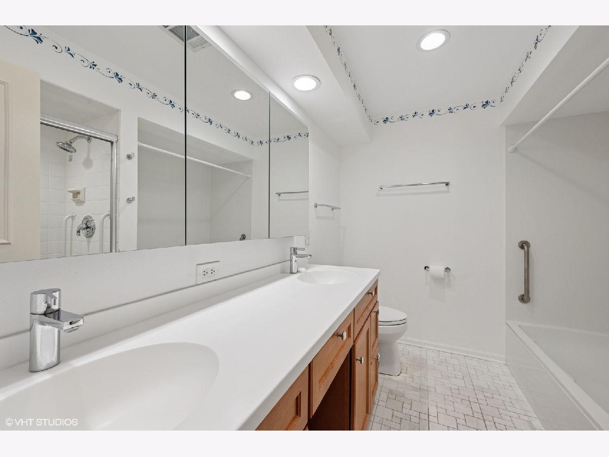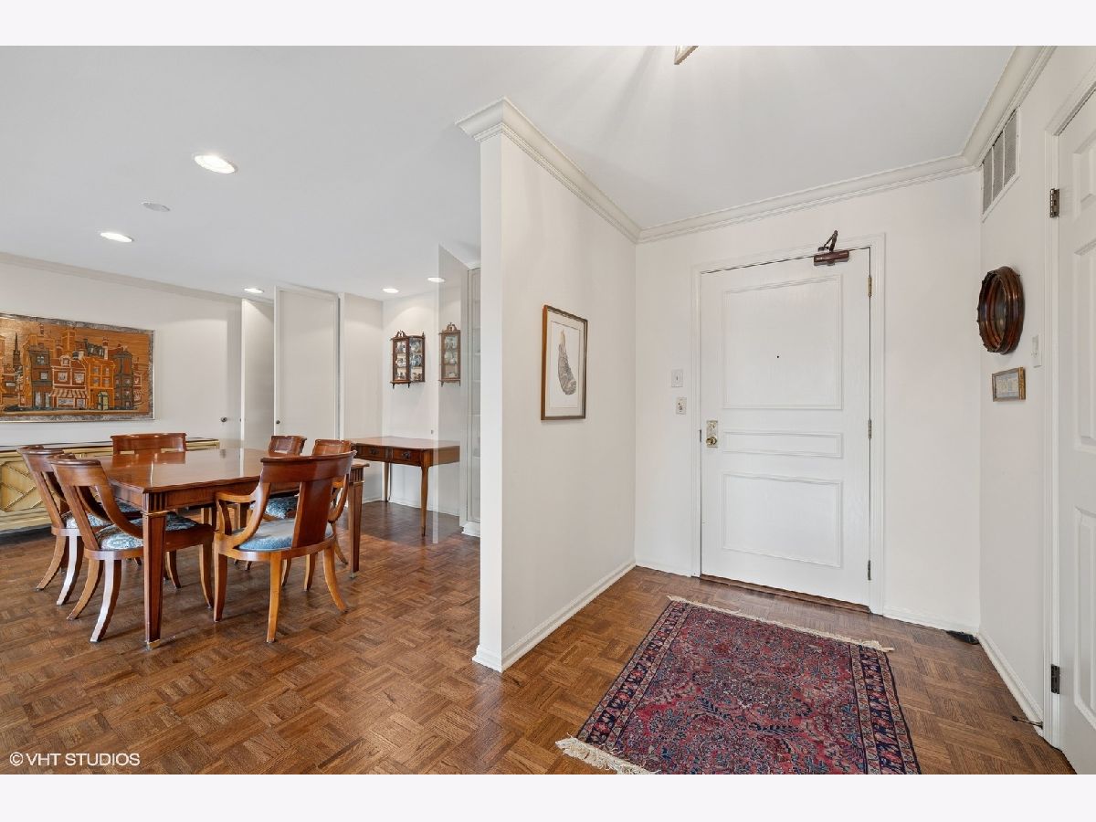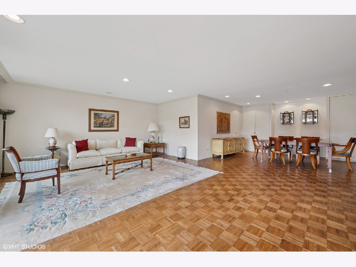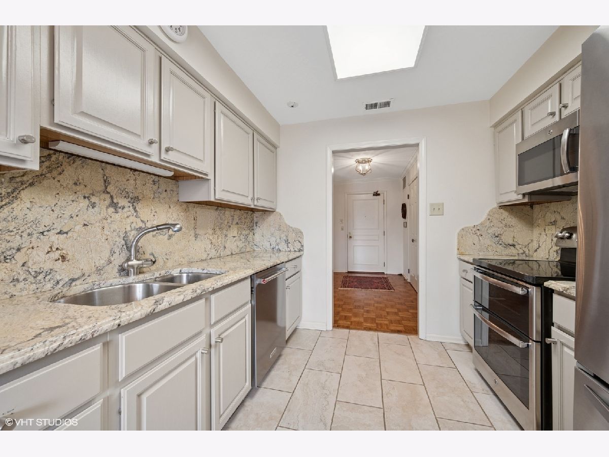 Condo living at its finest! This beautifully updated 2,420 sq ft residence offers exceptional space, comfort, and style. The gourmet kitchen features granite countertops, a matching backsplash, and seamlessly opens to the inviting family room with fireplace and private balcony-perfect for relaxing or entertaining. The gracious living and dining rooms are ideal for hosting, while the elegant primary suite boasts a cozy sitting area, two generous walk-in closets, and a luxurious bath with soaking tub and separate shower. Additional highlights include custom built-ins, parquet floors, new windows, and an in-unit laundry room with abundant storage. A rare find-two heated garage parking spaces are included! Don't miss this spacious and sophisticated home.