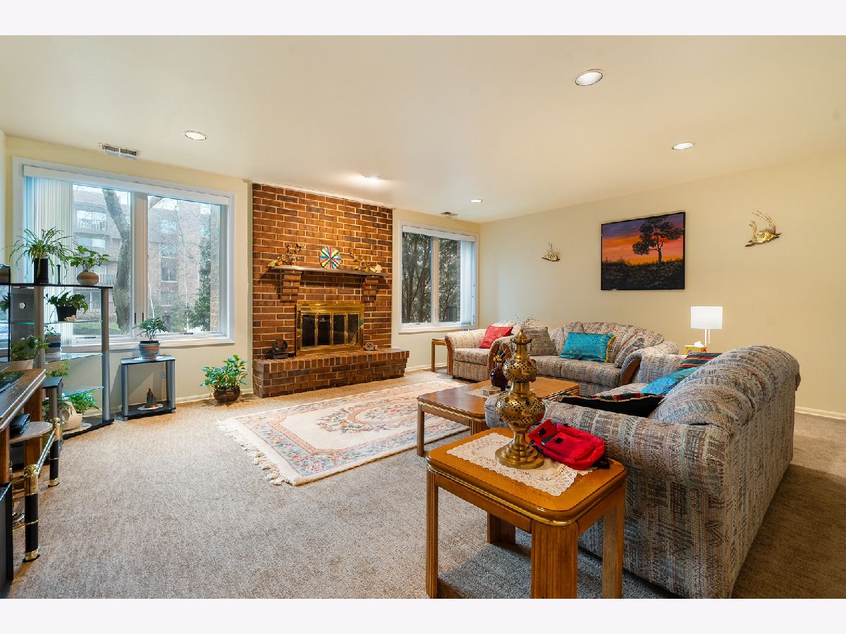 As this year journeys toward the warm summer days, now is the time to buy your new home that offers you Ideal location, affordable, a package and more! This newly updated, well-maintained and clean home has spacious two bedrooms; new appliances; 1600 SF of living space (plus a large balcony with garden view); freshly painted and carpeted with non-toxic (zero VOC) materials; two walk-in closets; two fully updated walk-in baths with safety features and bathing chair; tiled floors, new faucets and updated vanities with mirrored cabinets that offer you ease of maintenance and spa like comfort. Three good size storages (two inside the unit and one outside, close to the Unit, provide you with ample space to store away your belongings. The Washing machine, cooking range, and microwave are only a few months old). HVAC System is professionally and regularly cleaned and tuned up, including all ducts and vents cleaning. This effectively sound proofed Unit has newer windows with privacy blinds. The uniquely designed, spacious MBR has a seating area for relaxing or using it as a tv nook. Two Sliding doors let you step out to your Balcony from bedroom and kitchen. The eat-in kitchen has loads of cabinets, drawers and two pantries. Pleasingly expansive and open concept living room and dining room is perfect for gatherings or leisure use while enjoying the warmth of its gas log fireplace. (Fireplace chimney is professionally cleaned up and has a brand-new wooden shelf) This versatile home is ideally located in every sense. Everything you need in life are nearby e.g. many grocery stores, an array of restaurants offering international and domestic flavors; two urgent care facilities and hospitals, and pharmacies; banks; shopping centers; professional services; post office and more. For commuters, the nearby roadways (294/94, 41, 43, 68); plus train and bus systems offer a choice of options for connecting with Chicago and surrounding areas. The nearby movie theater, Botanical Garden and Ravinia are perfect for your outings or entertainment. The Condo Complex also provides you with many amenities such as: a swimming pool, tennis court, community room, lobby and exercise room. An elevator and heated garage with your own parking spot are there for ease and comfort living. There is also ample outside parking space for your guests and visitors