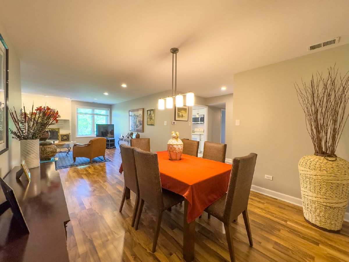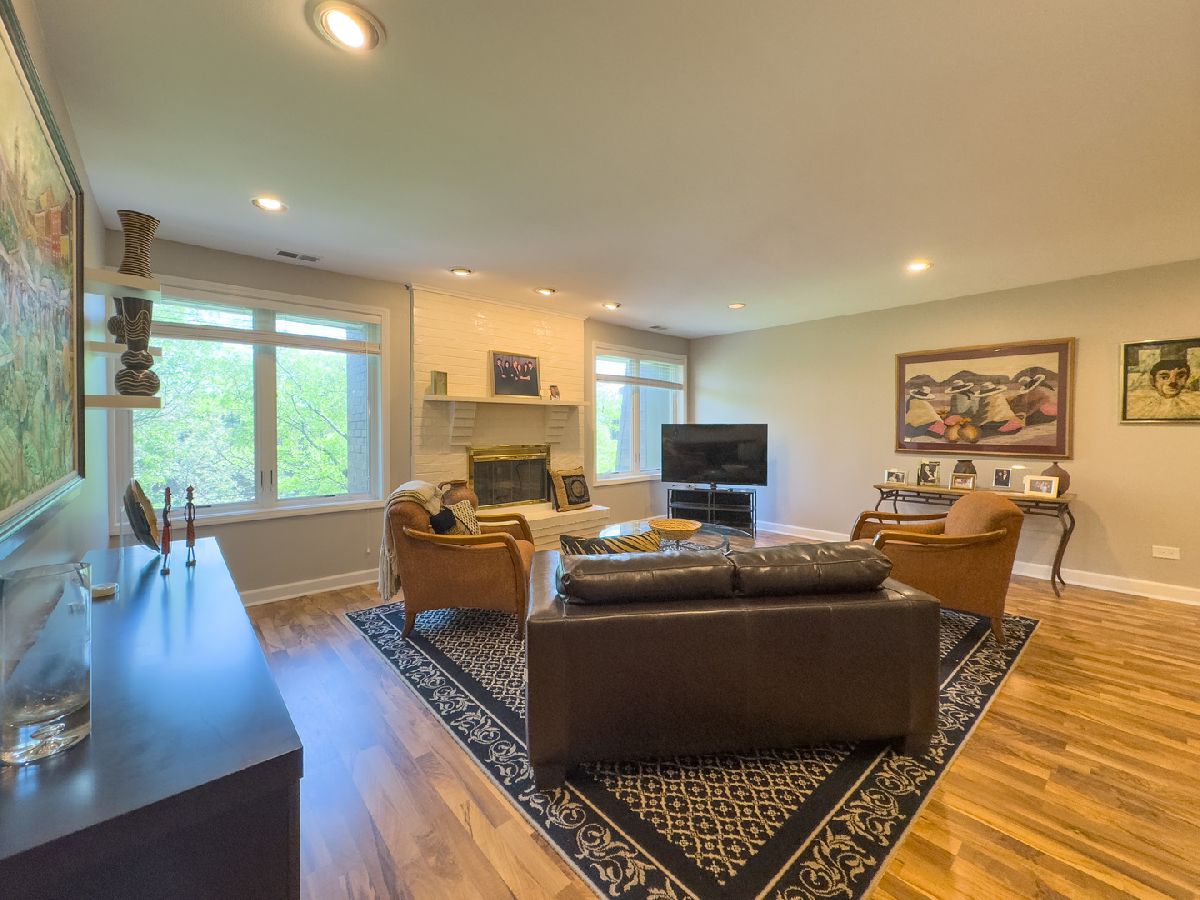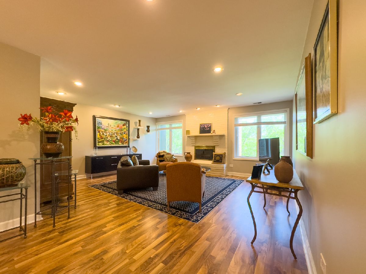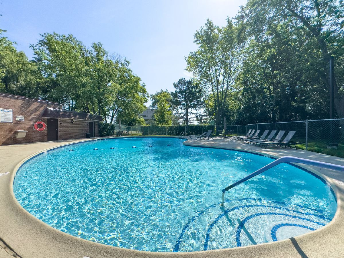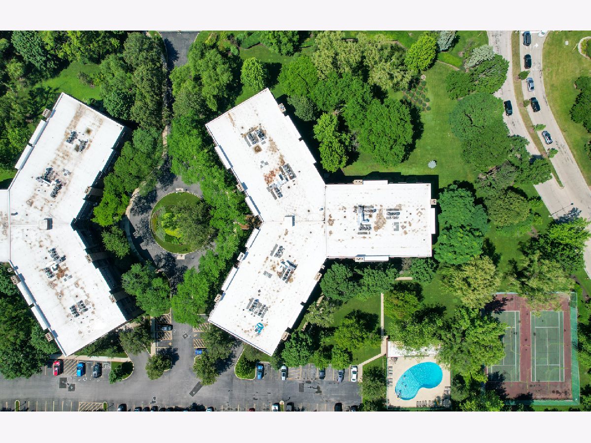Welcome to this beautifully maintained 2-bedroom, 2-bath top-floor unit overlooking a serene courtyard with peaceful treetop views. This spacious home offers thoughtful features, abundant storage, and access to an impressive list of amenities-all in a prime location near shopping, dining, expressways, and entertainment. Enjoy unmatched privacy and quiet living-this unit shares no common walls with neighbors on either side, and being on the top floor, there are no neighbors above. That means no disturbances and ultimate peace and quiet. Step inside to find new flooring, recessed can lighting throughout, and a generously sized living and dining area featuring a cozy gas-log fireplace, perfect for relaxing or entertaining. The eat-in kitchen includes two pantries, ample cabinet and drawer space, and opens directly to a huge balcony. The second bedroom and kitchen both offer sliding glass doors that lead to the balcony, creating a seamless indoor-outdoor living experience. The primary suite offers a generous layout with a sitting area, two large walk-in closets, and a private bath featuring updated shower tile and fixtures, refreshed bathroom cabinets, and spa-like comfort. The second bedroom, currently used as an office, can easily be converted back to a traditional bedroom, offering flexibility for your lifestyle. Additional conveniences include in-unit laundry, three storage areas (two inside the unit and one nearby), and newer windows with privacy blinds. The HVAC system and ductwork have been professionally cleaned and maintained for optimal comfort and air quality. Residents enjoy resort-style amenities including a beautiful outdoor pool, tennis court, a well-appointed exercise room with its own private bathroom, sauna, and library, and a community/party room that also features its own private bathroom. You'll also find a welcoming lobby and plenty of spaces to relax or entertain. A heated garage with a dedicated parking spot, elevator access, and ample guest parking ensure daily ease and comfort. Ideally located near everything you need-grocery stores, restaurants, hospitals, shopping centers, post office, and major highways (294, 94, 41, 43, 68)-plus easy access to public transportation. Local attractions like the Botanic Garden, Ravinia, and movie theaters offer endless entertainment just minutes away. This is more than a home-it's a lifestyle. Come see it today!