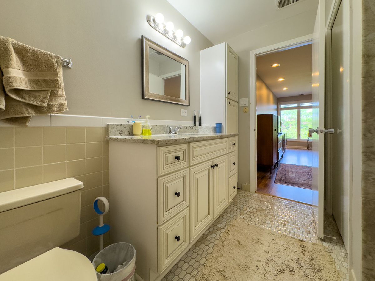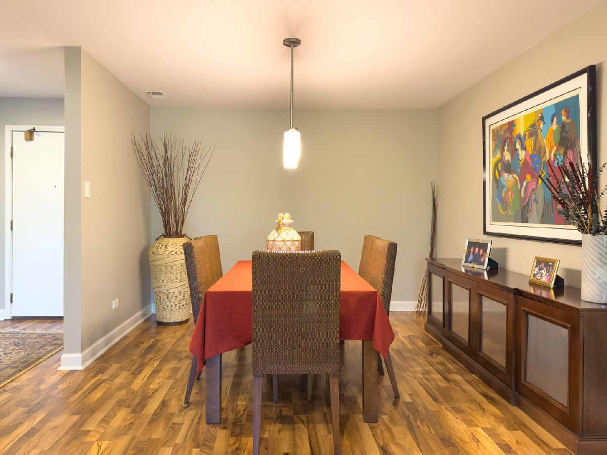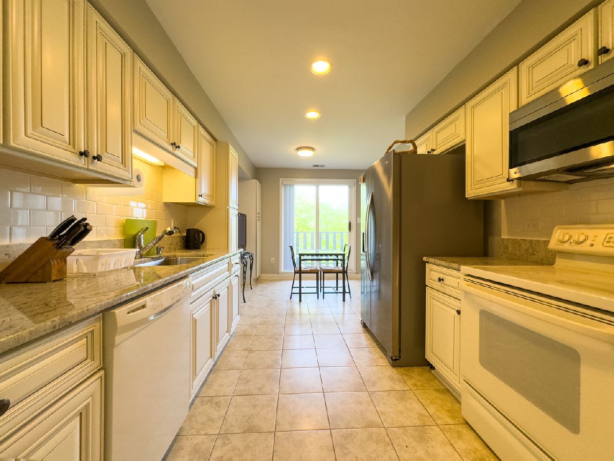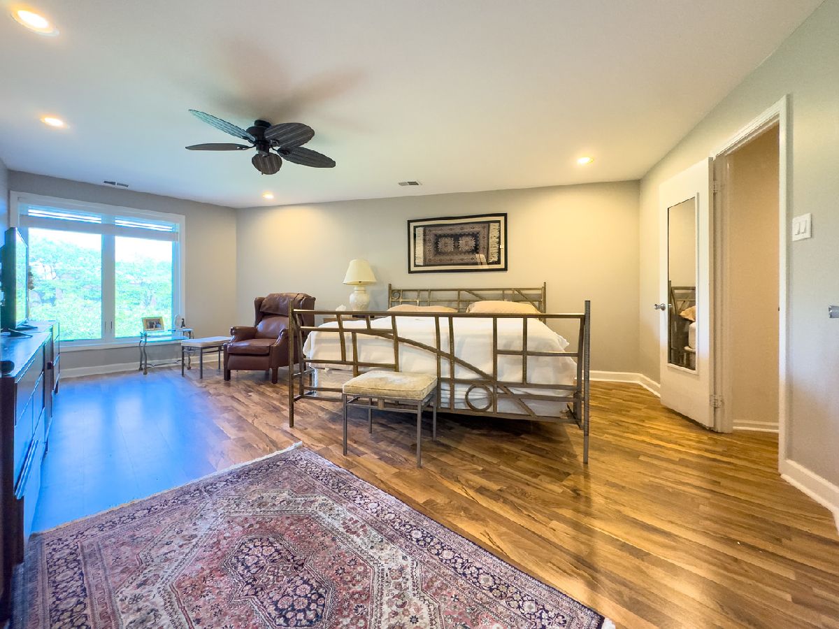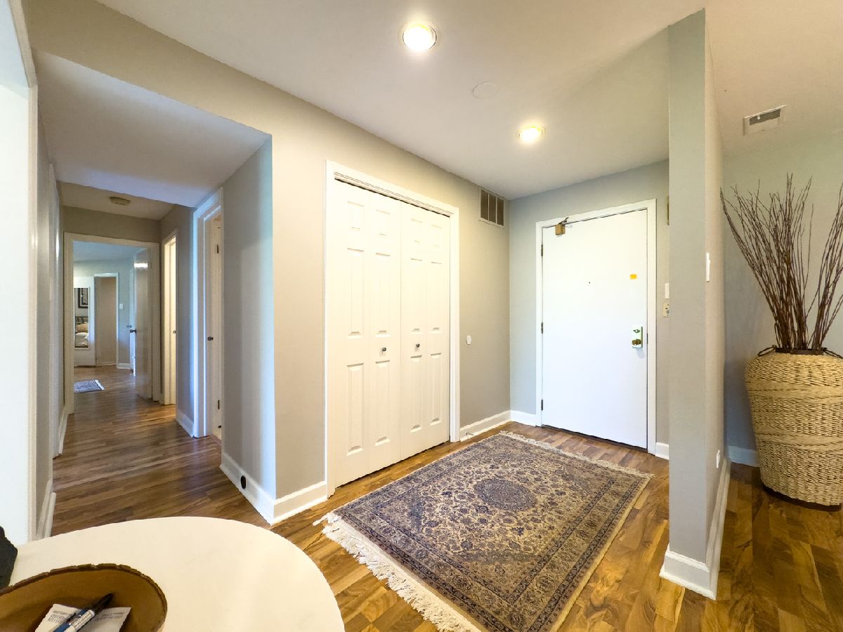 Welcome to this beautifully maintained 2-bedroom, 2-bath top-floor unit overlooking a serene courtyard with peaceful treetop views. This spacious home offers thoughtful features, abundant storage, and access to an impressive list of amenities-all in a prime location near shopping, dining, expressways, and entertainment. Enjoy unmatched privacy and quiet living-this unit shares no common walls with neighbors on either side, and being on the top floor, there are no neighbors above. That means no disturbances and ultimate peace and quiet. Step inside to find new flooring, recessed can lighting throughout, and a generously sized living and dining area featuring a cozy gas-log fireplace, perfect for relaxing or entertaining. The eat-in kitchen includes two pantries, ample cabinet and drawer space, and opens directly to a huge balcony. The second bedroom and kitchen both offer sliding glass doors that lead to the balcony, creating a seamless indoor-outdoor living experience. The primary suite offers a generous layout with a sitting area, two large walk-in closets, and a private bath featuring updated shower tile and fixtures, refreshed bathroom cabinets, and spa-like comfort. The second bedroom, currently used as an office, can easily be converted back to a traditional bedroom, offering flexibility for your lifestyle. Additional conveniences include in-unit laundry, three storage areas (two inside the unit and one nearby), and newer windows with privacy blinds. The HVAC system and ductwork have been professionally cleaned and maintained for optimal comfort and air quality. Residents enjoy resort-style amenities including a beautiful outdoor pool, tennis court, a well-appointed exercise room with its own private bathroom, sauna, and library, and a community/party room that also features its own private bathroom. You'll also find a welcoming lobby and plenty of spaces to relax or entertain. A heated garage with a dedicated parking spot, elevator access, and ample guest parking ensure daily ease and comfort. Ideally located near everything you need-grocery stores, restaurants, hospitals, shopping centers, post office, and major highways (294, 94, 41, 43, 68)-plus easy access to public transportation. Local attractions like the Botanic Garden, Ravinia, and movie theaters offer endless entertainment just minutes away. This is more than a home-it's a lifestyle. Come see it today!