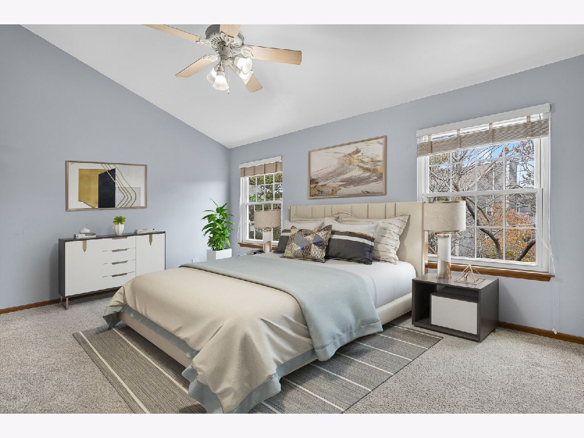 Looking for a perfectly located property? This BEAUTIFUL & TURNKEY Talbot's Mill home is the one you've been waiting for! This spacious property boasts a private entrance, 2 floors of living area, vaulted ceilings, 2 driveway parking spaces, a spacious patio/yard, and A PRIVATE ATTACHED HEATED GARAGE! As you enter this home you will be greeted by a freshly painted foyer, durable wood-look flooring, & upgraded lighting. Enjoy the spacious dining room with views into an upgraded kitchen boasting upgraded STAINLESS STEEL appliances, updated lighting, under cabinet lighting, & bonus space for an eat-in area or island. Enjoy entertaining for the holidays in the oversized living room offering fresh neutral paint, pristine carpeting, high-end blinds, & views to the beautiful backyard. Enjoy grilling on your private patio & take your morning coffee in one of the most ideally located backyards in the subdivision! Retreat to the upper level of this property and note the incredible vaulted ceilings, sunny skylight, oversized linen closet, & 2 LARGE BEDROOMS EACH WITH PRIVATE ENSUITES! The primary bedroom features ample space for your king bedroom set, dramatic vaulted ceilings, 2 spacious closets, & relaxing views of mature trees. The attached primary bathroom offers crisp fresh paint, a dual sink vanity, & a relaxing tub/shower combo. Guests will enjoy an oversized bedroom with airy ceilings, dual closets, & a private attached bathroom! Convenient dedicated laundry room, powder room, & ample closet space throughout! This home is in PRISTINE CONDITION! This well maintained property offers UPGRADED HVAC, UPGRADED Roof, REPLACED skylight, UPDATED Water heater, NEWER appliances, BUILT-IN GARAGE HEATER, FRESH PAINT, NEWER light fixtures, UPGRADED windows/sliding doors, HIGH-END window treatments, & MORE! Conveniently located near shopping, entertainment, & restaurants! Easy access to Metra 290, 390, 90, 355, & 294! PERFECT LOCATION, HIGHLY RATED SCHOOLS, & LOW HOA!