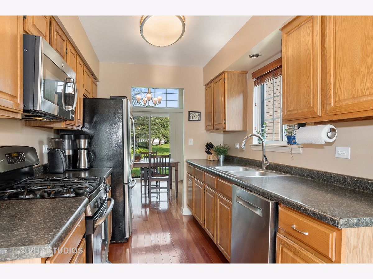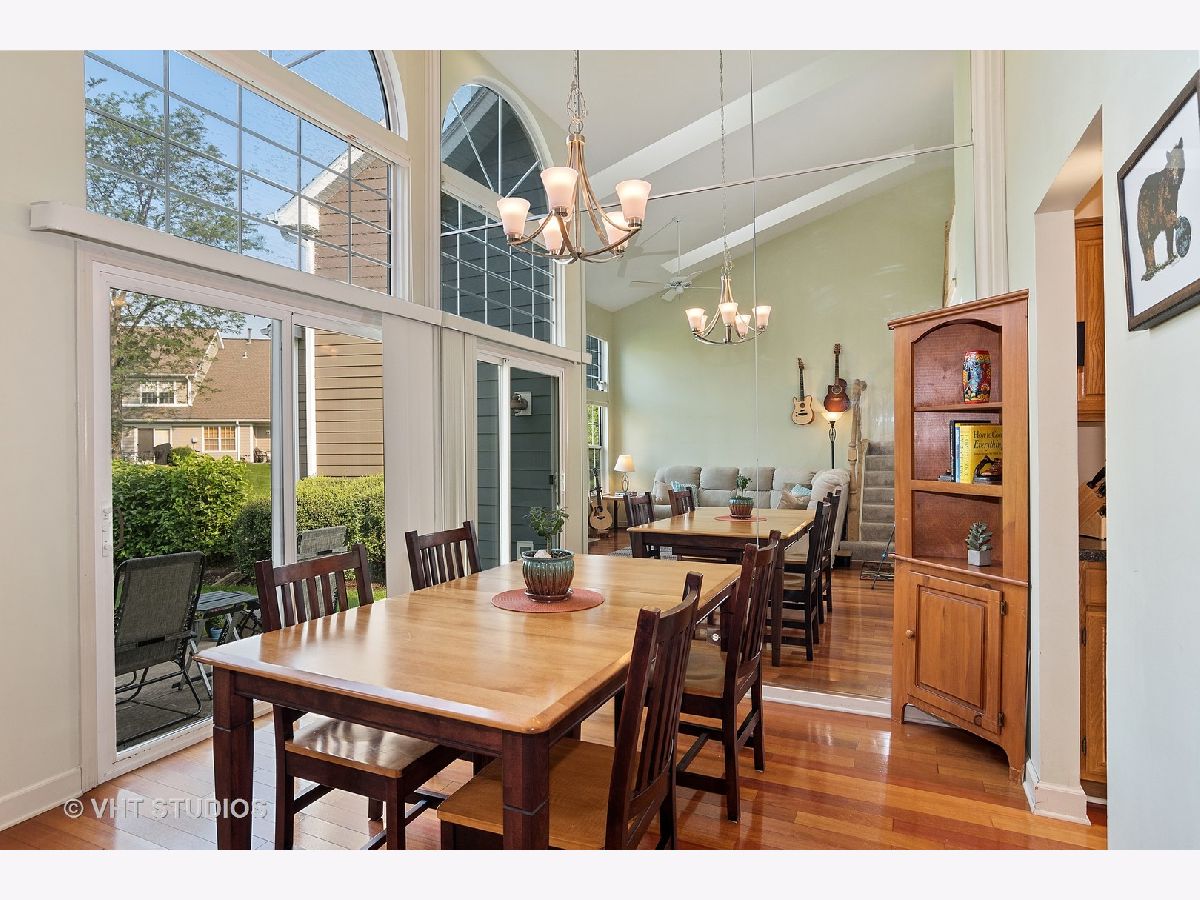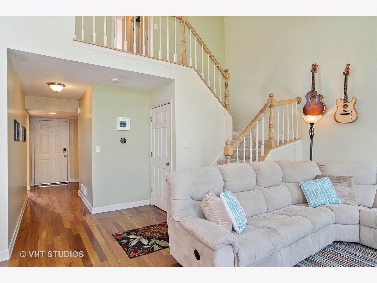 Gorgeous two-story END UNIT townhome in Carol Stream offering 2 beds, 1.1 bath and attached garage. The WOW factor of this beautiful townhome is the two-story living room boasting huge windows, cozy fireplace, hardwood floors and open to the dining area. Kitchen opens to dining room and includes an eating area, hardwood floors and stainless steel appliances. Primary suite appointed with a vaulted ceiling, large walk-in closet and updated shared bath. Primary bath offers dual taller vanity, granite counter tops, radiant heat Travertine floors, tiled shower and soaking tub. Second bedroom/office is the perfect space for a guest room, home office or workout room. Conveniently located first floor laundry room with LG washer/dryer (2018) and shelving. Fully finished basement features family room, wet bar, workshop and spacious storage room! Bonus feature - pull down attic stairs with finished flooring and lighting for additional storage options. Value added updates: Hunter Douglas blinds (2021), battery back-up sump pump (2021), sump pump (2019), LG front load Graphite washer/dryer (2018), HVAC (2016), water heater (2016) and vinyl siding (2013). SMART features: Liftmaster Smart garage door opener (2019), Yale keyless front door lock (2019) and Smart Ecobee thermostat (2018). Easy access to schools, shopping, restaurants, parks and so much more! Welcome Home!