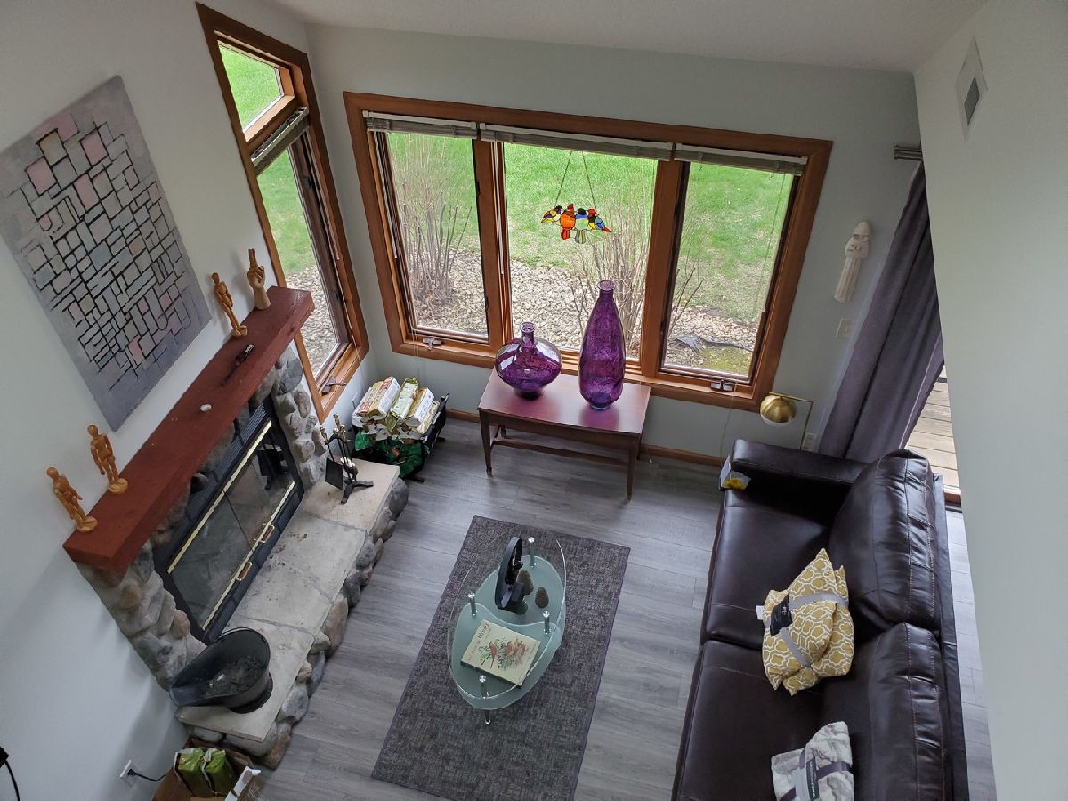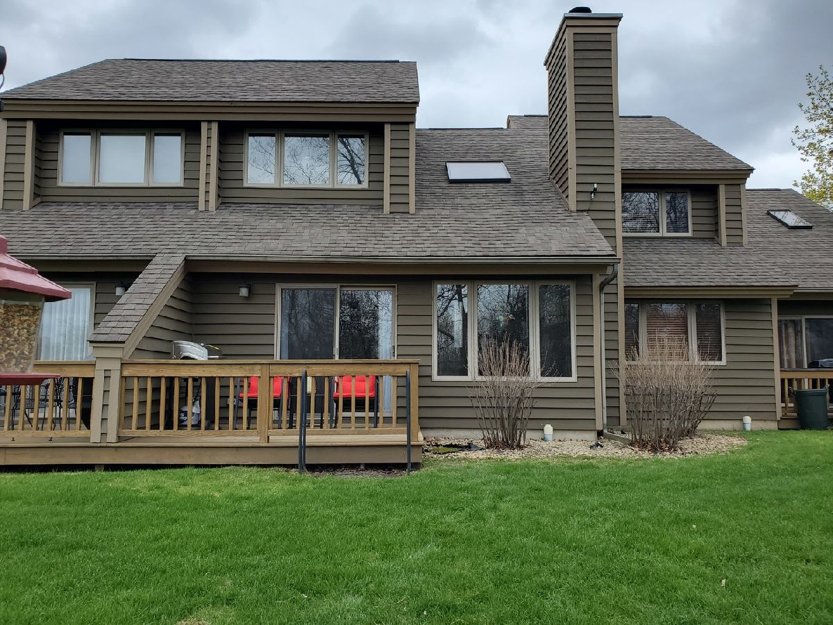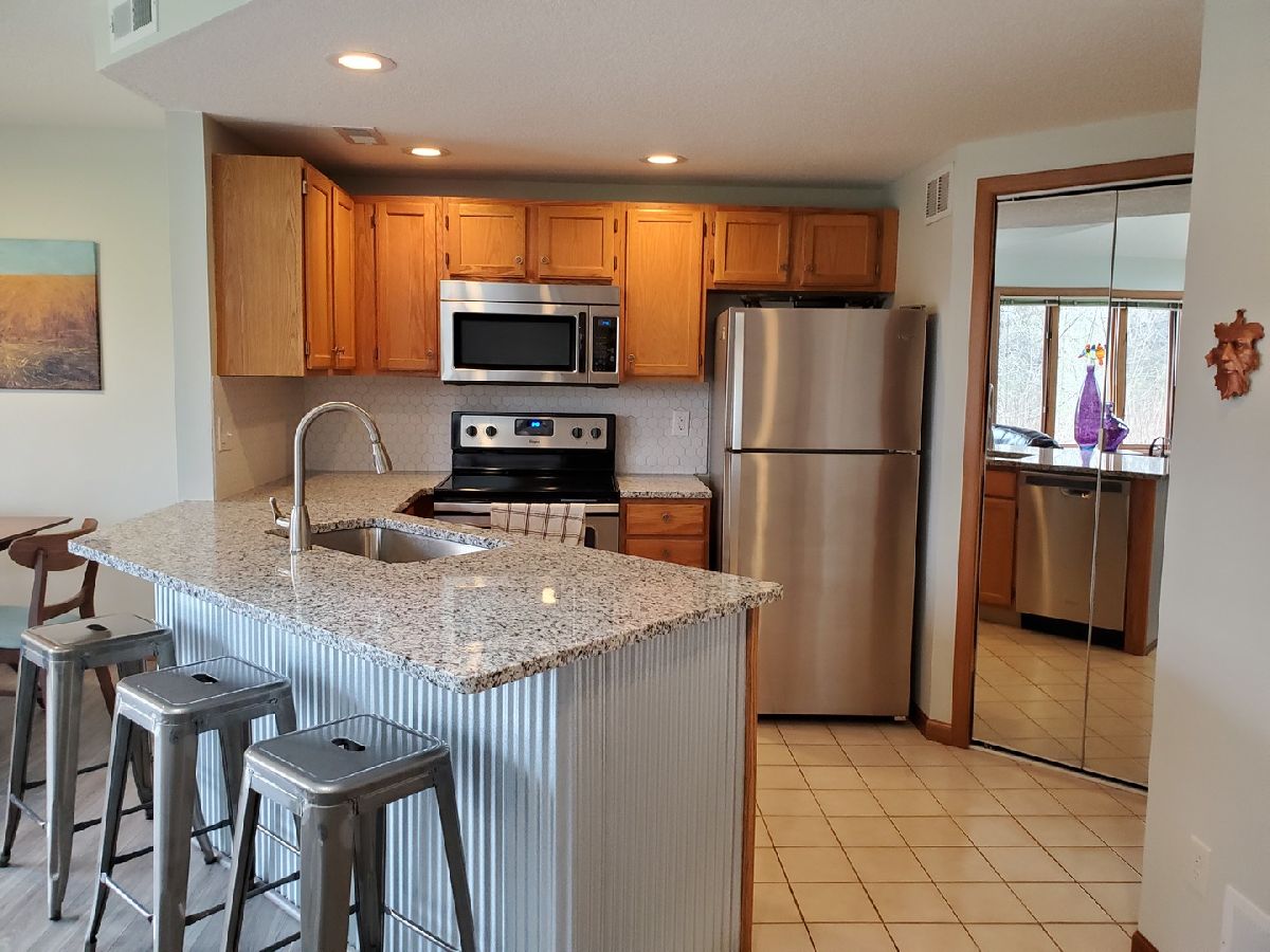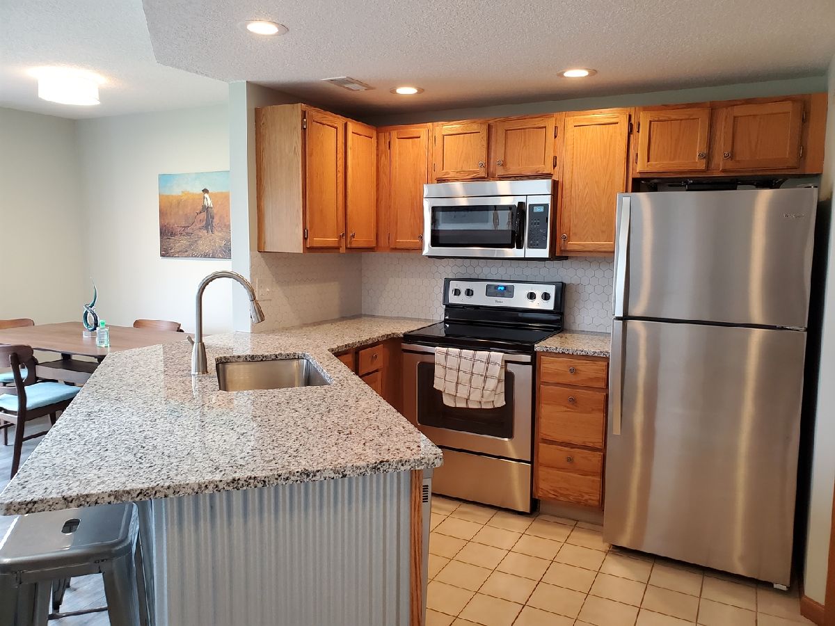 Modern! This Hickory Run 1 bedroom 2 bathroom Townhouse has been updated both in furnishings and core updates. Open, airy, bright, and peaceful. With a view of the #1 fairway of Eagle Ridge Golf Course, there are no neighbors out back. The stillness, wildlife and beauty of The Galena Territory is intoxicating. The entire home has been updated and is modern, clean and fresh! If you loathe carpeting then you will love this home as there is no fixed carpet! New Pergo grey plank floors have been installed throughout along with new floor, window and door trim. Closet doors have been replaced with mirrored bifold doors to reflect the light, color and energy of The Territory and all have new LED lights. Kitchen has brand new granite countertops, new stainless sink, new faucet, new backsplash, new garbage disposal, new SS appliances, new recessed LED lights, new thermostat. The kitchen basin has been updated with modern new corrugated facade sheeting. Living room boasts a wood-burning fireplace with new interior refractory panels, new stainless curtain rod and modern curtains at patio door, new barrel ceiling light in dining. Large skylight floods the home with light. If you love this during the day you will love this equally at night with a log in the fireplace and the new dimmer lights on, perfect for watching the colorful Illinois sunsets! Main floor bathroom has new granite countertop, new vessel sink, new faucet, new toilet, new showerhead along with a new solid craftsman door. Laundry room has a new washer and dryer that chime when completed as well as a new Rheem water heater and new Heil furnace. Outside Heil Central Air is new as well! Stairs have new treads and risers with accompanying Wolf stainless handrails for an added modern feel. New storm door installed at front. Upstairs you will find a loft which is perfect for an office with the large skylight directly in front. New craftsman doors in bedroom and upper bath. Vaulted ceiling in bedroom with new ceiling fan and dimmer switches too! The upper bath has vaulted ceiling and new granite countertops, new vessel sinks, new faucets, new toilet, new showerhead. Nice skylight in upper bath above jacuzzi tub. Also new are the ceiling, wall and floor grates, gfci outlets, duplex outlets, light switches and dimmer switches. Interior newly painted in neutral colors. The ceilings are a gorgeous modern bright white. All the furnishings, most of which are brand new are negotiable with the home furnished as tasteful and modern. This home is about as close to new as you can get without building your own. Seller has pre-paid the monthly HOA through December 2021 and that conveys to the buyer. If you are seeking peace and stillness in your life with a modern ambiance then you may have just found what you are looking for in this Townhome in the low density Galena Territory.