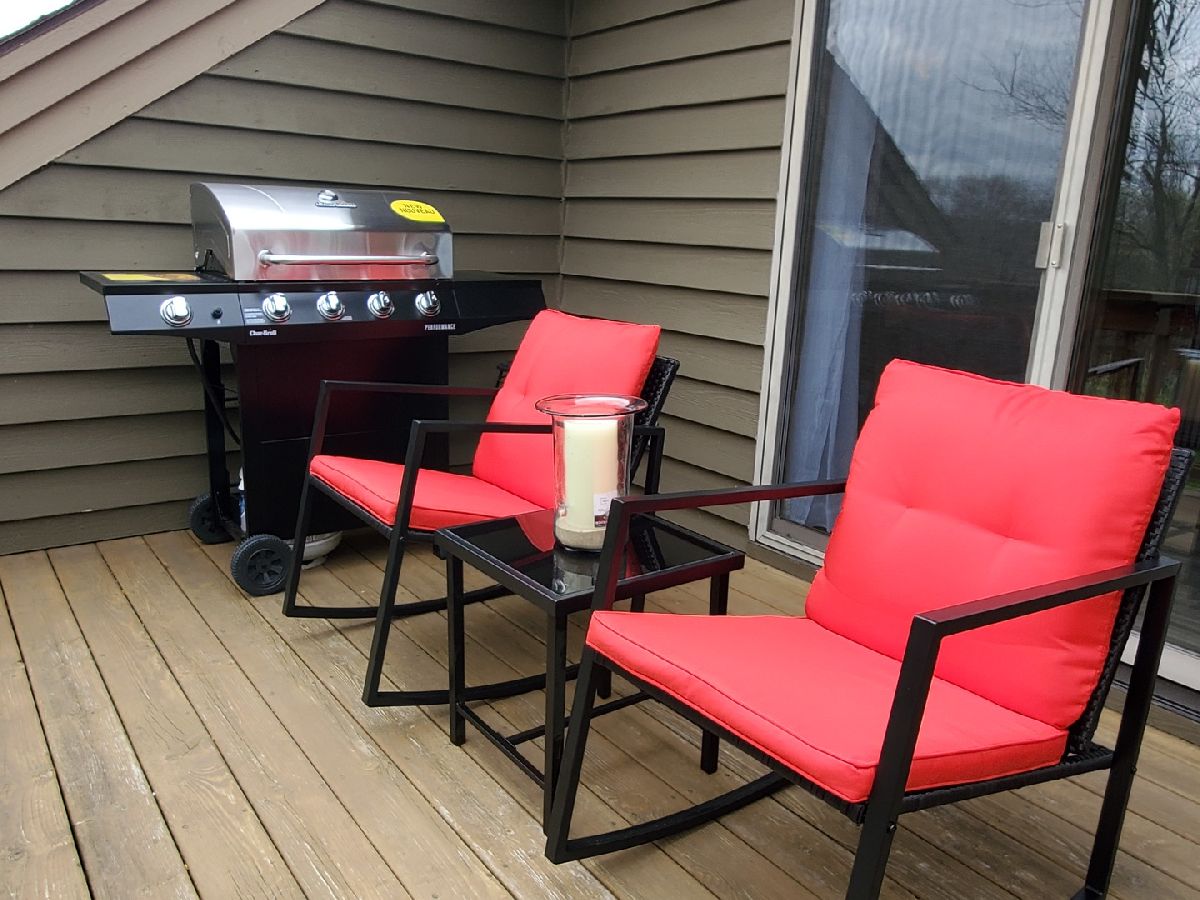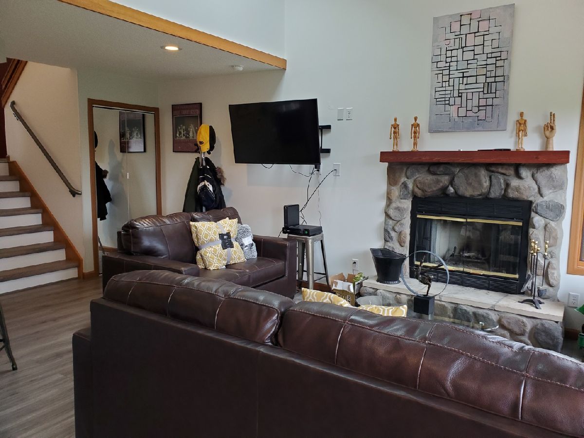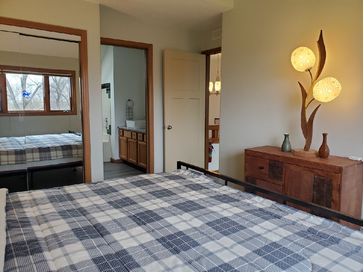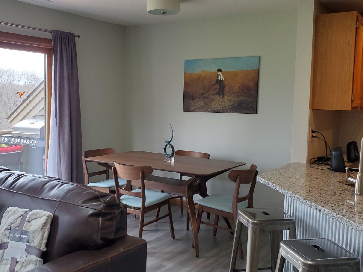 Modern! This Hickory Run 1 bedroom 2 bathroom Townhouse has been updated both in furnishings and core updates. Open, airy, bright, and peaceful. With a view of the #1 fairway of Eagle Ridge Golf Course, there are no neighbors out back. The stillness, wildlife and beauty of The Galena Territory is intoxicating. The entire home has been updated and is modern, clean and fresh! If you loathe carpeting then you will love this home as there is no fixed carpet! New Pergo grey plank floors have been installed throughout along with new floor, window and door trim. Closet doors have been replaced with mirrored bifold doors to reflect the light, color and energy of The Territory and all have new LED lights. Kitchen has brand new granite countertops, new stainless sink, new faucet, new backsplash, new garbage disposal, new SS appliances, new recessed LED lights, new thermostat. The kitchen basin has been updated with modern new corrugated facade sheeting. Living room boasts a wood-burning fireplace with new interior refractory panels, new stainless curtain rod and modern curtains at patio door, new barrel ceiling light in dining. Large skylight floods the home with light. If you love this during the day you will love this equally at night with a log in the fireplace and the new dimmer lights on, perfect for watching the colorful Illinois sunsets! Main floor bathroom has new granite countertop, new vessel sink, new faucet, new toilet, new showerhead along with a new solid craftsman door. Laundry room has a new washer and dryer that chime when completed as well as a new Rheem water heater and new Heil furnace. Outside Heil Central Air is new as well! Stairs have new treads and risers with accompanying Wolf stainless handrails for an added modern feel. New storm door installed at front. Upstairs you will find a loft which is perfect for an office with the large skylight directly in front. New craftsman doors in bedroom and upper bath. Vaulted ceiling in bedroom with new ceiling fan and dimmer switches too! The upper bath has vaulted ceiling and new granite countertops, new vessel sinks, new faucets, new toilet, new showerhead. Nice skylight in upper bath above jacuzzi tub. Also new are the ceiling, wall and floor grates, gfci outlets, duplex outlets, light switches and dimmer switches. Interior newly painted in neutral colors. The ceilings are a gorgeous modern bright white. All the furnishings, most of which are brand new are negotiable with the home furnished as tasteful and modern. This home is about as close to new as you can get without building your own. Seller has pre-paid the monthly HOA through December 2021 and that conveys to the buyer. If you are seeking peace and stillness in your life with a modern ambiance then you may have just found what you are looking for in this Townhome in the low density Galena Territory.