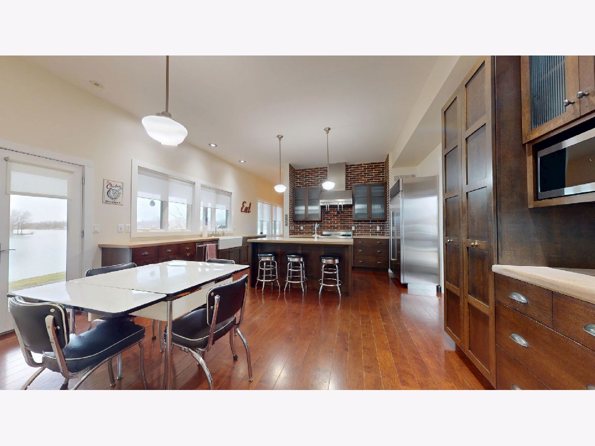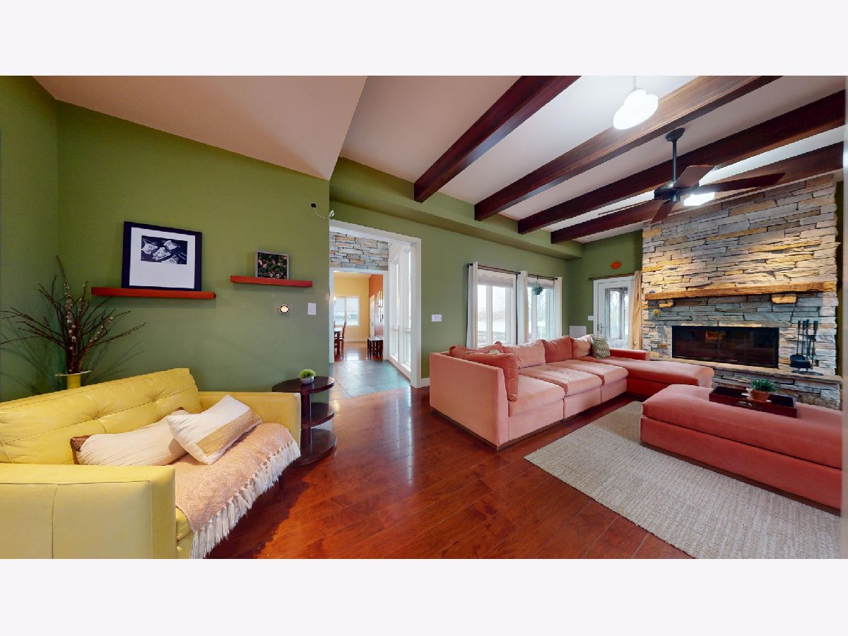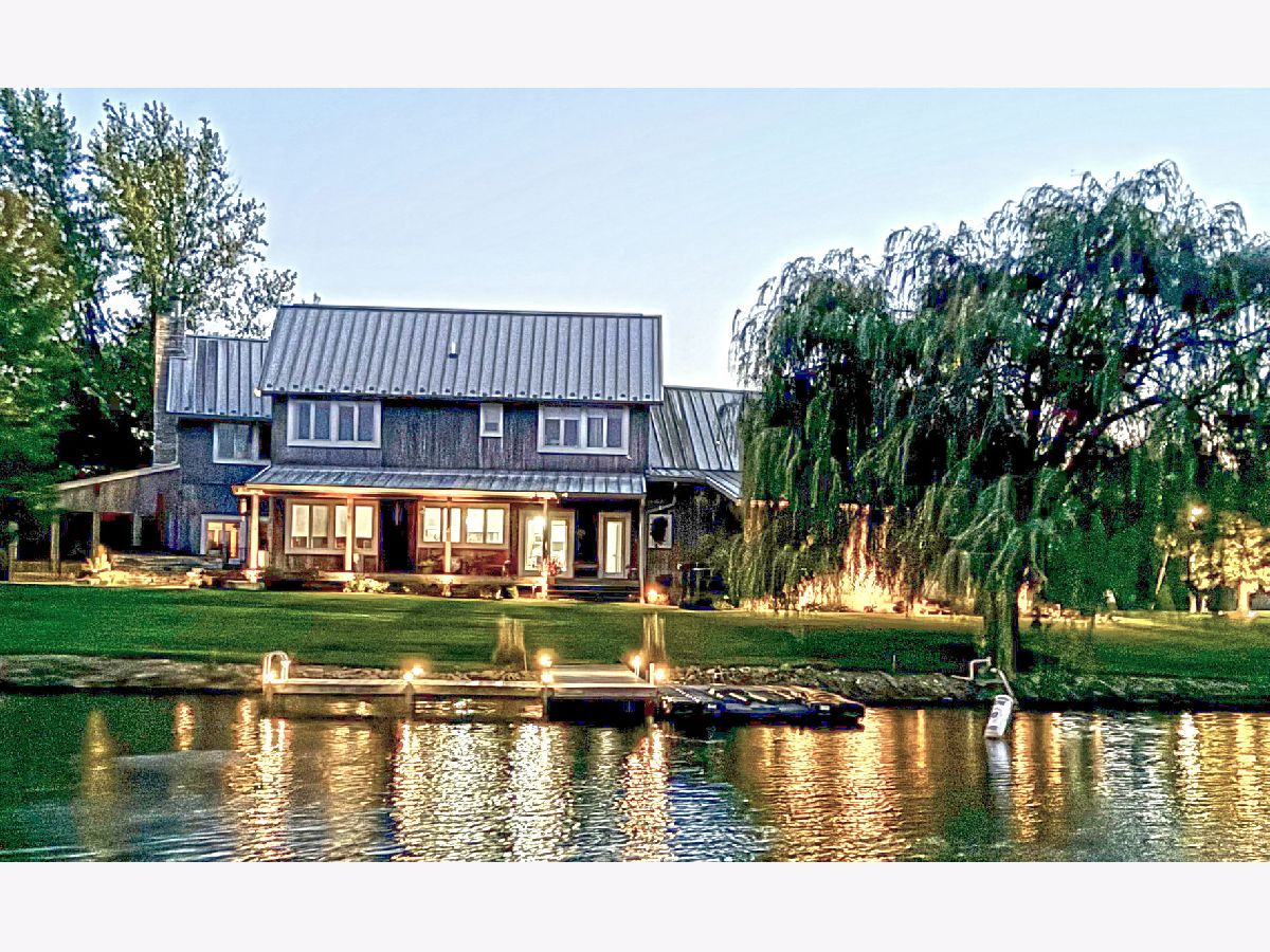 FREE BOAT! Your Lakehouse Awaits. Stunning, Custom, One Owner Home, looking for the next owner to enjoy. Located on Lake Iroquois, on 3/4 acre with 180 degree lakefront view and includes a private beach area, private drive on boat dock with a 19 ft deck boat. (skis, paddle boards, kneeboard, and vests included). HOA boat storage on site for winter. Your new home boasts over 4200 sq ft to enjoy. A fabulous great room with a fireplace, with a half bath adjoining. Onto the screened porch w/outdoor furniture and wood burning fireplace (in-floor heating system tubes in place if desired to hook up later). The Chef Style Kitchen is amazing, with lots of windows for views of water. It includes ample cabinet and counter space with concrete counters, a Sub Zero Fridge/Freezer, Viking Gas Range w/griddle & stove, Bosch Dishwasher, LG Microwave, 2 in-sink disposals, instant hot/cold filtered water, walk in pantry closet nearby, WOW! The dining room also overlooks the lake and patio. There are 4 bedrooms and 3 full baths. One is an Owner's WING with a spacious bedroom, complete with a cozy fireplace, HUGE walk in closet, private bath featuring double sinks, tub, separate shower and built-in cabinets. BONUS up the stairs is a work out or craft room for owner to enjoy. 2 bedrooms across the hall share a full bath. 4th bedroom has it's own bath. 2nd floor laundry. Main floor drop zone with lockers for organization. Basement is unfinished and great for storage. So much to this property: 3 sump pumps, security system, smart thermostat, in-floor heating throughout the home and garage (5 zones), Owned Solar Panels, High velocity/efficient AC 2 zone, 3 fireplaces, 3 water heaters, insulated garage doors, built-in entertainment system, half unfinished basement/half crawl space, fenced dog area with motorized door, public water and sewer, metal roof, cedar siding, ethernet ports throughout, includes current physical furniture inside and out to enjoy. Lots to do on this lake with activities and fireworks on the 4th. Be sure to take the online virtual tour too. Seller pre-inspected for buyer convenience. Available upon request. Boat is a 2009 Hurricane Fundeck GS 194 deck boat, length 18' 10" (registered as 18' class), 115 HP Evinrude E-Tec outboard with about 200 hrs, Trailmaster 2-wheel trailer with surge brakes. Solar panels power over half the house to offset electric bill to be lower.