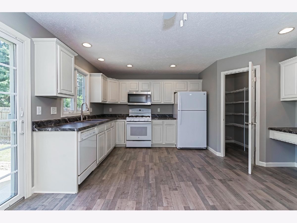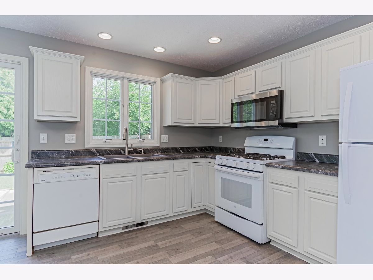 Gorgeous 1.5 story home on private cultural de sac street. Completely updated and shows like new construction. Open functional floor plan, main level primary suite with walk in closet and completely renovated master bathroom. Open eat in kitchen, large family room with vaulted ceilings and gas fire place. Two additional bedrooms on second level with enormous walk in closets, and renovated bathrooms. Full partially finished basement with 4th bedroom and 3rd full bathroom. Fully fenced private backyard with patio. Recent updates include but not limited to: All new flooring on the main level and second level '20, full kitchen remodel '20- white cabinets, new countertops '20, new sink '20, newer flooring, updated appliances (microwave '20, refrigerator '19), new roof '15-ish, new hot water heater '16-ish, all new paint on walls and trim '20, backyard sodded '20, finished basement 08, basement carpet '16, sump pump water back up '16, new ceiling fans '20, new thermostat '20, all new fixtures '20.