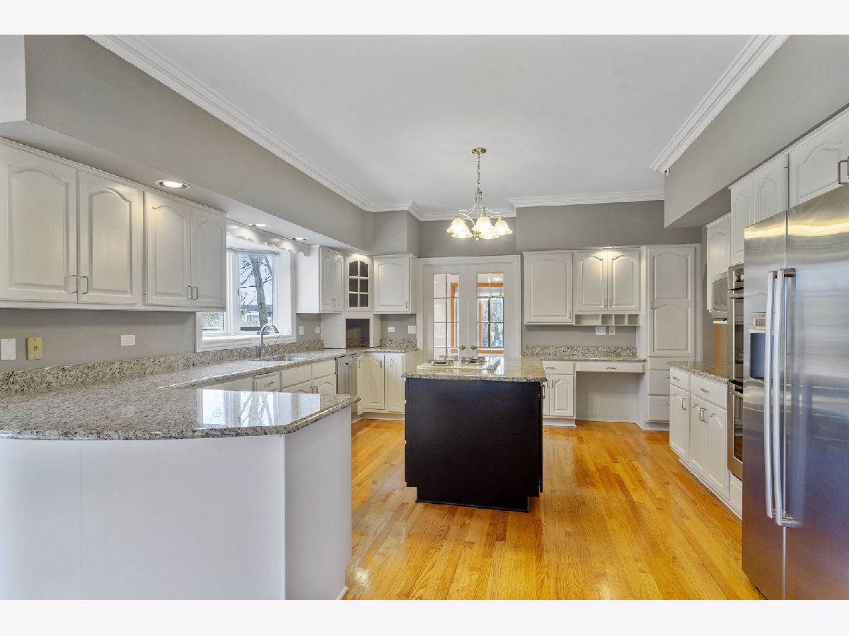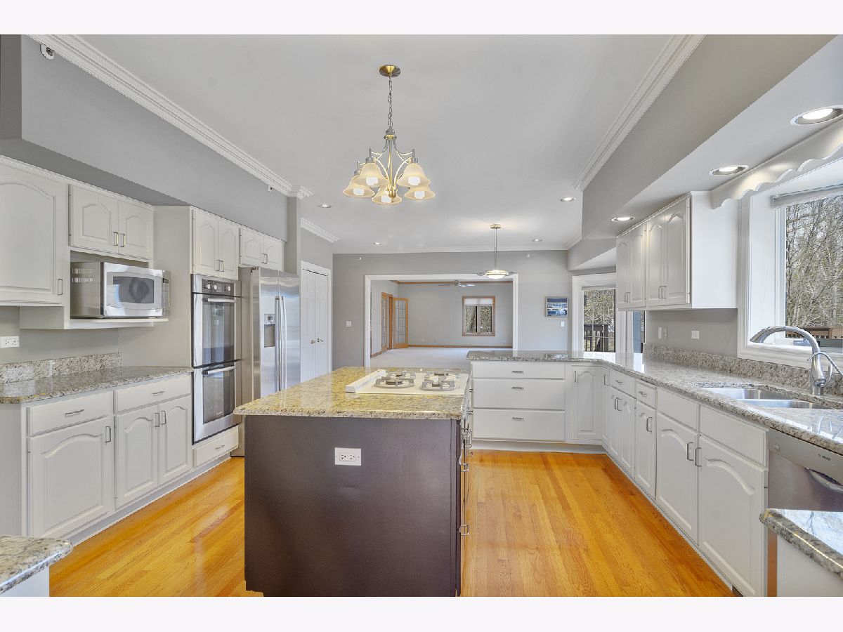 Drive-up a circular driveway and step into this marvelous 2-story brick single family with all the space you desire. Enter to an exquisite foyer with marble flooring and an impressive wooden staircase. This home offers a wealth of natural light and crown molding detail throughout. The amazing kitchen has plenty of white cabinet space, granite countertops, high-end stainless steel appliances, center island with cooktop, hardwood floors and oversized breakfast area. Spacious living room with fireplace and hardwood floors open up with french doors to the enormous family room which has a second fireplace made of stone and a wet bar. The grand dining room with a decorative tray ceiling, hardwood floors and access to a butler's pantry are perfect for entertaining the family on those special occasions. 1st-floor/study/den or possible bedroom with spiral staircase leads to the 2nd-floor bonus room/loft/bedroom. The huge master bedroom has 2 walk-in closets, a private master bathroom with granite dual vanities, glass standing marble shower, marble jacuzzi, and 2 walk-in closets. Find a first-floor bedroom w/full bath and walk-in closet. 2nd floor has 3 bedrooms two of them with its own private full bath, walk-in closets, and access to a private balcony. Walk downstairs to a massive finished walk-out basement with tiled flooring, 3rd brick fireplace, kitchen, full bar, full bathroom & garage access. Enjoy your Summer sitting and grilling in the backyard on the extensive wooden deck. New roof (2019), some recent landscaping (2019), 2 furnaces (2015), 1 HVAC unit (2015), stainless steel appliances (2015). Walking distance to the historic town of Long Grove.