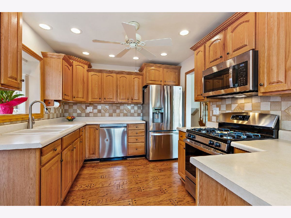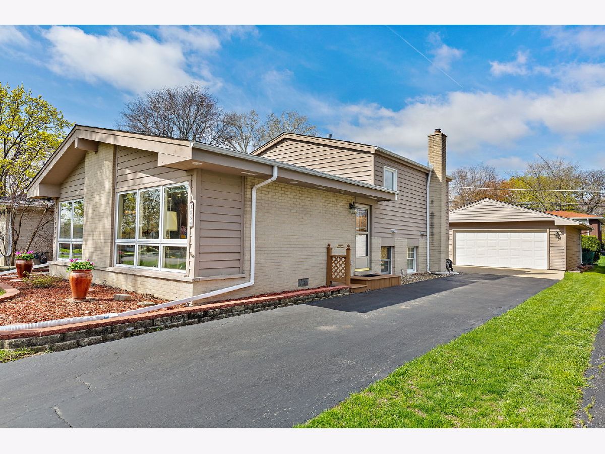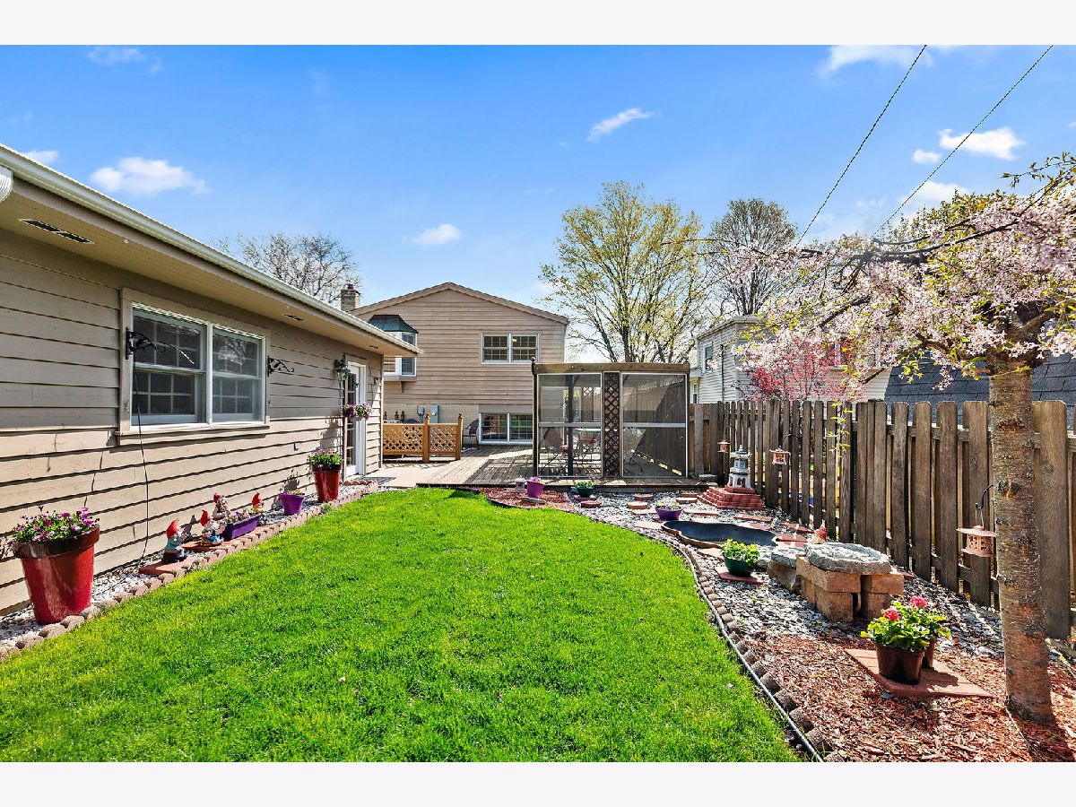 Well-maintained split-level home on a quiet tree-lined street. Floor to ceiling windows in the living & dining room allowing lots of natural light. Vaulted ceiling with wood beams. Foyer & kitchen with hardwood floors. Updated kitchen w/ beautiful wood cabinets, ceramic tiled backsplash, garden window, built-in pantry cabinet, & recessed lighting. Stainless steel appliances featuring a brand-new oven, refrigerator 2 years old, & microwave 1 year old. You are going to love the family room featuring a gas log fireplace, wine cooler, & recessed lighting. The lower level also offers a full bathroom & laundry room with storage, utility sink, washer is 1 year old, & folding table. Upstairs you will find spacious bedrooms & updated bathroom with new window. Enjoy relaxing & entertaining in the fenced-in backyard featuring a deck with screened area, beautiful landscaping, & pond. 2.5 car garage with storage area. Furnace/ AC new in 2016. Concrete crawl space. Just minutes to downtown Arlington Heights.