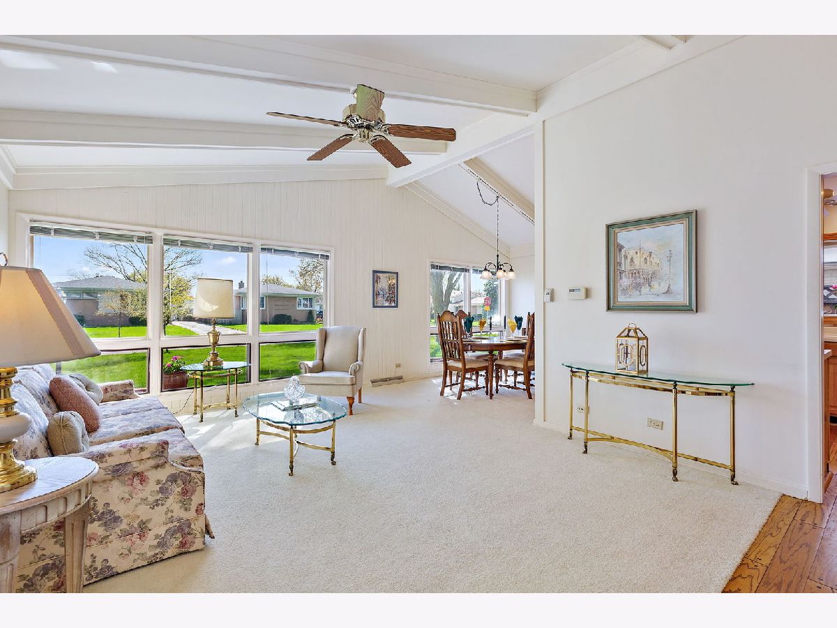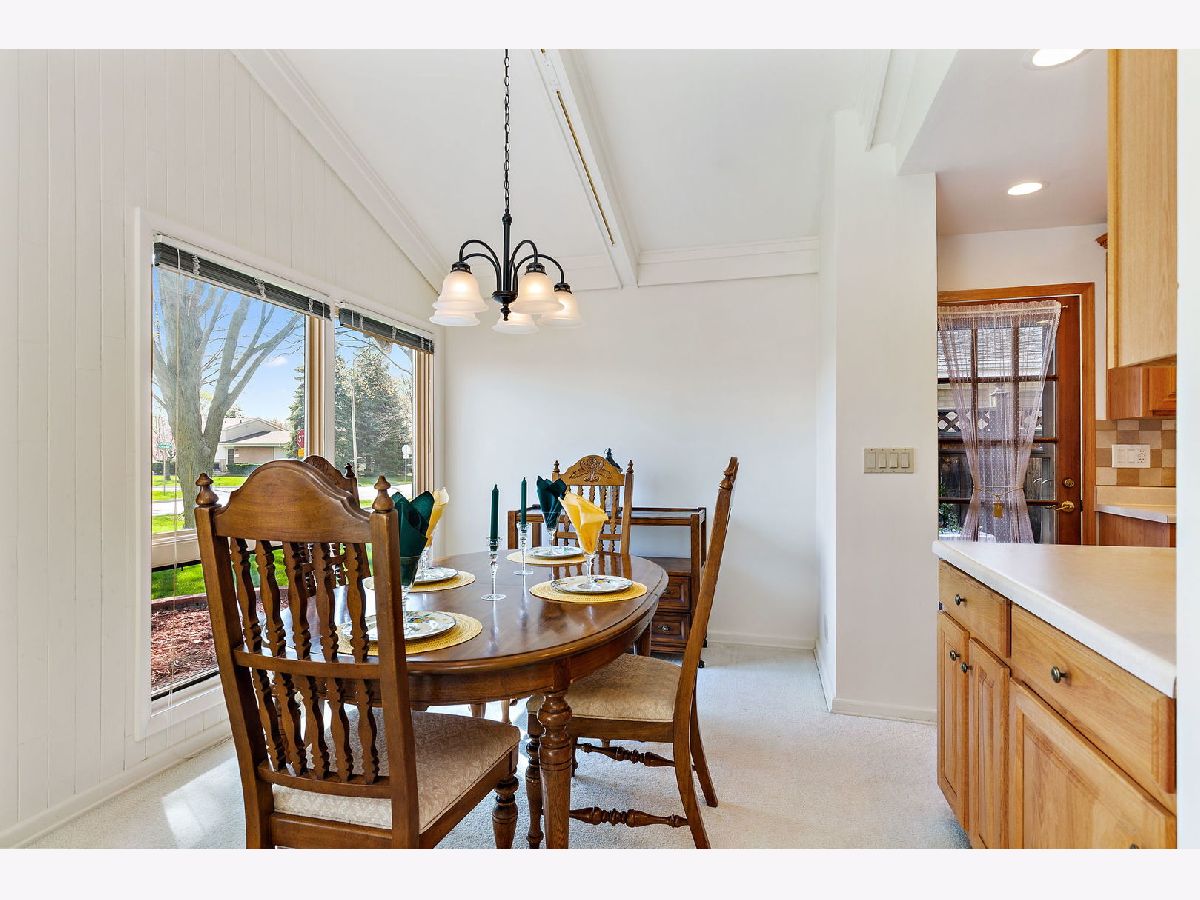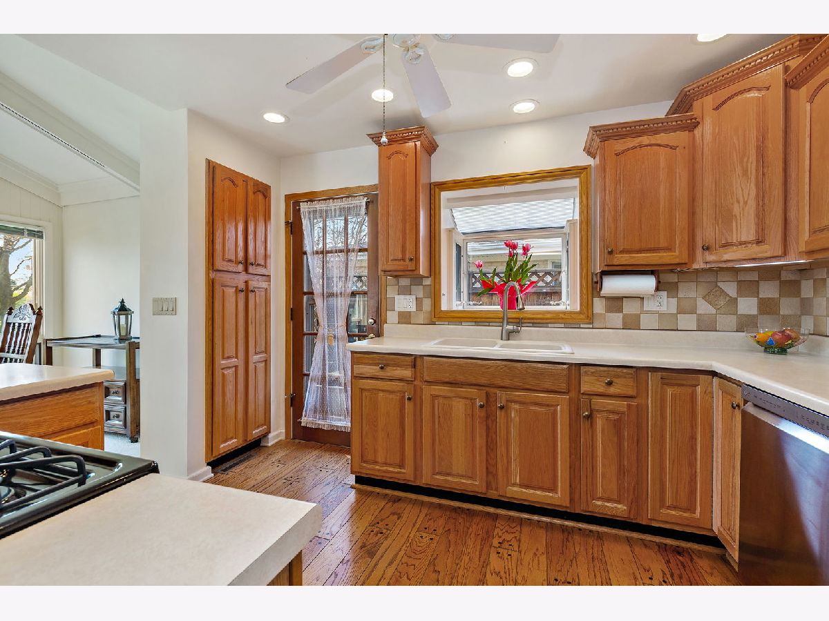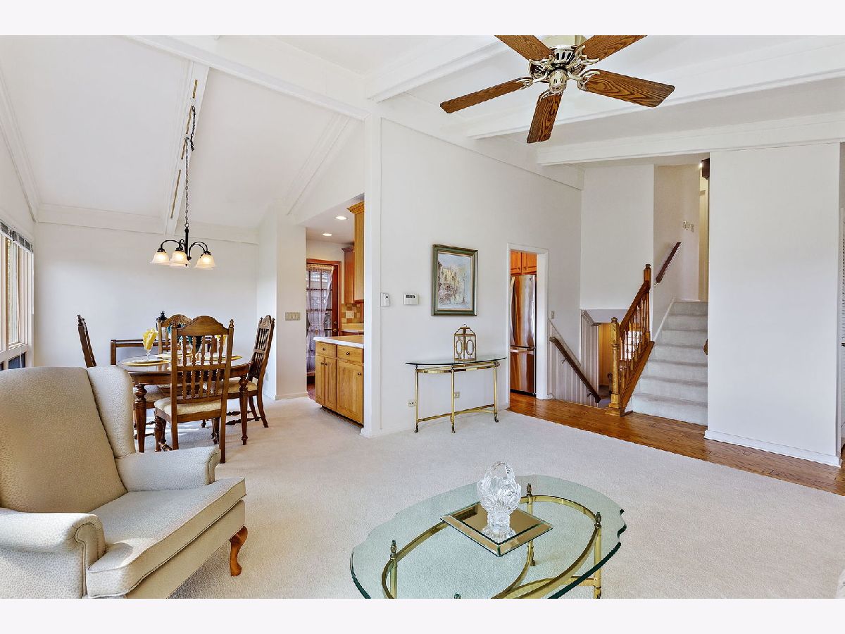 Well-maintained split-level home on a quiet tree-lined street. Floor to ceiling windows in the living & dining room allowing lots of natural light. Vaulted ceiling with wood beams. Foyer & kitchen with hardwood floors. Updated kitchen w/ beautiful wood cabinets, ceramic tiled backsplash, garden window, built-in pantry cabinet, & recessed lighting. Stainless steel appliances featuring a brand-new oven, refrigerator 2 years old, & microwave 1 year old. You are going to love the family room featuring a gas log fireplace, wine cooler, & recessed lighting. The lower level also offers a full bathroom & laundry room with storage, utility sink, washer is 1 year old, & folding table. Upstairs you will find spacious bedrooms & updated bathroom with new window. Enjoy relaxing & entertaining in the fenced-in backyard featuring a deck with screened area, beautiful landscaping, & pond. 2.5 car garage with storage area. Furnace/ AC new in 2016. Concrete crawl space. Just minutes to downtown Arlington Heights.
