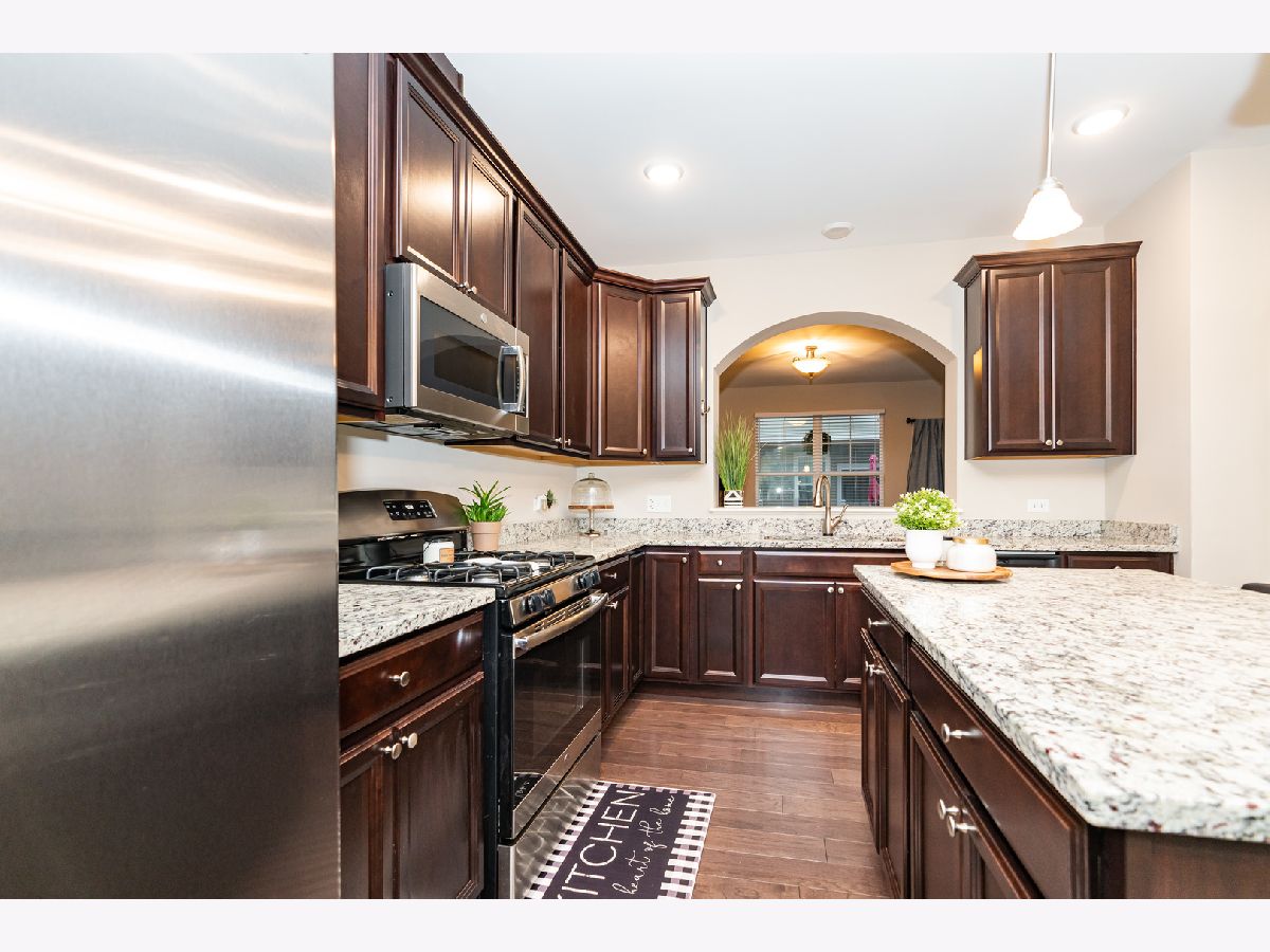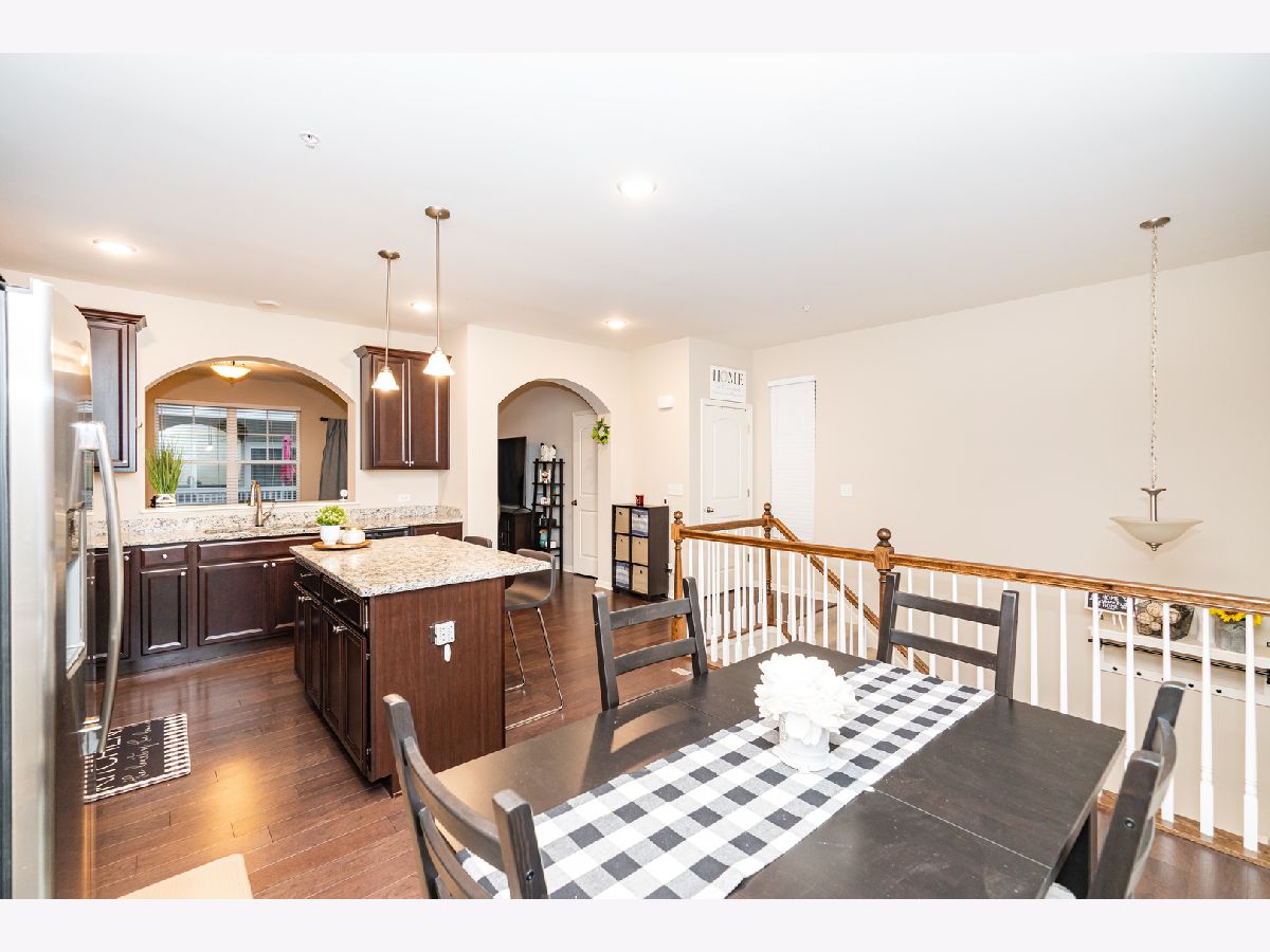 Elegant and well-kept, 3-bedroom,2.5 bath end unit townhome built in 2018 in Colfax Crossing featuring a bright and open concept floor plan great for entertaining. You'll be impressed with this home as it features 42" upgraded wood cabinets with complimentary hardware, granite countertops including the island, like-new stainless steel appliances, upgraded wood floors through out the main level, large windows adding natural light, and the balcony off of living room for outdoor enjoyment. Powder room located on the main floor. Master bedroom features coffer ceiling and extensive walk-in closet. Master bath has European height cabinets and upgraded toilet along with guest bath. Laundry conveniently located on bedroom level. Lower level is a great space for family room or office. Oversized, attached two-car garage enters to the lower level. Great community to be a part of with all exterior lawn maintenance and snow removal included with association. Fantastic location within walking distance to the Des Plaines Metra train with access to downtown Chicago, minutes from Downtown Des Plaines with shopping, restaurants, entertainment, library, dog park and more. Plus conveniently located to major expressways and O'Hare Airport. This home won't last long!