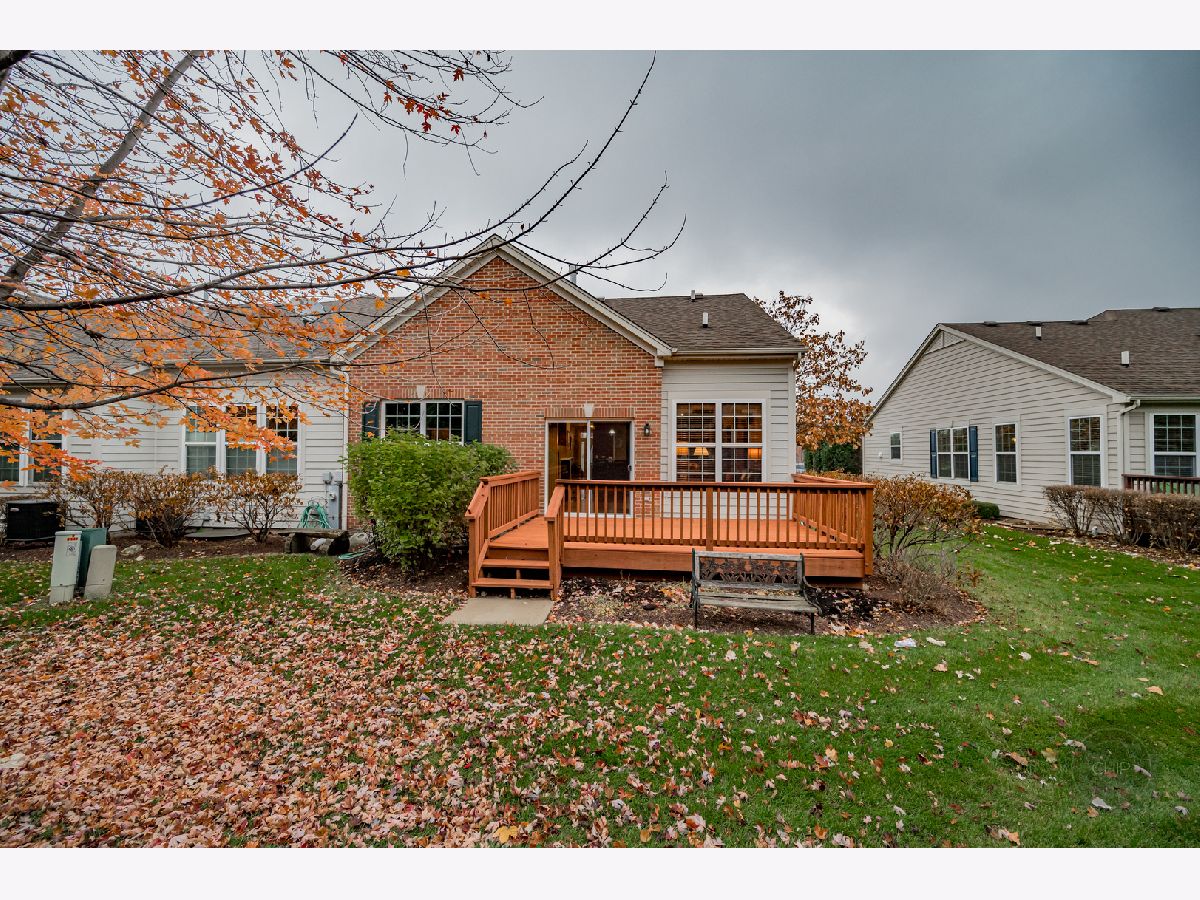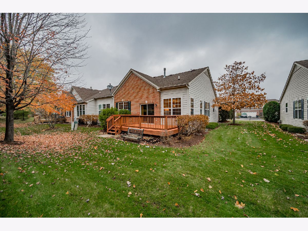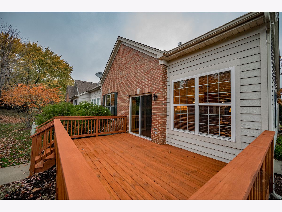 RANCH END UNIT IN HIGHLY DESIRED PATRIOT PLACE. Denali model backing to tree line of pine trees offering amazing privacy. Amenities galore in your new home from hardwood floors, window treatments, vaulted ceilings, full finished basement and more. Spacious open floor plan is great for entertaining or everyday life. Gourmet Kitchen features upgraded cabinets with crown molding, black appliances, pantry, island with breakfast bar and oversized peninsula area with second breakfast bar. Vaulted ceiling from the Kitchen through the Dining and into the Living Room. Built-in gas log fireplace with decorative niche in Living Room. Freshly stained deck off Living area. Master suite with luxury bath includes double sinks, soaker tub, separate shower, and walk-in closet. Two additional spacious bedrooms (one being used as an office) and hall bath on the main floor. Laundry room is located on the main floor with large coat closet, bonus upper cabinetry, deep sink and washer/dryer. FULL finished deep pour basement with additional 4th bedroom and third full bath. Two large storage rooms. Attached two car garage. Maintenance free living including Louisiana Pacific Smart Board Siding. Schools are located across the street from the neighborhood. Neighborhood is adjacent to the Bolingbrook Golf Club. Easy access to expressway, convenient shopping, restaurants and more. Highly desired model in Patriot Place. Instant equity. Call today for a showing.