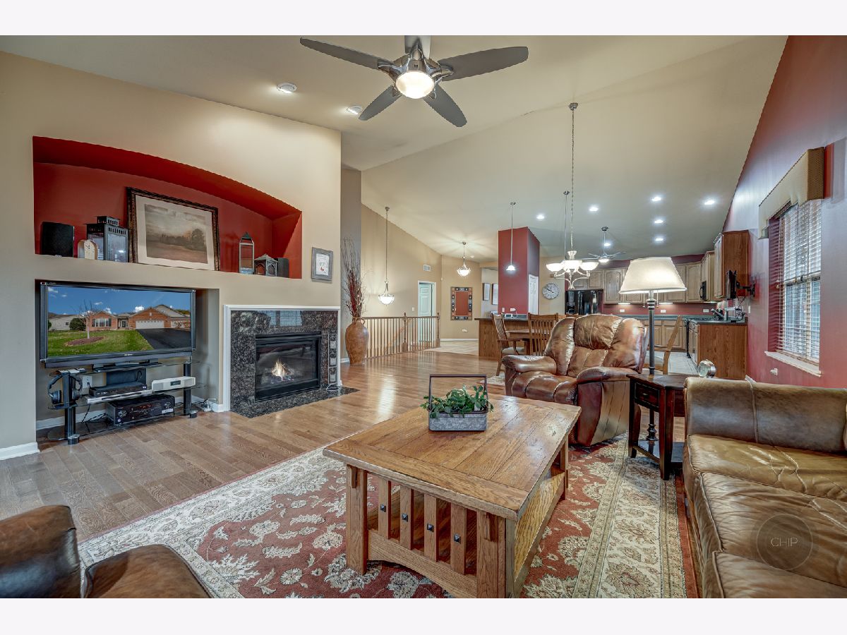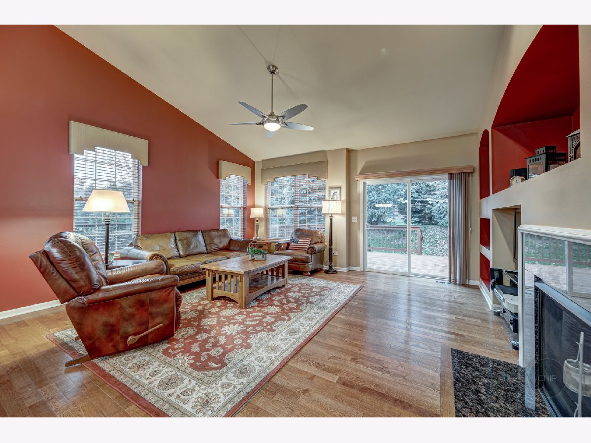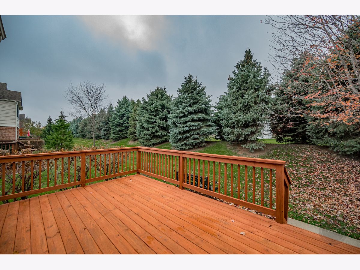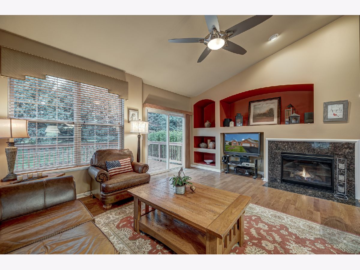 RANCH END UNIT IN HIGHLY DESIRED PATRIOT PLACE. Denali model backing to tree line of pine trees offering amazing privacy. Amenities galore in your new home from hardwood floors, window treatments, vaulted ceilings, full finished basement and more. Spacious open floor plan is great for entertaining or everyday life. Gourmet Kitchen features upgraded cabinets with crown molding, black appliances, pantry, island with breakfast bar and oversized peninsula area with second breakfast bar. Vaulted ceiling from the Kitchen through the Dining and into the Living Room. Built-in gas log fireplace with decorative niche in Living Room. Freshly stained deck off Living area. Master suite with luxury bath includes double sinks, soaker tub, separate shower, and walk-in closet. Two additional spacious bedrooms (one being used as an office) and hall bath on the main floor. Laundry room is located on the main floor with large coat closet, bonus upper cabinetry, deep sink and washer/dryer. FULL finished deep pour basement with additional 4th bedroom and third full bath. Two large storage rooms. Attached two car garage. Maintenance free living including Louisiana Pacific Smart Board Siding. Schools are located across the street from the neighborhood. Neighborhood is adjacent to the Bolingbrook Golf Club. Easy access to expressway, convenient shopping, restaurants and more. Highly desired model in Patriot Place. Instant equity. Call today for a showing.