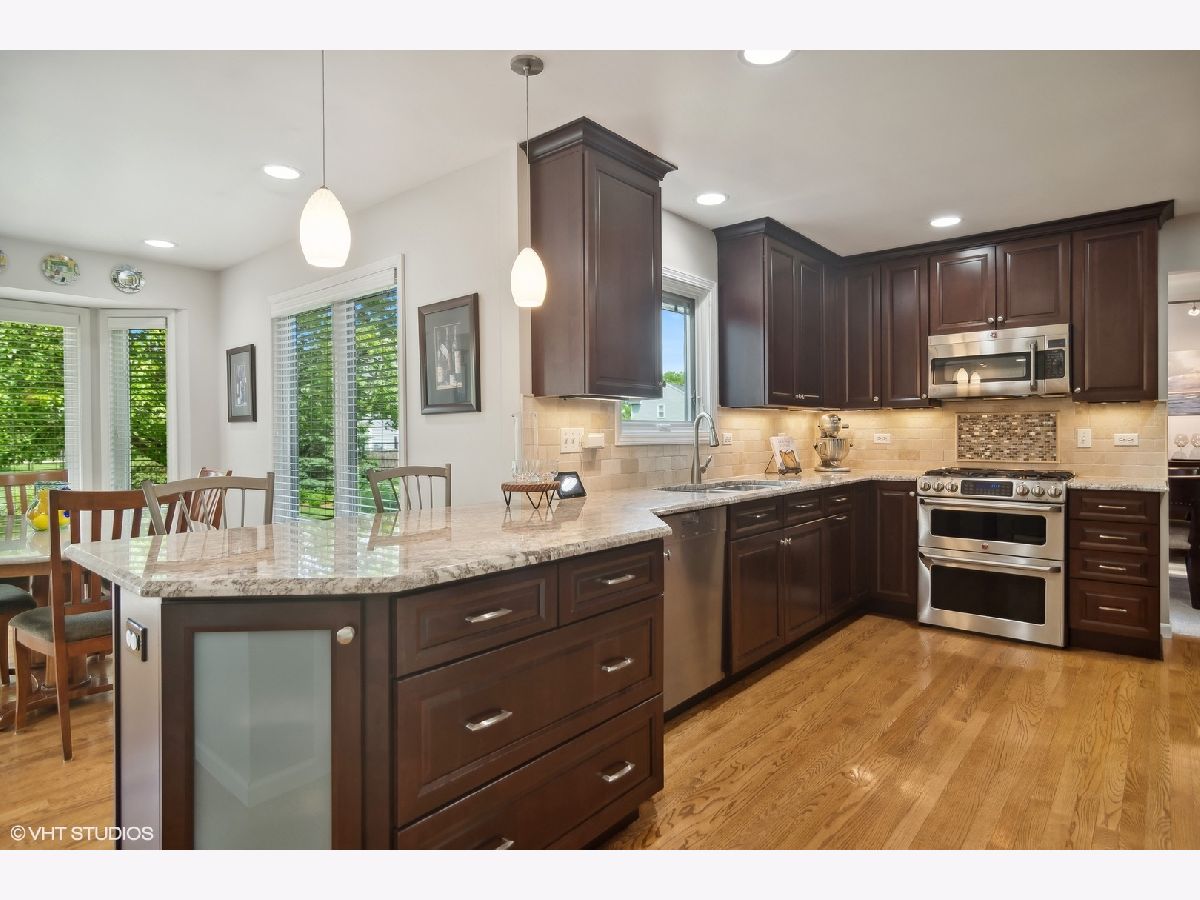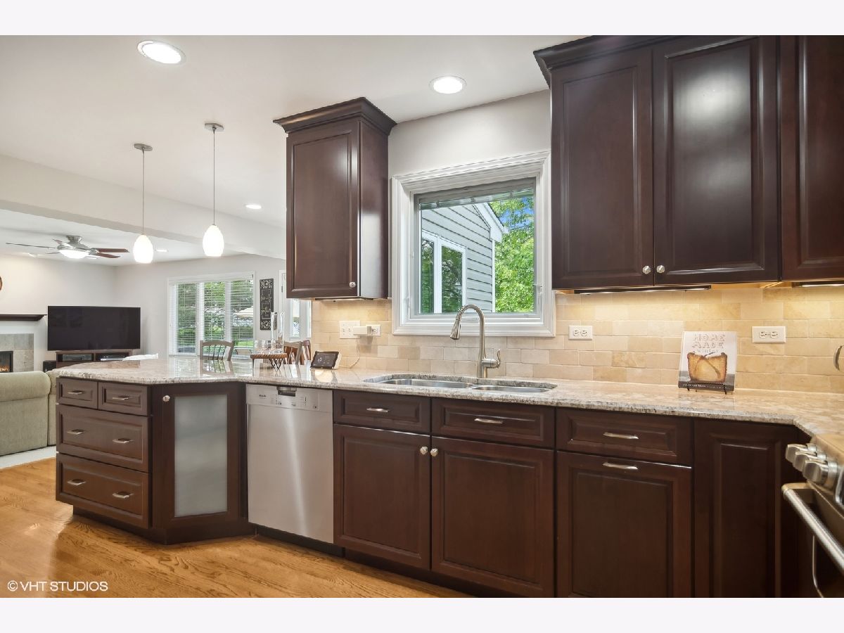 Welcome to your dream home in the heart of Lake Zurich! This stunning expanded residence boasts 4 spacious bedrooms and 3 1/2 baths, offering the perfect blend of comfort and style. The stunning remodeled kitchen is the heart of the home featuring granite countertops, soft-close cabinets, a stone backsplash, a double oven, breakfast bar, separate eating area and ample storage space. The kitchen flows seamlessly into the inviting family room, complete with a granite surround gas start wood burning fireplace and a cozy nook perfect for an office.The first floor also boasts a spacious dining room and living room. Additionally, off the garage, the mudroom is custom designed to keep your home organized and clutter-free. Upstairs, the luxurious primary bedroom features an oversized walk-in closet and a luxury bath, providing a perfect retreat. Three more generously sized bedrooms (one an ensuite) and two additional bathrooms ensure the perfect space for family or guests. The versatile basement offers a recreational area, a laundry space, a workshop space, and tons of storage, catering to all your needs. Step outside to your private oasis with a brick paver patio, a gas fire pit, and a beautifully landscaped yard adorned with lovely bushes, perennials, and landscape lighting. The beautiful home is located on a quiet cul-de-sac, and it is walking distance to both Isaac Fox Elementary School and LZ Middle School South, as well as several neighborhood parks.
